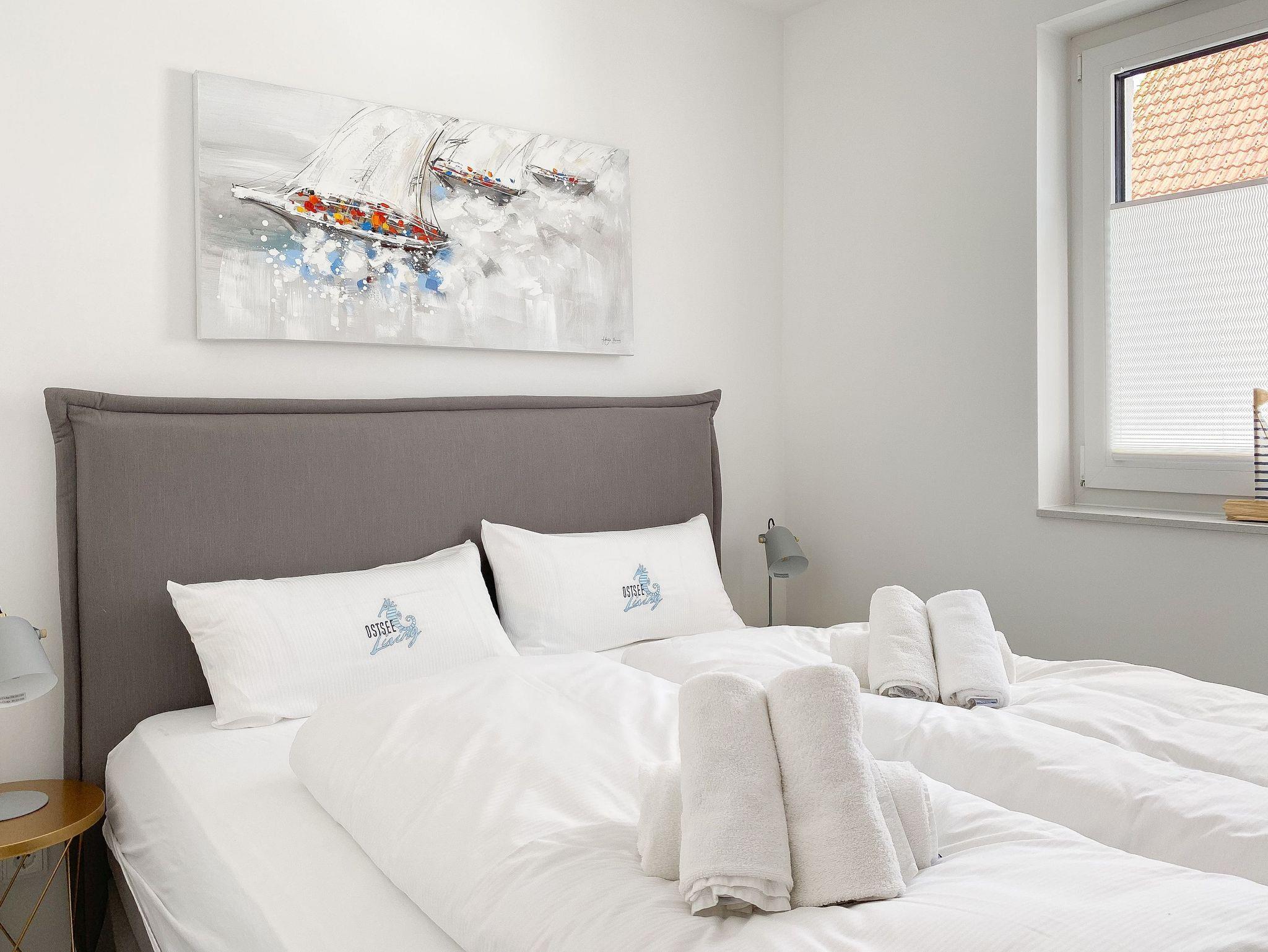 Die Ferienwohnung Wohnen am Strand 7 befindet sich im zweiten Obergeschoss und bietet mit 2 Schlafzimmern, ausgestattet mit Boxspringbetten (180x200 und 160x200)[nbsp][nbsp]und TV sowie 2 Duschbädern, [nbsp]jeglichen Komfort für 4 Personen, um einen entspannten Urlaub zu verleben. Der hochwertig eingerichtete Wohn- Essbereich bietet einen herrlichen Ausblick bis auf die Ostsee. Entspannen Sie auf Ihrem Balkon mit Teilmeerblick, Brandungsrauschen und frische Ostseeluft inklusive. Es stehen insgesamt 3 TV, Radio und WLAN zur Verfügung. Die Wohnung ist mit Fußbodenheizung ausgestattet und alle Fenster sind mit elektrischen Außenjalousien versehen, die gleichermaßen für Verdunkelung oder Tageslicht mit Privatsphäre sorgen. Zur Wohnung gehört ein fester Tiefgaragenstellplatz (Einfahrtshöhe 1,90 m). Das Haus verfügt über einen Fahrstuhl und einen Fahrradkeller. Waschmaschine und Trockner stehen kostenlos zur gemeinschaftlichen Nutzung[nbsp] zur Verfügung.