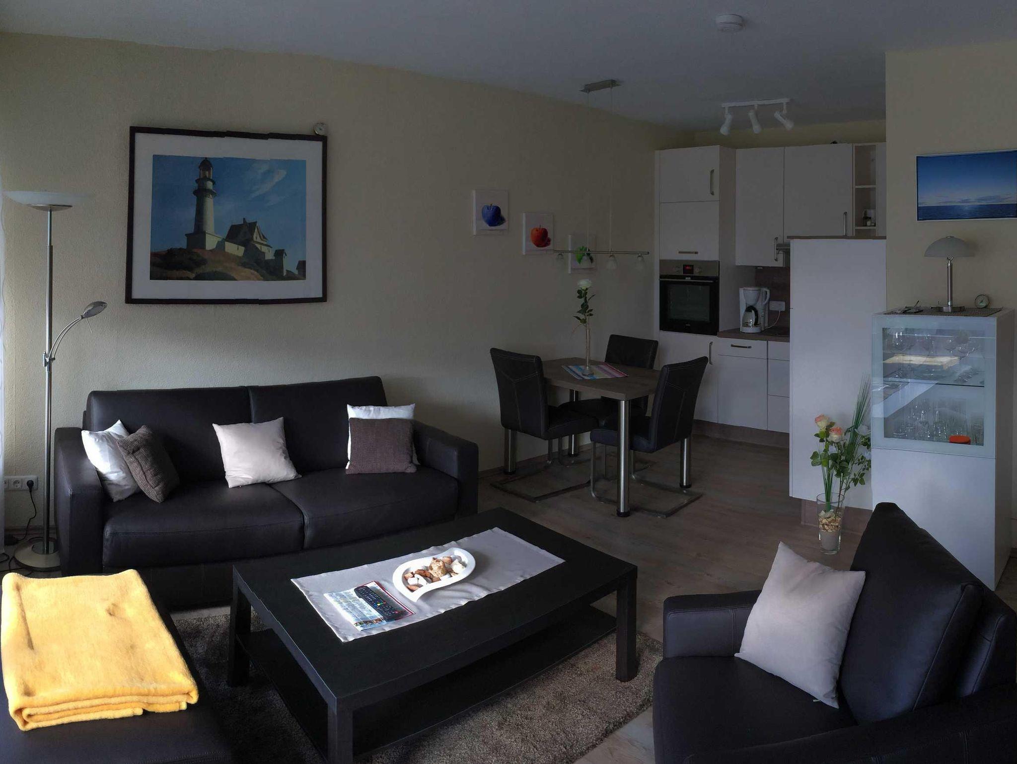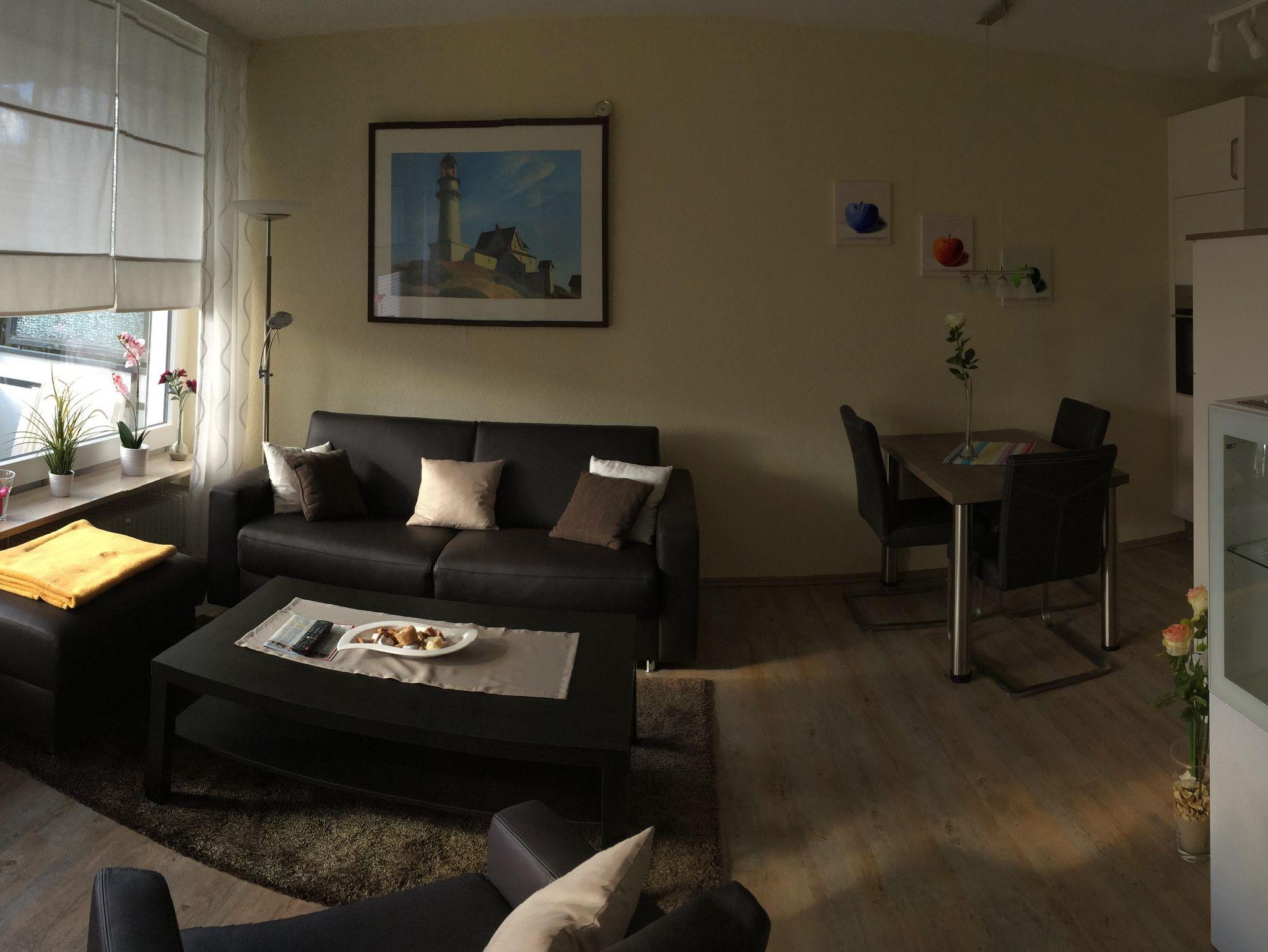 Die Wohnung ist ca. 45 qm groß und liegt im Hochparterre einer kleinen Appartementanlage. Mit einem separaten Schlafzimmer und einer bequemen Schlafcouch im Wohnzimmer kann die Wohnung von bis zu 4 Personen genutzt werden. Der gemütliche Wohnraum bietet Ihnen neben einem Flachbild-TV eine Stereoanlage mit CD-Spieler, USB-Anschluss und Docking-Station für Ihr iphone/iPad (ab iphone 5/ ipad 4) sowie einen Blu-ray-Player. Im Schlafzimmer ist ein weiteres Flachbild-TV installiert.