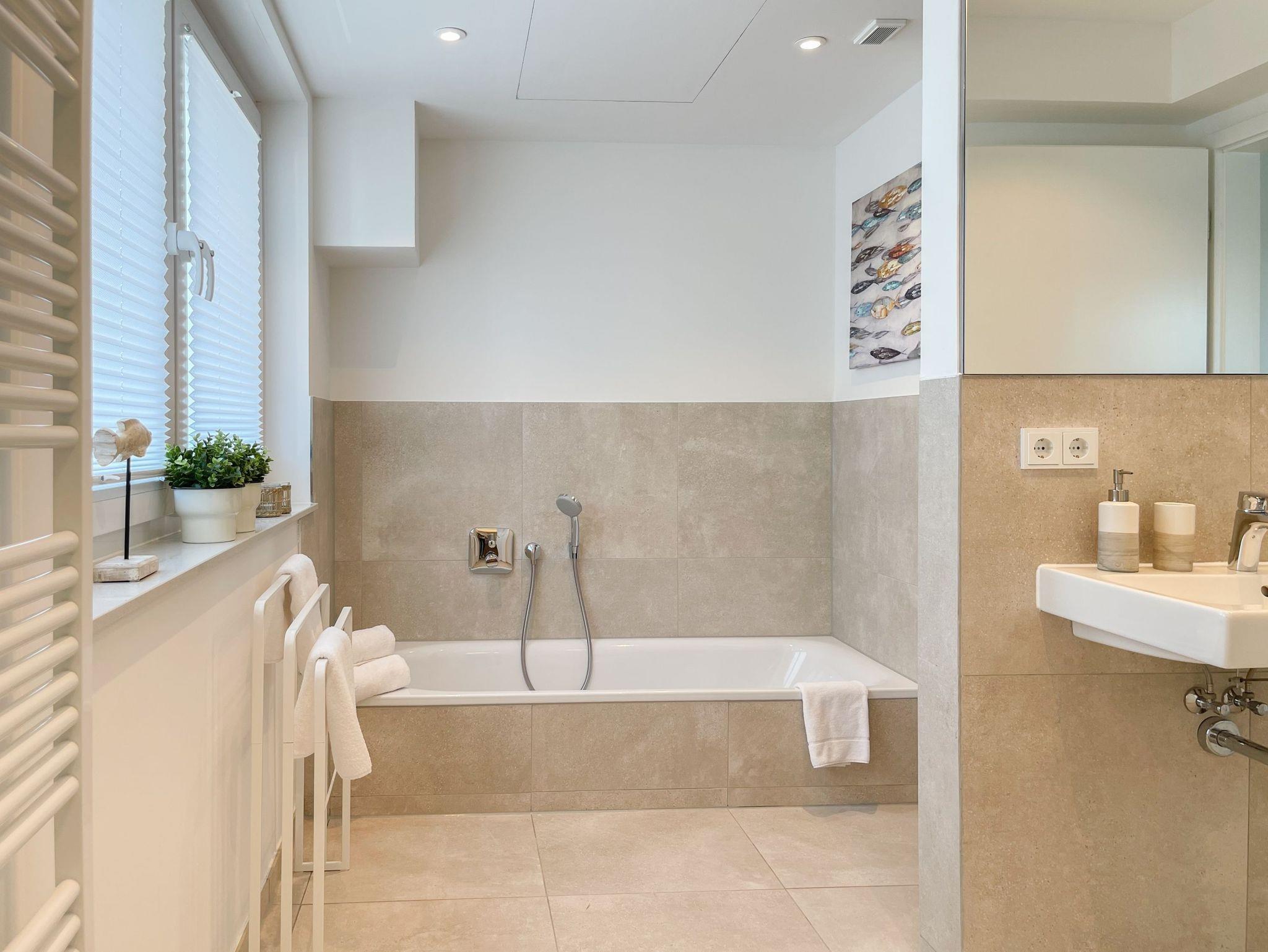 Elf exklusive Wohnungen mit Balkonen und Terrassen zur Meerseite bieten traumhafte Ausblicke bis auf die Ostsee und jeglichen Komfort zur Gewährleistung eines hohen Wohnstandards in schönem Ambiente. Alle Wohnungen verfügen über moderne Bäder mit Walk In Duschen, Fußbodenheizung und elektrische Außenjalousien mit einstellbaren Lamellen, die gleichermaßen für Tageslicht und Privatsphäre sorgen.