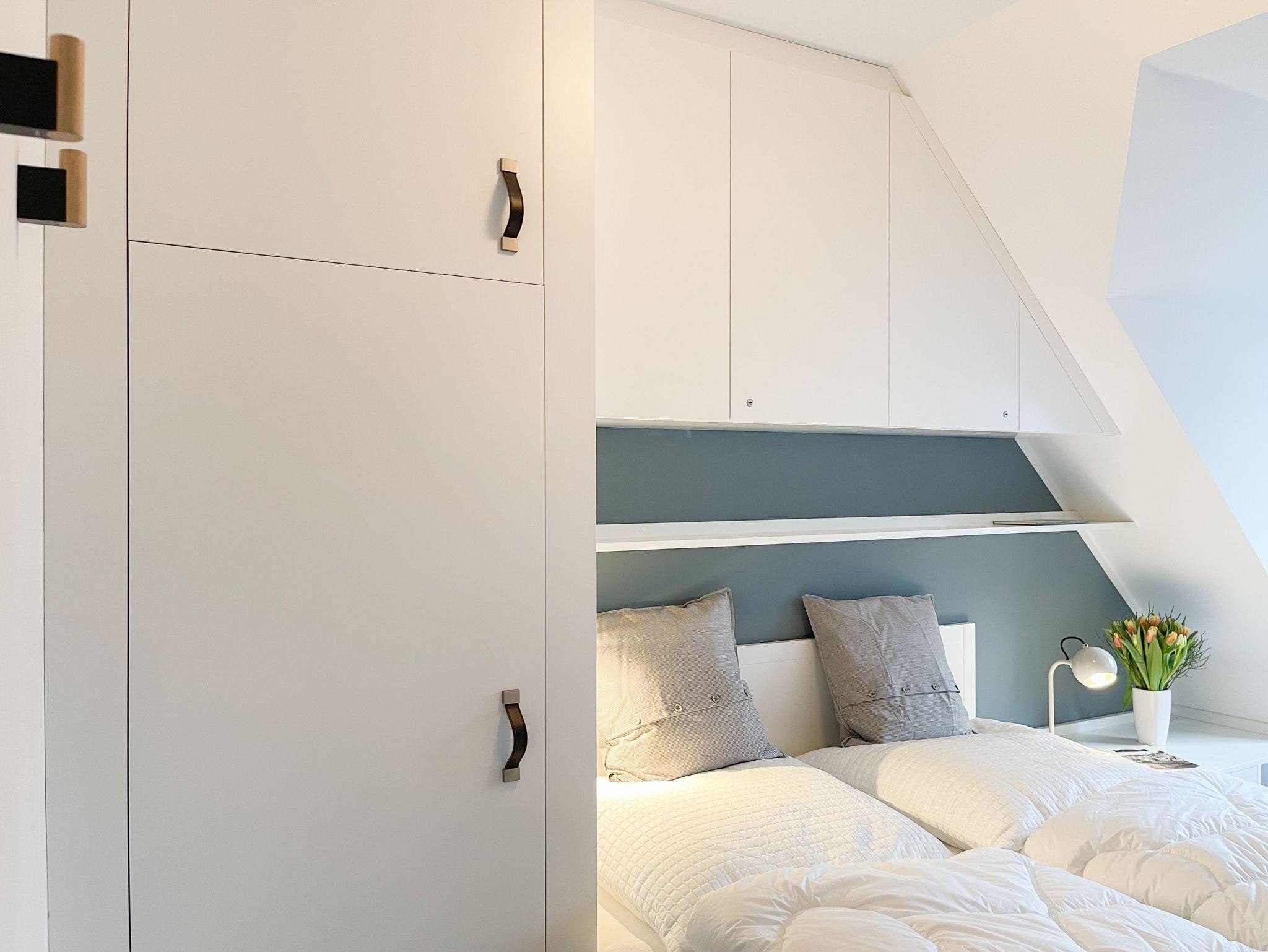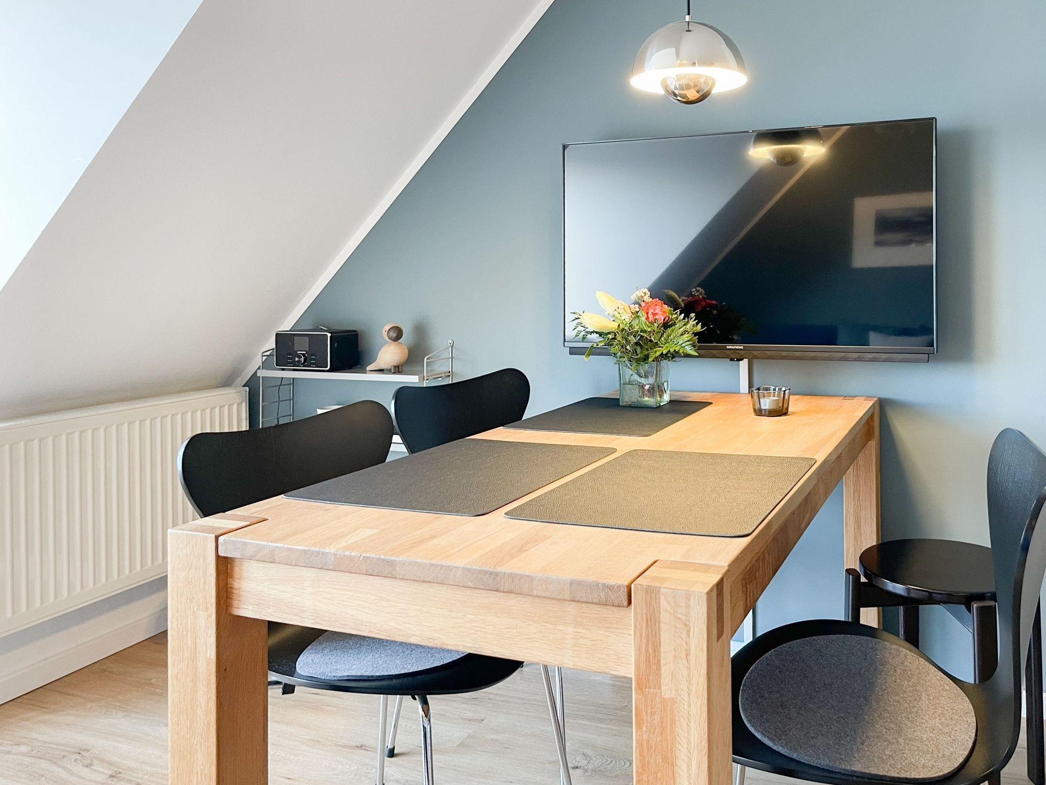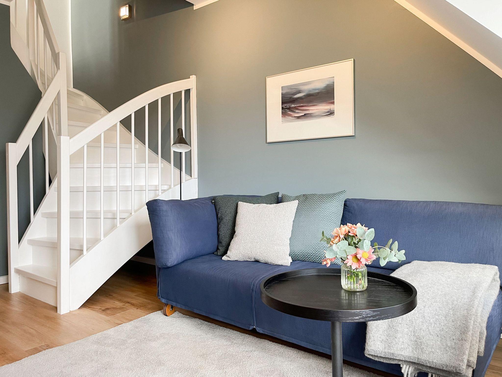 Die lichtdurchflutete Maisonette liegt im 2. Obergeschoss und erstreckt sich über zwei Ebenen zur sonnigen Süd-Ost-Seite. Die stilvolle, skandinavische Einrichtung mit liebevollen Details schafft ein behagliches Ambiente für zwei Personen. Der hochwertig eingerichtete Wohn- und Essbereich bietet neben einem TV und einem Bluetoothradio selbstverständlich auch kostenloses WLAN. Die vom Tischler angefertigte, voll ausgestattete Küche lässt keine Wünsche offen. Das separate Schlafzimmer, ebenfalls passgenau vom Tischler, verfügt über ein Doppelbett (160cm x 200cm, getrennte Matratzen 80x200 mit Toppern) und einen Kleiderschrank. Verdunkelungsvorhänge sorgen für einen erholsamen Schlaf. Das neue, hochwertige Bad ist mit einer Dusche, WC, Waschtisch und Fenster ausgestattet.Die obere Wohnebene, erreichbar über eine Treppe vom Wohnbereich ausgehend, bietet einen weiteren gemütlichen Rückzugsort. Hier finden Sie eine Kommode/Schreibtisch, eine gemütliche Leseecke und ein Bett, das sowohl als „Daybed“ als auch für die Nacht genutzt werden kann.