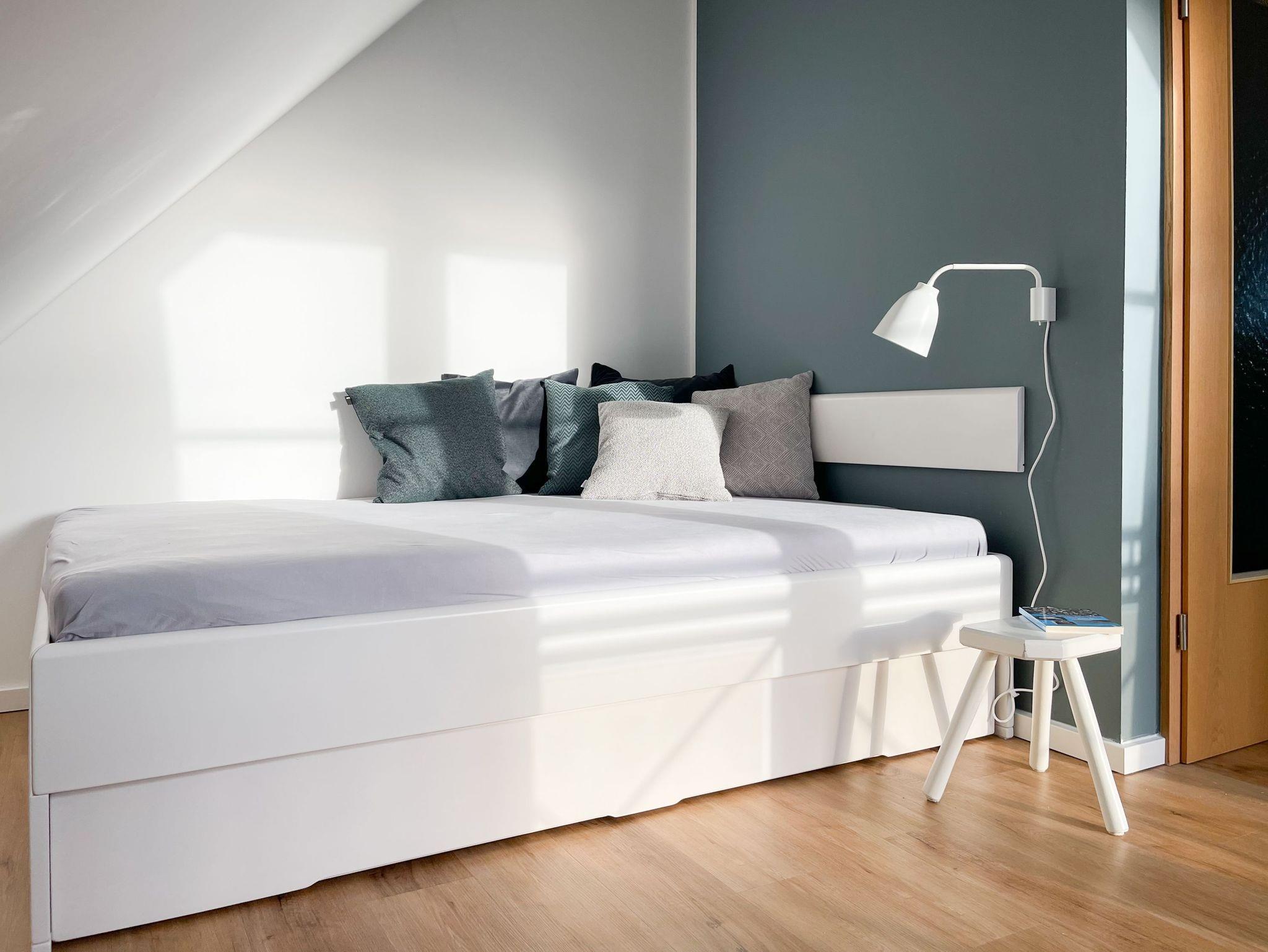 Die lichtdurchflutete Maisonette liegt im 2. Obergeschoss und erstreckt sich über zwei Ebenen zur sonnigen Süd-Ost-Seite. Die stilvolle, skandinavische Einrichtung mit liebevollen Details schafft ein behagliches Ambiente für zwei Personen. Der hochwertig eingerichtete Wohn- und Essbereich bietet neben einem TV und einem Bluetoothradio selbstverständlich auch kostenloses WLAN. Die vom Tischler angefertigte, voll ausgestattete Küche lässt keine Wünsche offen. Das separate Schlafzimmer, ebenfalls passgenau vom Tischler, verfügt über ein Doppelbett (160cm x 200cm, getrennte Matratzen 80x200 mit Toppern) und einen Kleiderschrank. Verdunkelungsvorhänge sorgen für einen erholsamen Schlaf. Das neue, hochwertige Bad ist mit einer Dusche, WC, Waschtisch und Fenster ausgestattet.Die obere Wohnebene, erreichbar über eine Treppe vom Wohnbereich ausgehend, bietet einen weiteren gemütlichen Rückzugsort. Hier finden Sie eine Kommode/Schreibtisch, eine gemütliche Leseecke und ein Bett, das sowohl als Daybed als auch für die Nacht genutzt werden kann.