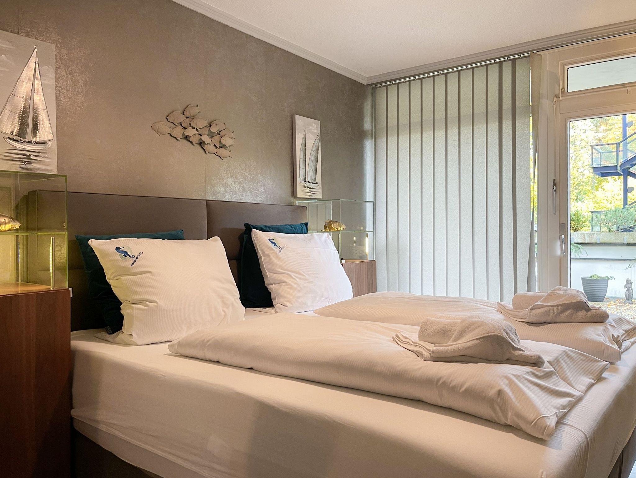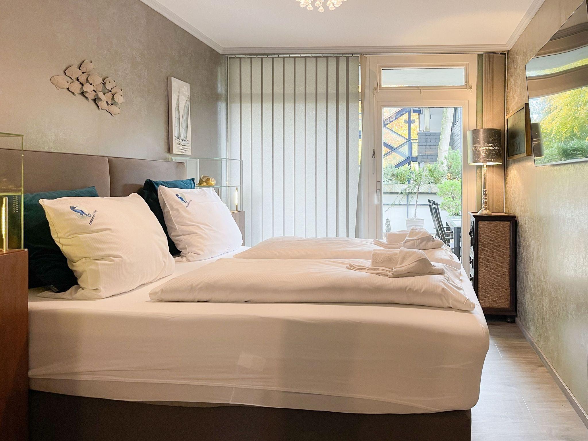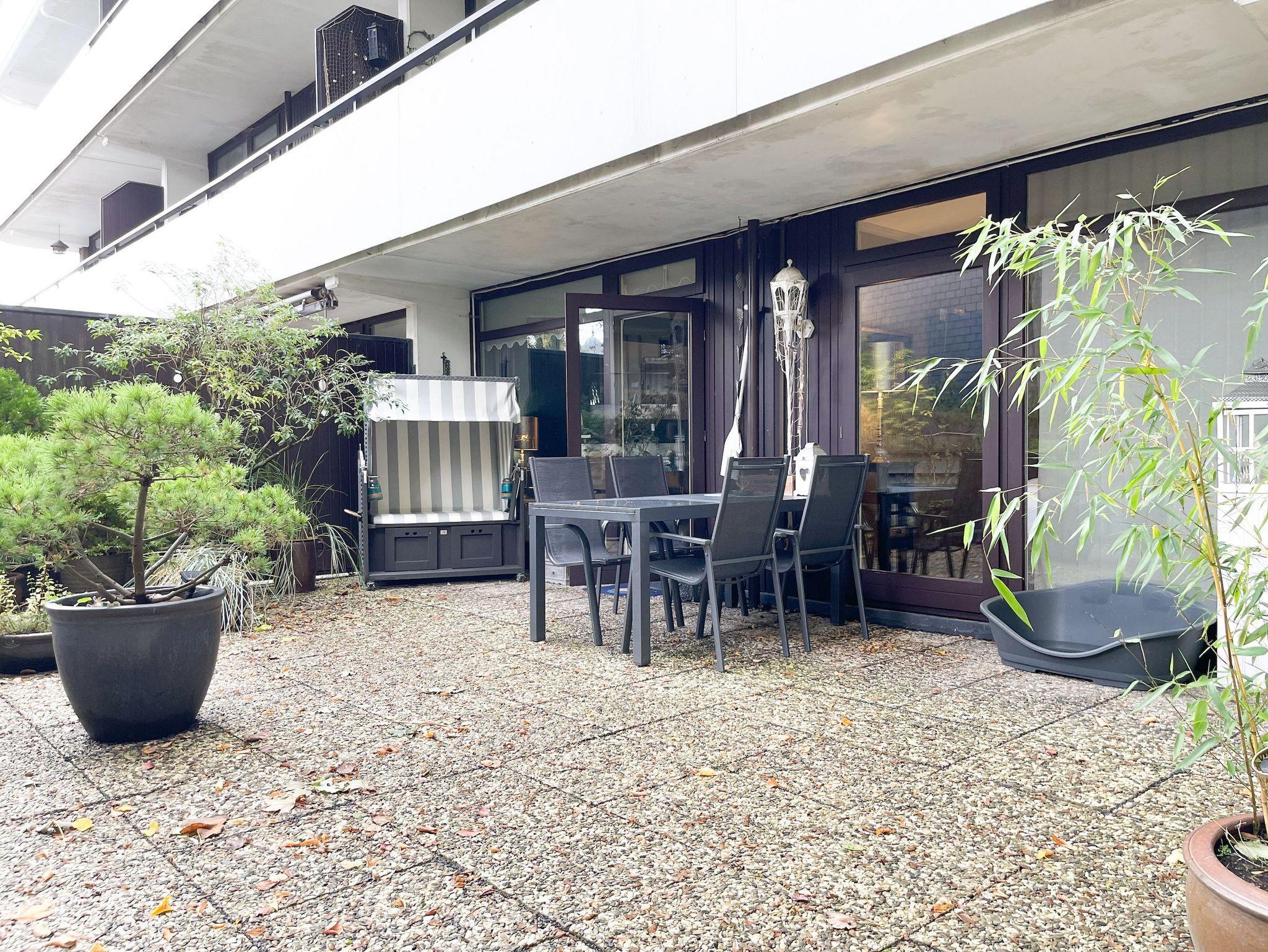 Es erwartet Sie eine gemütlich eingerichtete Ferienwohnung mit ausreichen Raum für 2 Personen, um einen entspannten Urlaub in Strandnähe zu verleben. Highlight ist die riesige, liebevoll bepflanzte Terrasse von 70 qm, die sich über die gesamte Breite der Wohnung erstreckt und mit Gartenmöbeln und einem Strandkorb ausgestattet ist. Ein herrlicher Rückzugsort zu jeder Tageszeit. Der Wohnbereich ist mit einem XL Sofa plus Recamiere und TV ausgestattet, der anschließende Essbereich bietet ausreichend Platz für 4 Personen für gemeinsame Mahlzeiten und gemütliches Beisammensein. Die integrierte Küche ist gut ausgestattet und durch einen Tresen vom Wohnbereich getrennt. Das Schlafzimmer ist mit einem Doppelbett (180x200), einem Kleiderschrank mit ausreichend Stauraum. Die Fenster sind mit vertikal Lamellen versehen, die etwas Licht nehmen, jedoch nicht vollständig verdunkeln. Das Bad verfügt über einen Waschtisch, Föhn, WC und eine Badewanne kombiniert mit einer Dusche.