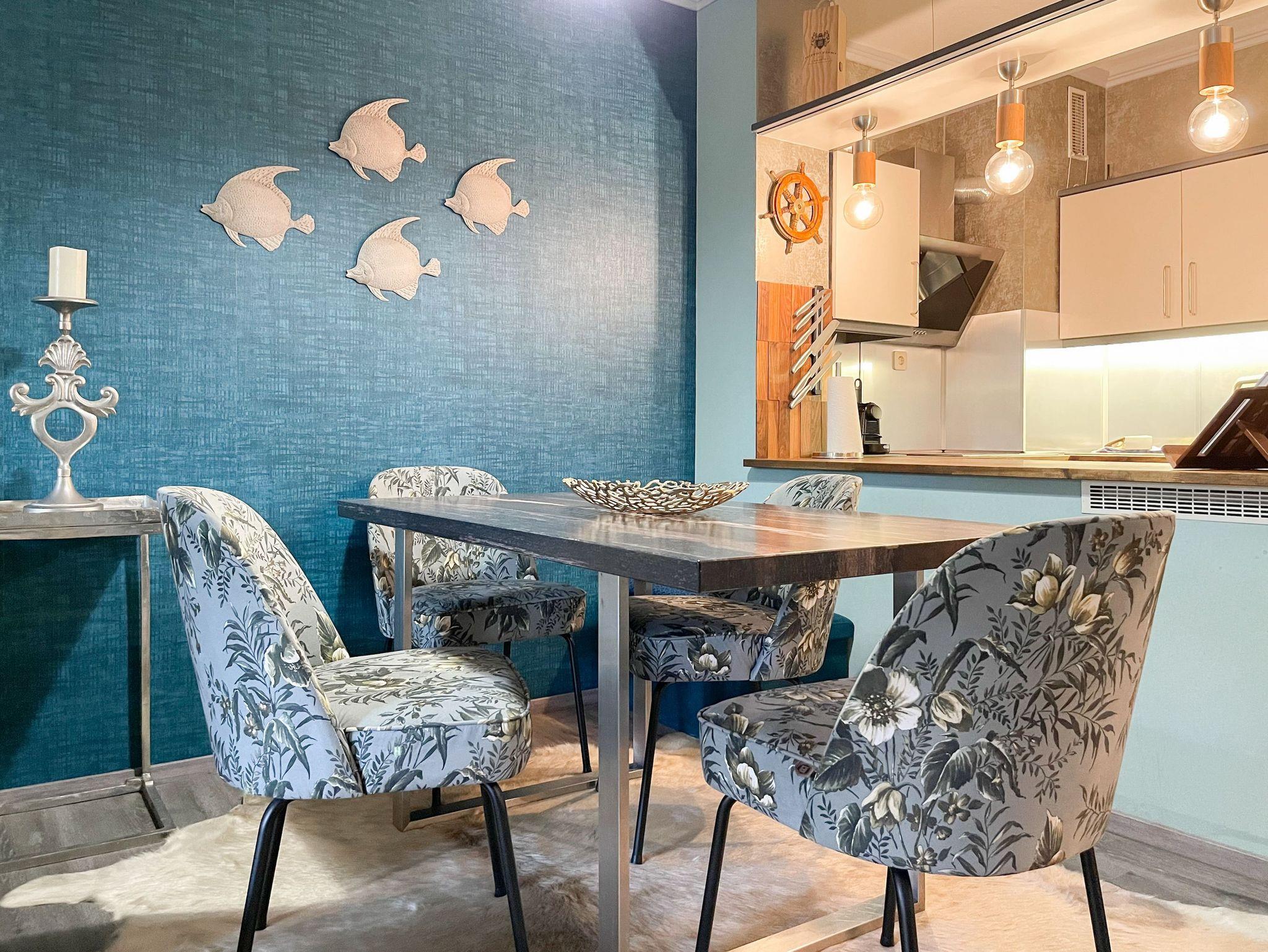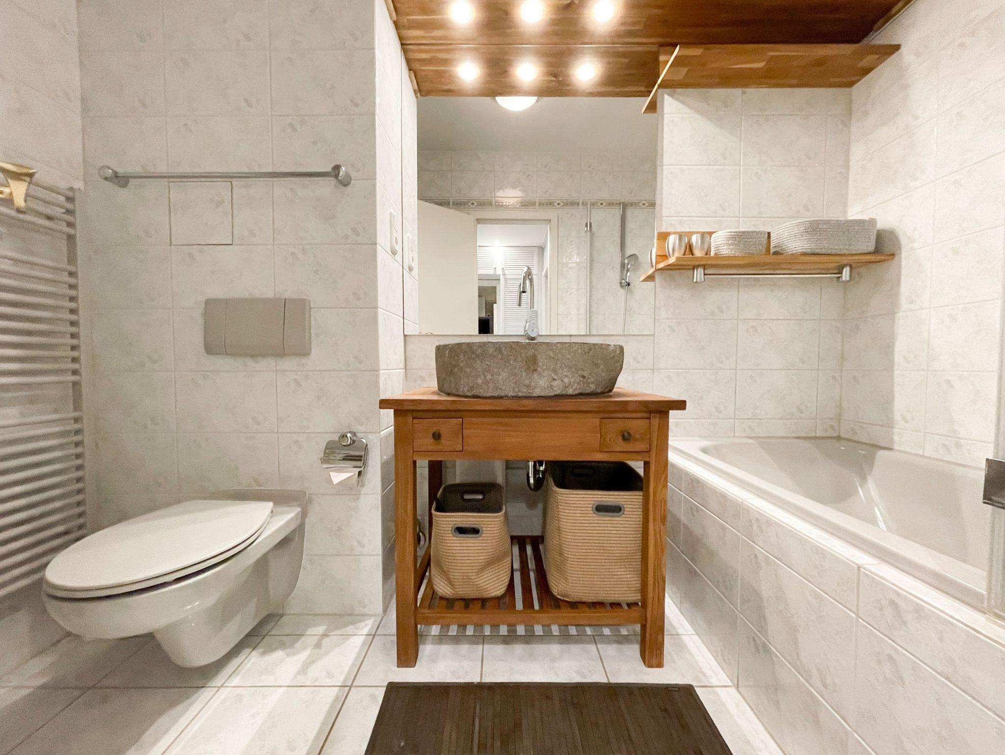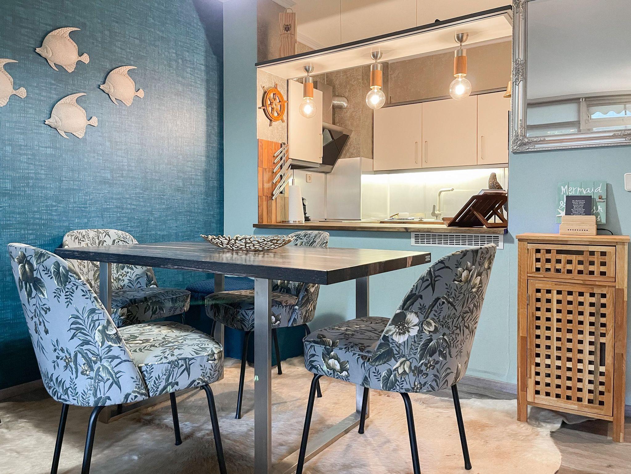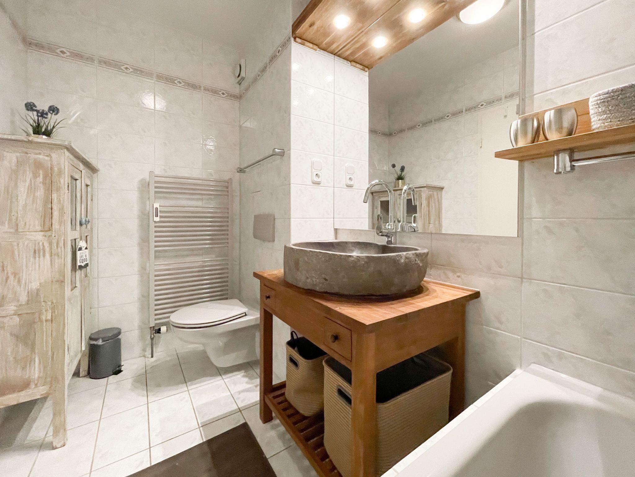 Es erwartet Sie eine gemütlich eingerichtete Ferienwohnung mit ausreichen Raum für 2 Personen, um einen entspannten Urlaub in Strandnähe zu verleben. Highlight ist die riesige, liebevoll bepflanzte Terrasse von 70 qm, die sich über die gesamte Breite der Wohnung erstreckt und mit Gartenmöbeln und einem Strandkorb ausgestattet ist. Ein herrlicher Rückzugsort zu jeder Tageszeit. Der Wohnbereich ist mit einem XL Sofa plus Recamiere und TV ausgestattet, der anschließende Essbereich bietet ausreichend Platz für 4 Personen für gemeinsame Mahlzeiten und gemütliches Beisammensein. Die integrierte Küche ist gut ausgestattet und durch einen Tresen vom Wohnbereich getrennt. Das Schlafzimmer ist mit einem Doppelbett (180x200), einem Kleiderschrank mit ausreichend Stauraum. Die Fenster sind mit vertikal Lamellen versehen, die etwas Licht nehmen, jedoch nicht vollständig verdunkeln. Das Bad verfügt über einen Waschtisch, Föhn, WC und eine Badewanne kombiniert mit einer Dusche.