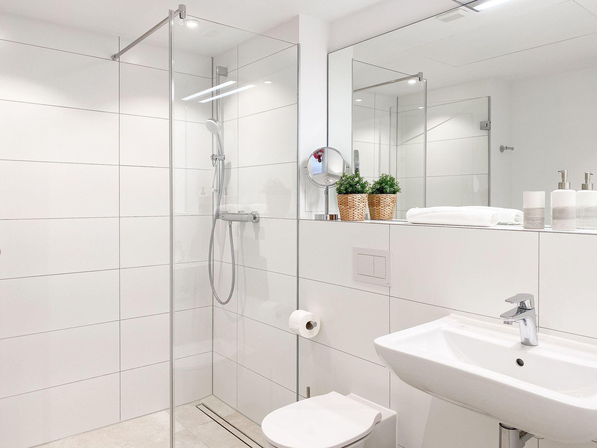 Zehn exklusive Wohnungen mit Balkonen und Terrassen zur Meerseite bieten traumhafte Ausblicke bis auf die Ostsee und jeglichen Komfort zur Gewährleistung eines hohen Wohnstandards in schönem Ambiente. Alle Wohnungen verfügen über moderne Bäder mit Walk In Duschen, Fußbodenheizung und elektrische Außenjalousien mit einstellbaren Lamellen, die gleichermaßen für Tageslicht und Privatsphäre sorgen.