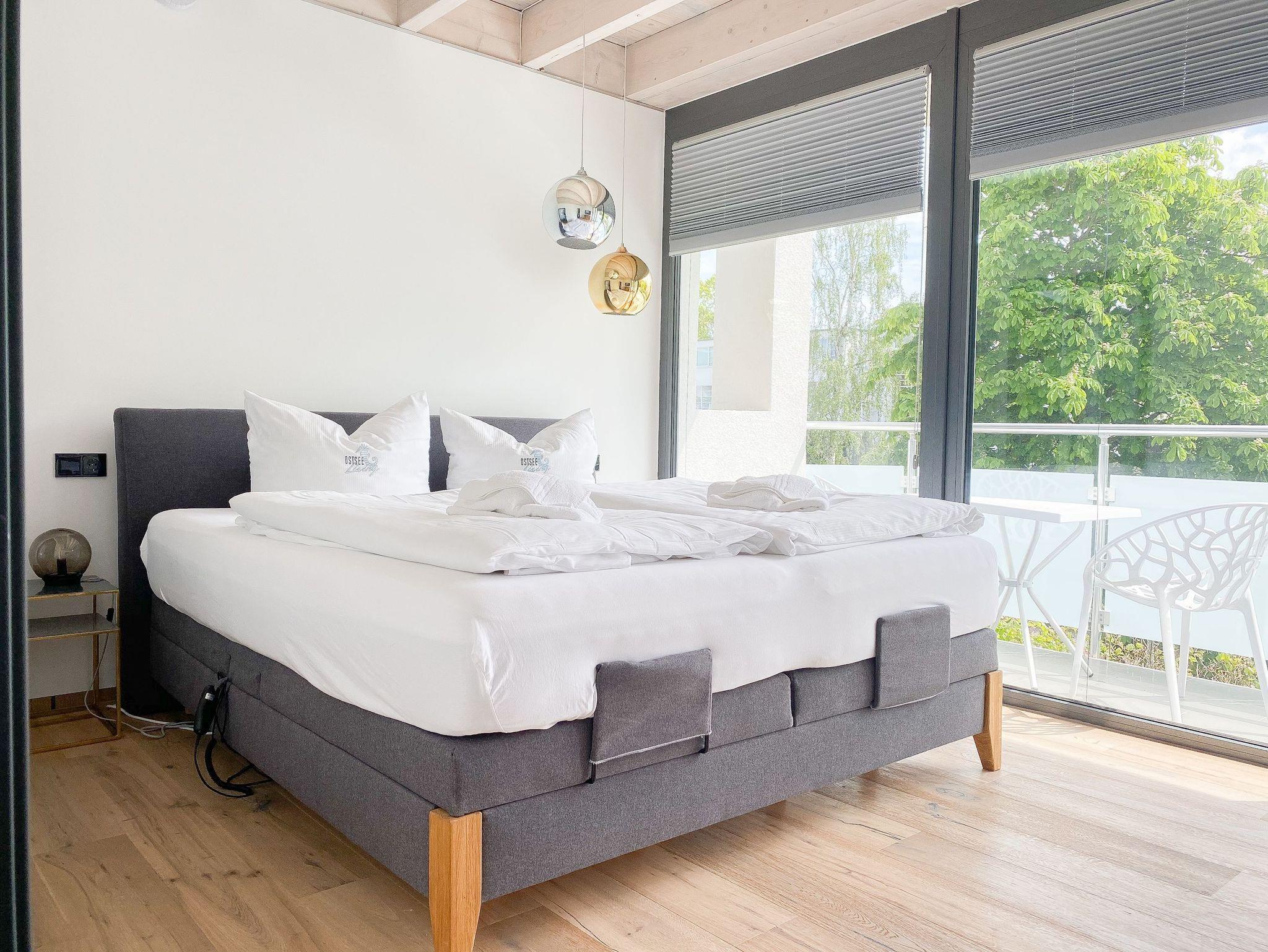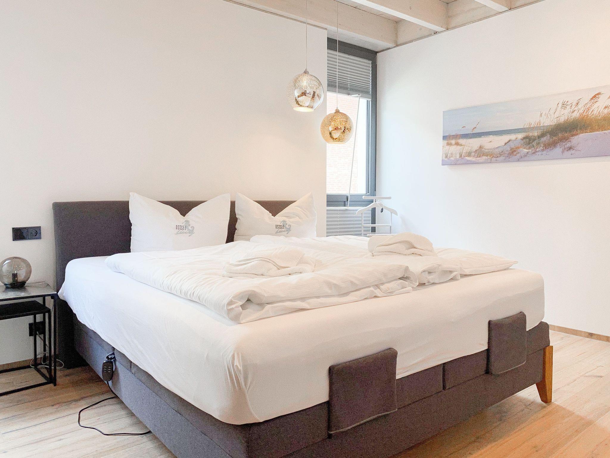 Die Ferienwohnung Meerchenwald 2 liegt im ersten Obergeschoss und verfügt über 3 separate Schlafzimmer mit elektromotorisch verstellbaren Boxspringbetten (180x200), Verdunkelungsplissees und TV, zwei moderne Duschbäder en Suite sowie ein zusätzliches Gäste WC im Eingangsbereich. Im Flur bietet ein großer Einbauschrank ausreichend Stauraum für Ihre Urlaubsgarderobe. Bitte beachten Sie, dass im kleinen Schlafzimmer das Bett nur über das Fußende zu erreichen ist. Der großzügige Wohnbereich mit riesigen Glasfronten zum Südbalkon verfügt über ein hochwertiges Loungesofa, TV, DVD-Player und Surround Anlage. Selbstverständlich steht Ihnen WLAN zur kostenlosen Nutzung zur Verfügung. Der anschließende Essbereich ist für 6 Personen eingerichtet und die perfekt ausgestattete, hochmoderne Wohnküche lässt garantiert keine Wünsche offen.
