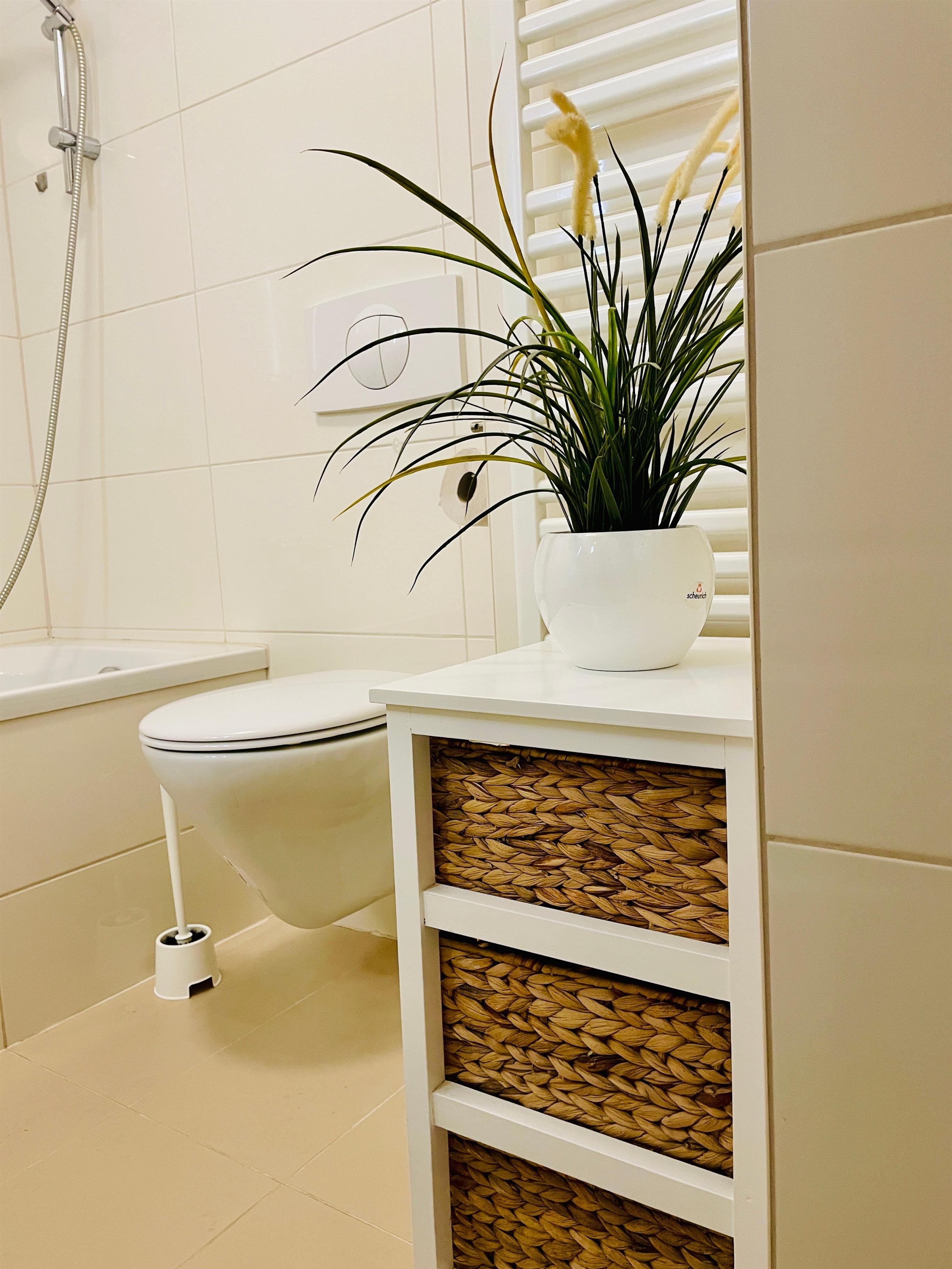 Genießen Sie Ihre Ferien in vollen Zügen, bei schönem Wetter auch gerne draußen auf ihrer privaten Terrasse. Das Badezimmer ist ausgestattet mit einer modernen Duschbadewanne und einem Haartrockner.