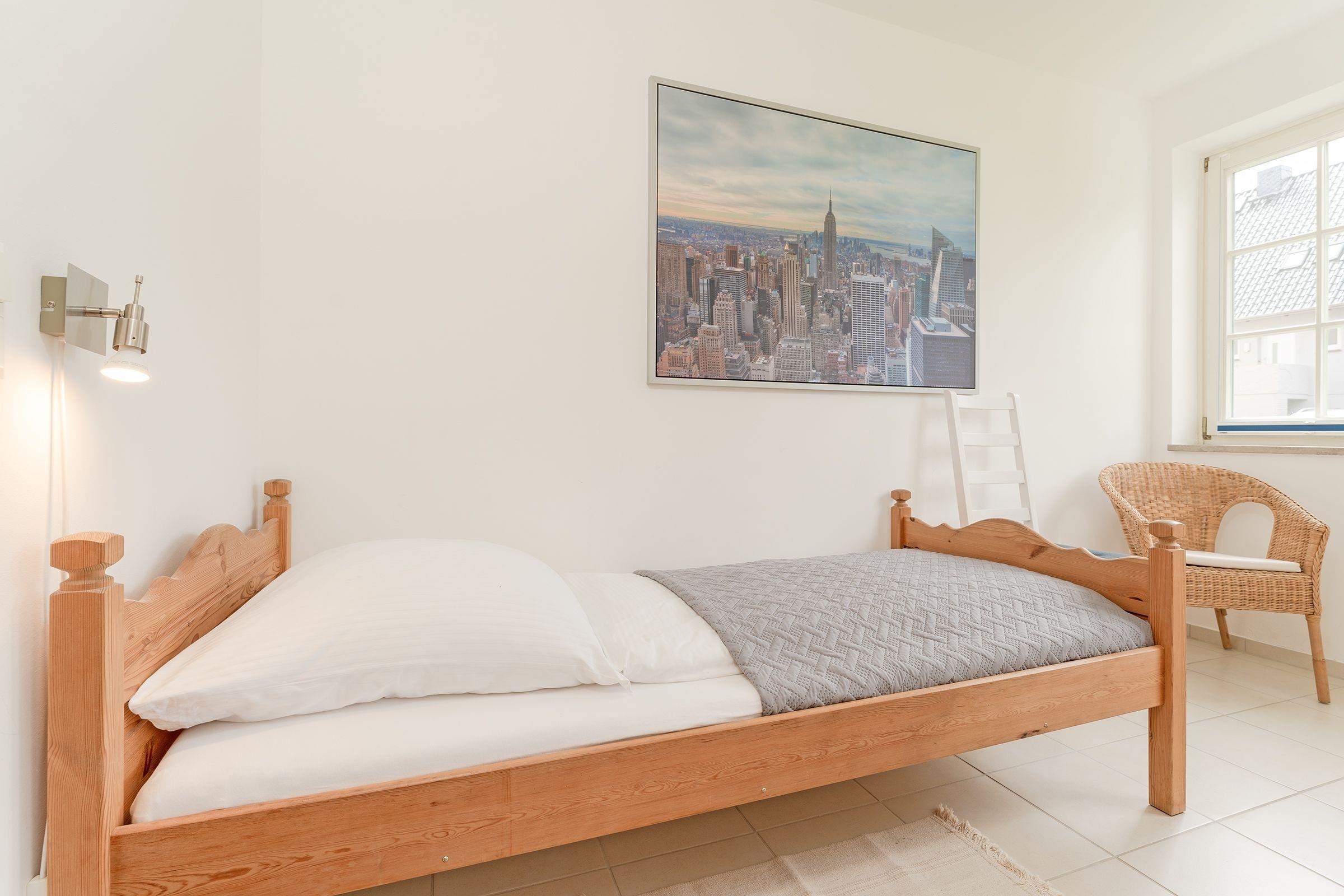 Im Herzen von Timmendorfer Strand liegt Ihr Urlaubsglück. Die kinderfreundliche Ferienwohnung besticht durch ihre gemütliche Einrichtung in warmen Farbtönen. Nehmen Sie im lichtdurchfluteten Wohnzimmer Platz und genießen Sie Ihre Auszeit auf dem kuscheligen Sofa oder den beiden Sesseln. Bei schönem Wetter lockt die möblierte Terrasse gleich nebenan. Die separate Küche mit Geschirrspüler ist gut ausgestattet und bringt sicher jeden Hobby-Koch zum Lächeln. Ihre leckeren Speisen können Sie im Wohnbereich genießen – die komfortable Ess-Ecke bietet sich aber auch für schöne Spiele-Abende an. Nach einem erlebnisreichen Tag an der Küste finden Sie in den beiden Schlafräumen eine wundervolle Nachtruhe: Ein Zimmer verfügt über ein Doppelbett (2x 90x200 cm). In dem anderen Zimmer stehen 2 Einzelbetten (je 90x200 cm). Beide Räume verfügen über genug Platz für ein zusätzliches Kinderreisebett. Das moderne Duschbad mit Fenster verspricht einen guten Start in den Tag.
