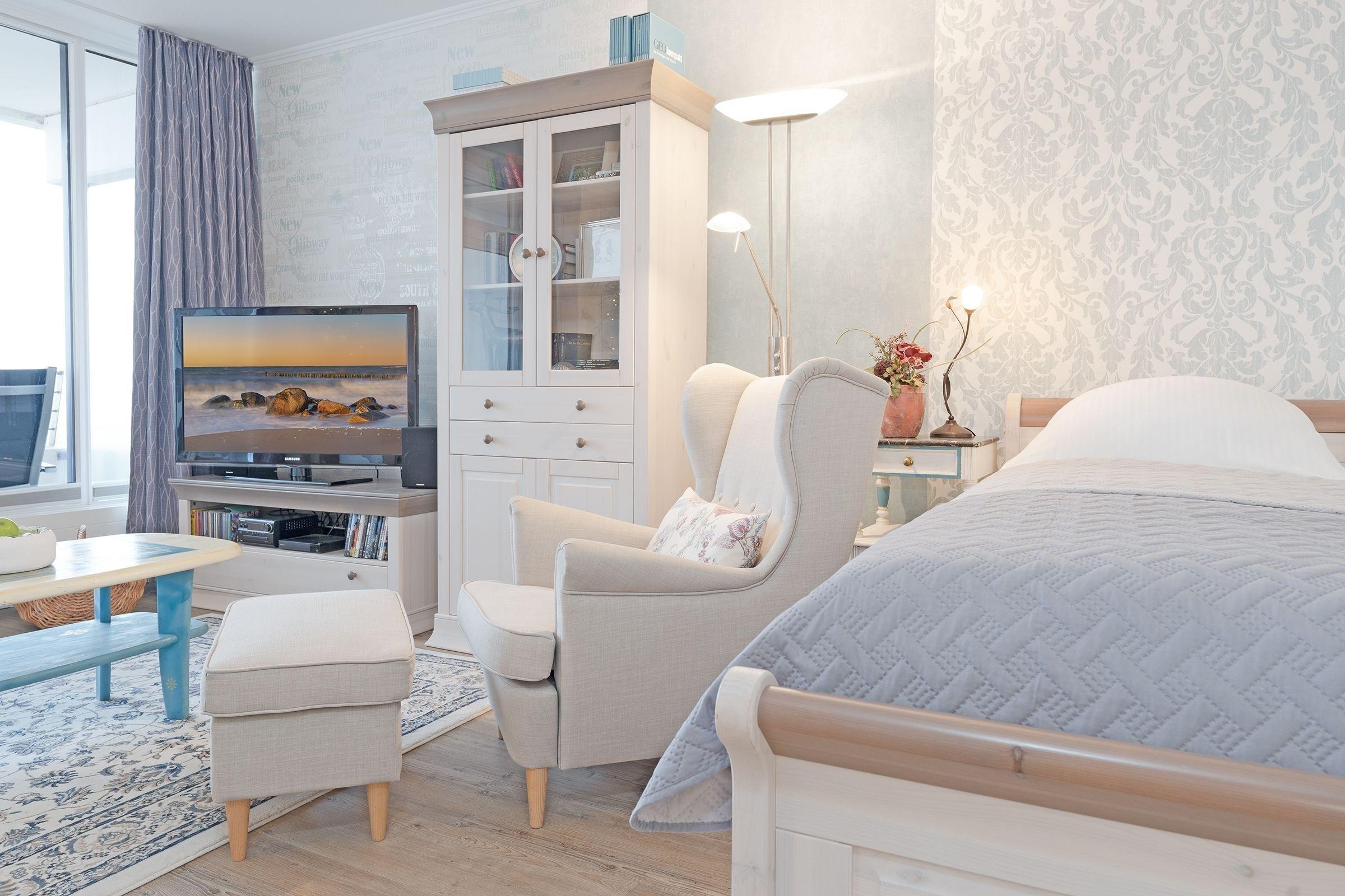 Das Ostsee Perlchen – passender kann ein Name für so eine feine, kleine Ferienwohnung am Meer kaum sein. Ihr Feriendomizil erreichen Sie bequem mit dem Aufzug. Nehmen Sie Platz auf einem der beiden kuscheligen Sessel und legen Sie die Füße hoch, Ihr Urlaub kann beginnen. Für die richtige Unterhaltung sorgen ein Smart-TV, eine HiFi-Anlage sowie ein DVD- und CD-Spieler. Wie wäre es mit einem Willkommens-Drink auf dem möblierten Balkon? Von hier oben haben Sie einen grandiosen Weitblick über Wälder und Felder. Die moderne Küchenzeile mit heller Front und Spülmaschine ermöglicht eine angenehme Selbstversorgung und für die Nacht steht Ihnen ein Doppelbett (2x 80x200 cm) zum Träumen zur Verfügung. Das innenliegende Bad verfügt über eine Wanne mit Duschfunktion.