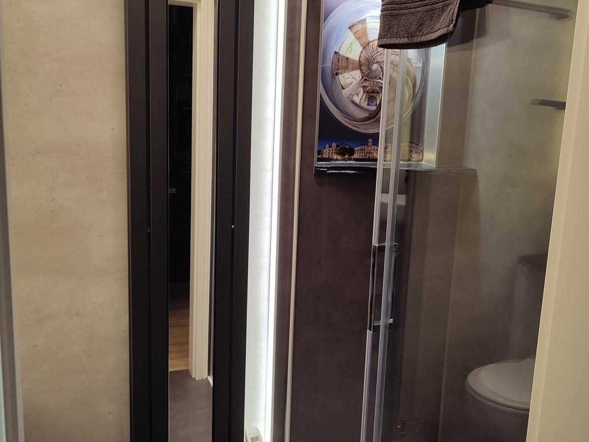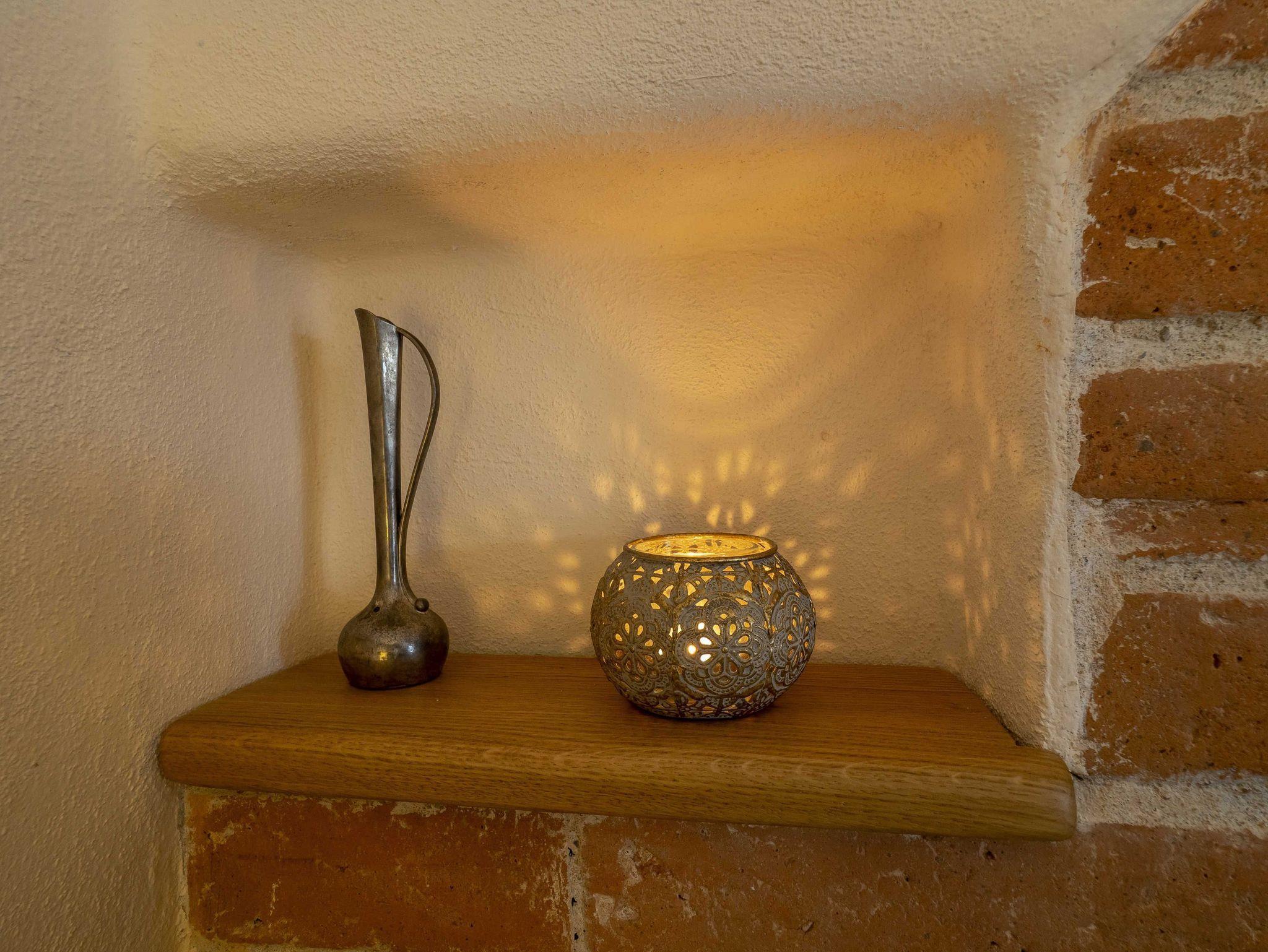 Das, mit liebevollen Details gestaltete Bad, beinhaltet eine großzügige, ebenerdige Dusche mit Thermostat u. Regendusche und einem „besonderen“ Blick auf den Wendelstein des Schlosses. Die Waschtischplatte mit einem Designwaschbecken, sowie die Ablagen sind handgefertigt aus mehrere tausend Jahre altem Mooreichenholz aus der Elbe. Ein Haarfön, Handseife, Handdesinfektion und Handtücher stehen natürlich ebenfalls zur Verfügung.
