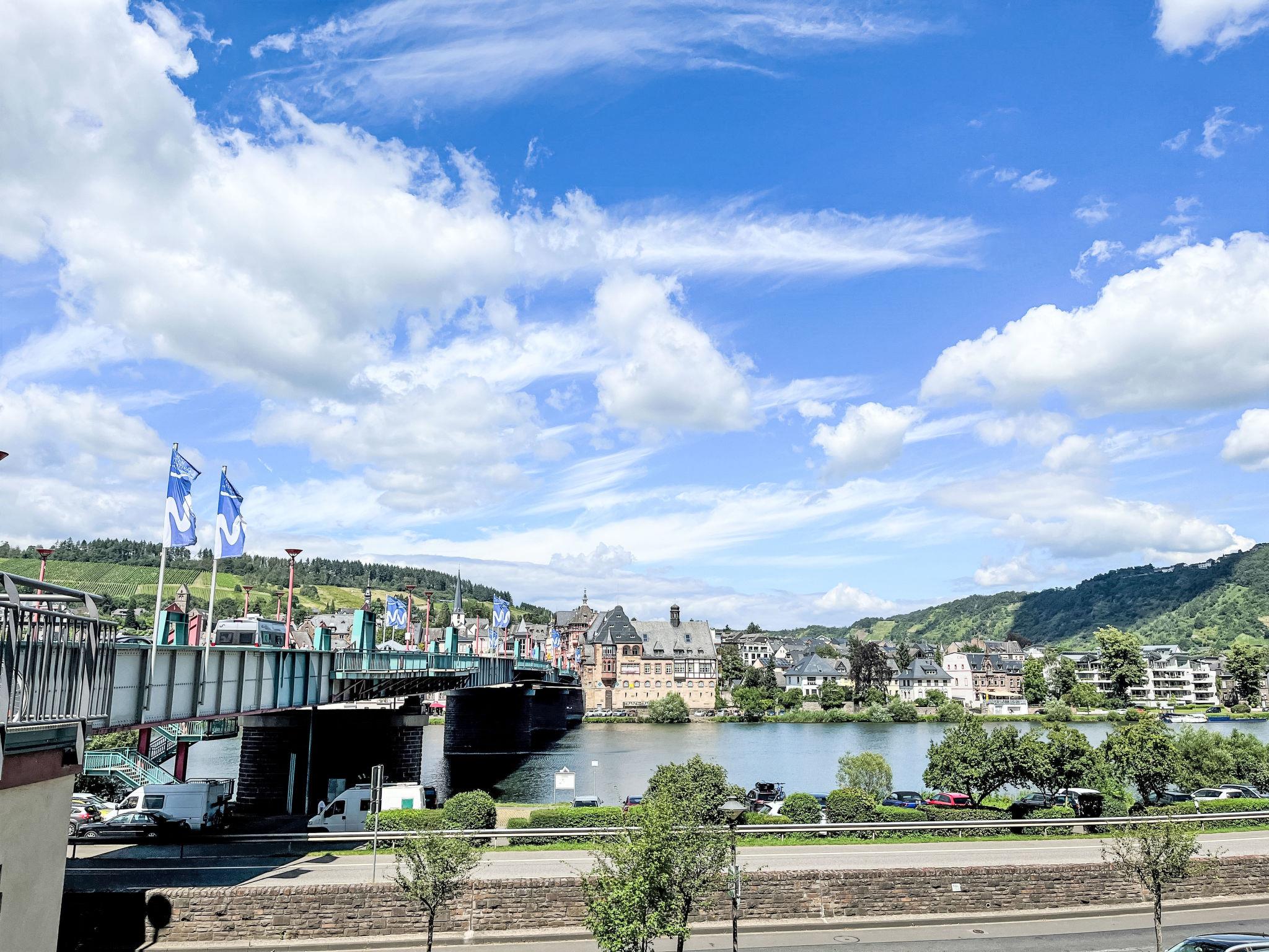 This flat is in a quiet location in the centre of the Traben district, just a few metres from the Moselle promenade. Luxuriously furnished, you can expect a very stylish apartment with plenty of space, comfort and tranquillity. You can park conveniently in an outdoor parking space in the underground car park and the lift takes you comfortably to the floor of the flat. Shopping facilities are only a few metres away from the property. The apartment has a large living/dining area with an open-plan, fully equipped kitchen, a bedroom with a flat screen. Bathroom with walk-in shower, guest WC, utility room and an almost 30 square metre sun terrace with a view of Grevenburg Castle. You will want for nothing here. Shops and restaurants are just a few minutes' walk away. You will be welcomed directly by the owner.