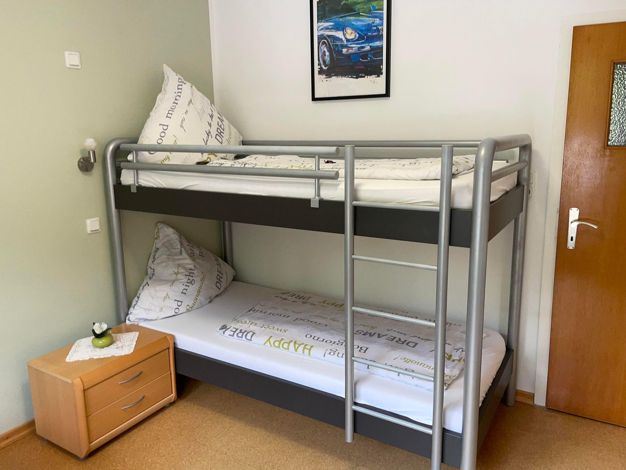 2 getrennte Zimmer mit einem Bad ( 1 x mit Doppelbett, 1 x mit Etagenbett)
