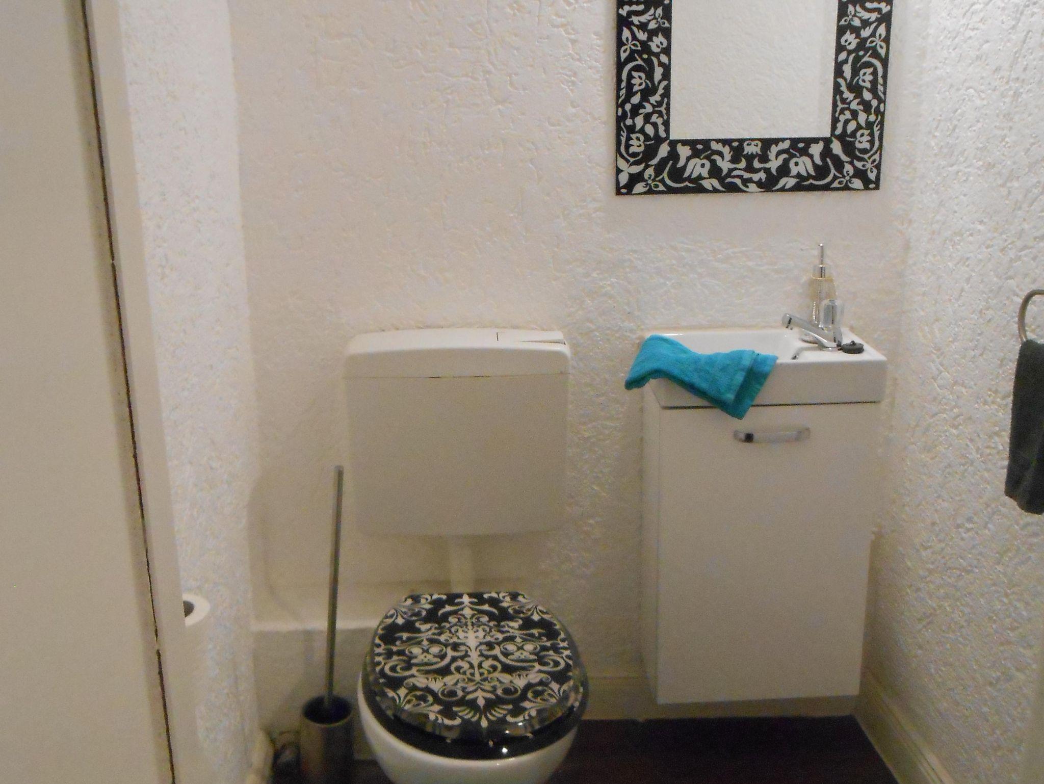 Das Badezimmer befindet sich im Erdgeschoss. Es ist mit Dusche, WC, Waschbecken, Spiegel, sowie Handtüchern ausgestattet.