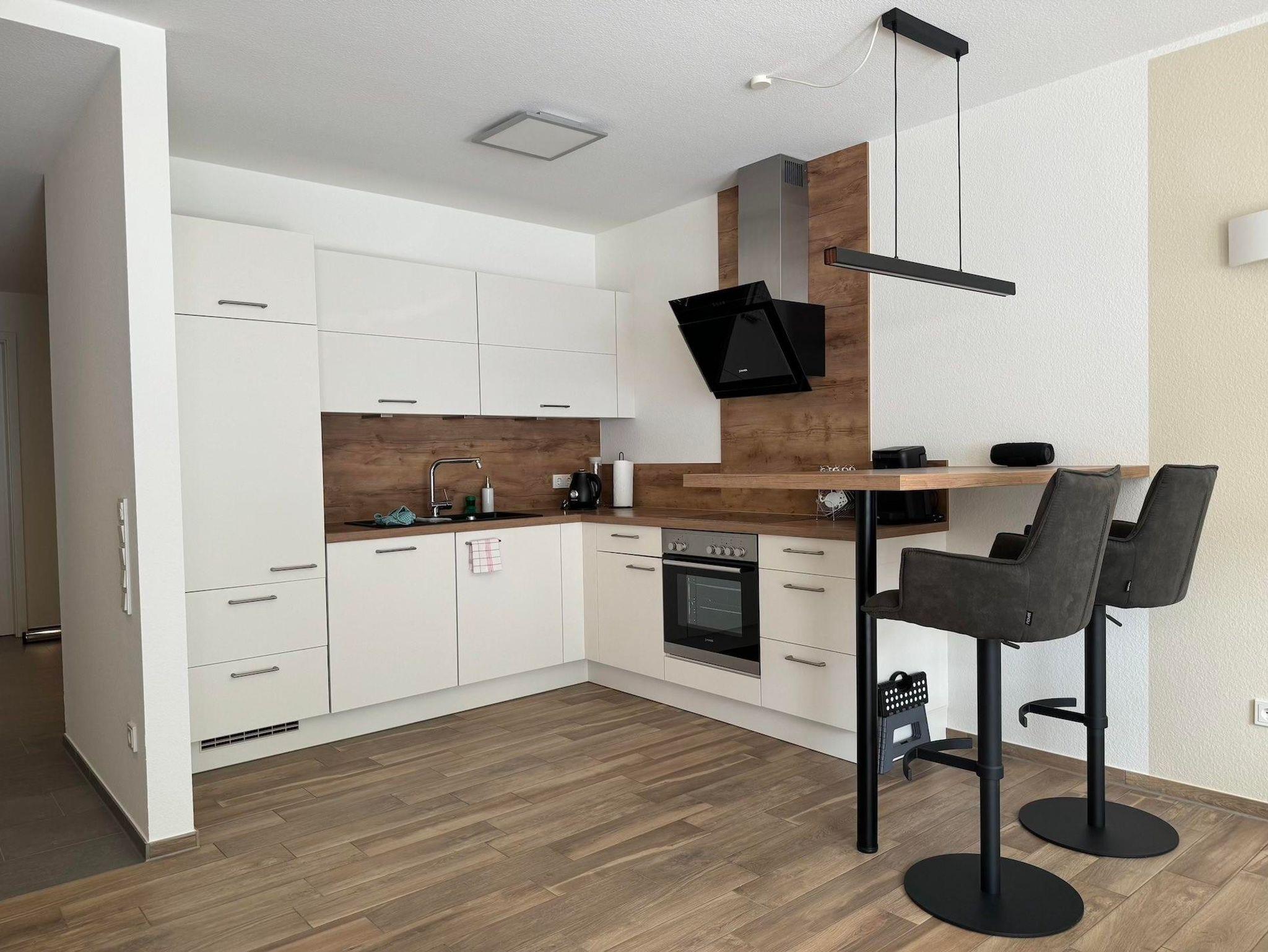 An der Theke mit Barhockern oder am Esstisch für 4 Personen lässt es sich gemütlich speisen und den Urlaub genießen.