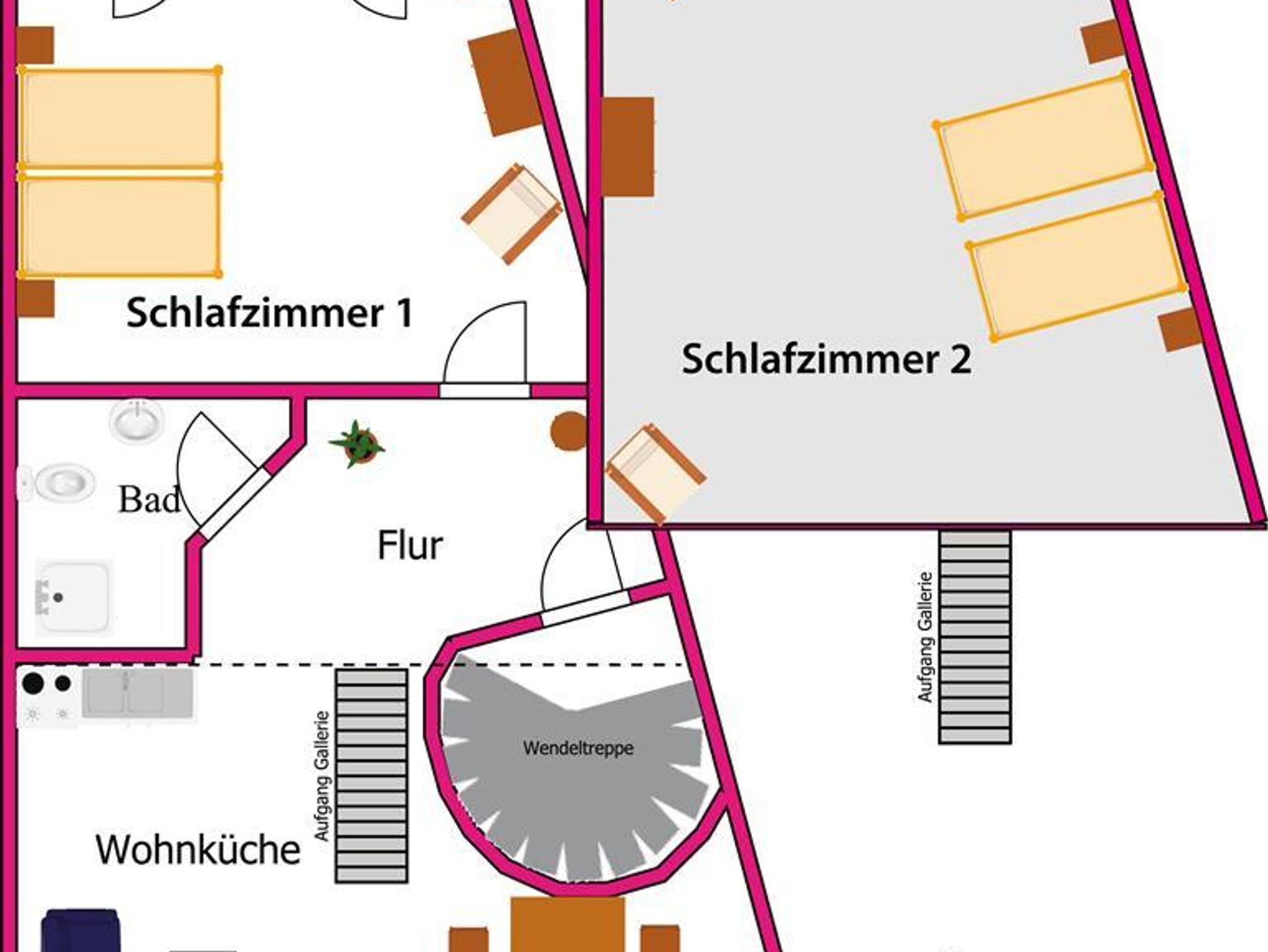 60m² große Wohnung für 4 Personen mit 2 Schlafzimmern, seperater Eingang, Balkon zum ruhigen Innenhof.