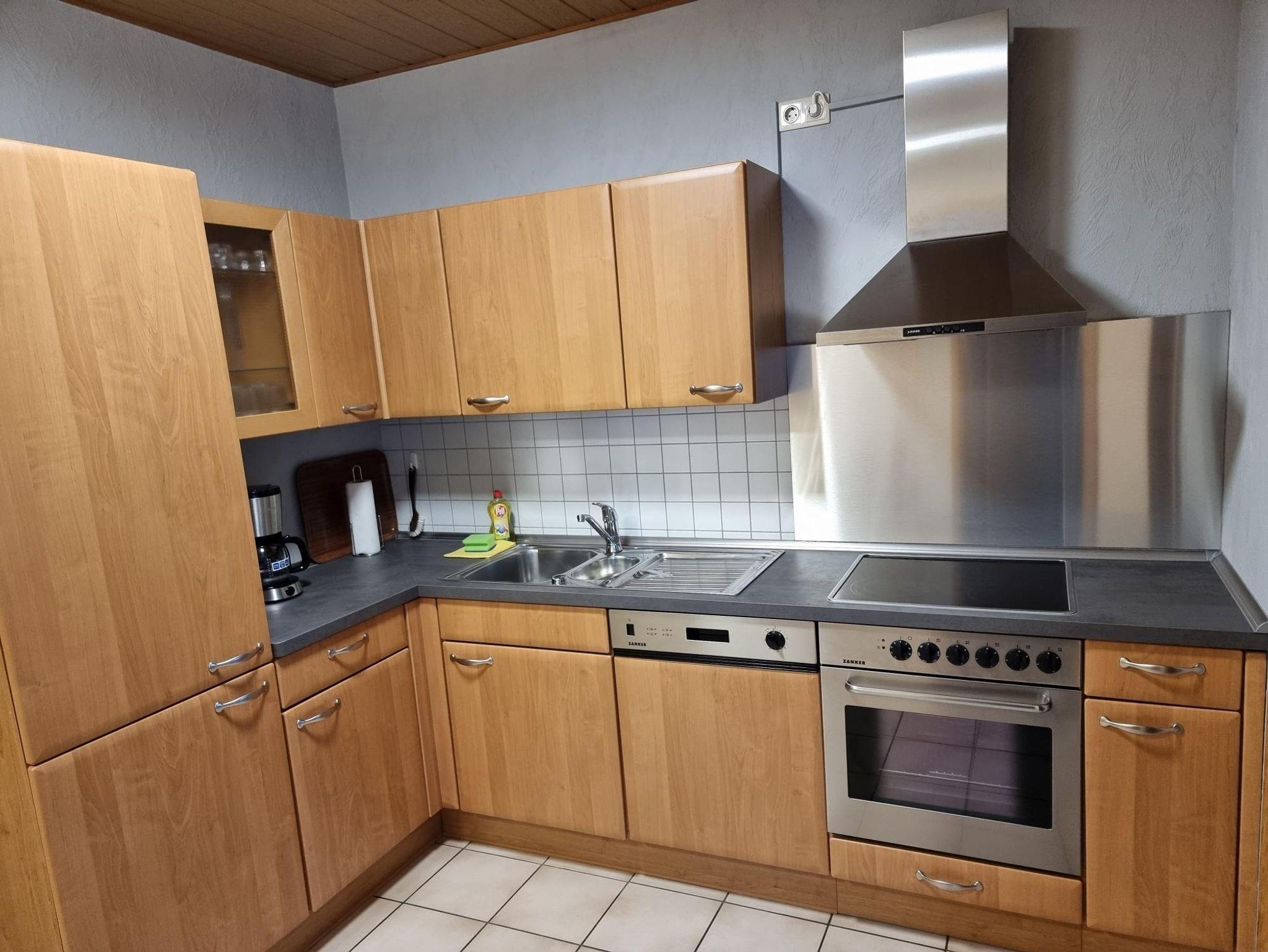 Küche mit Backofen, Wasserkocher, Kaffeemaschine, Spülmaschine, Gefrierschrank, etc..