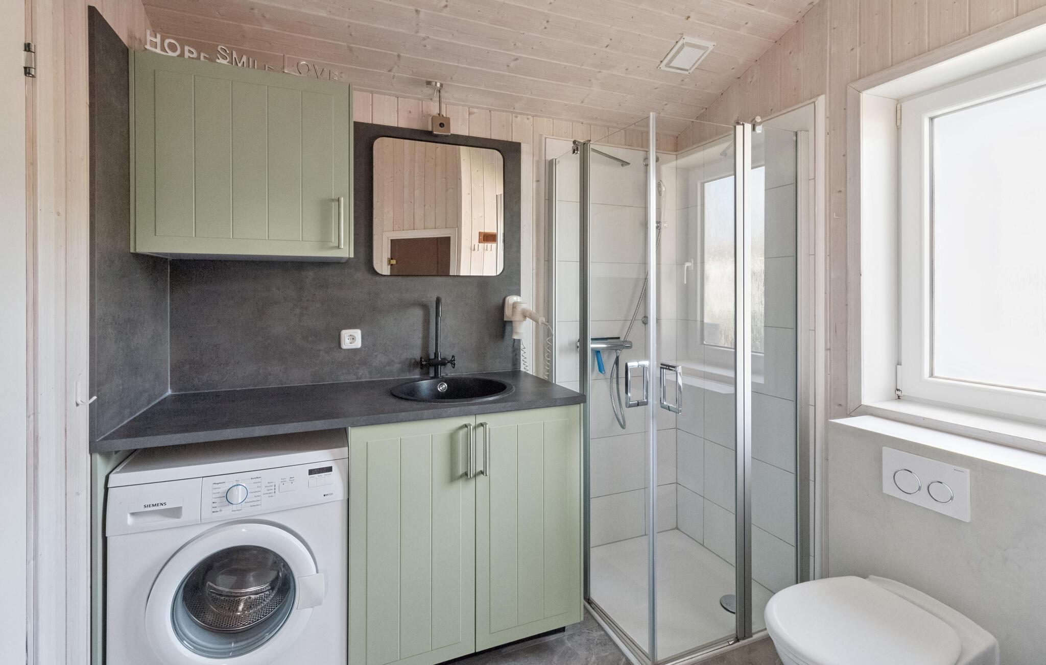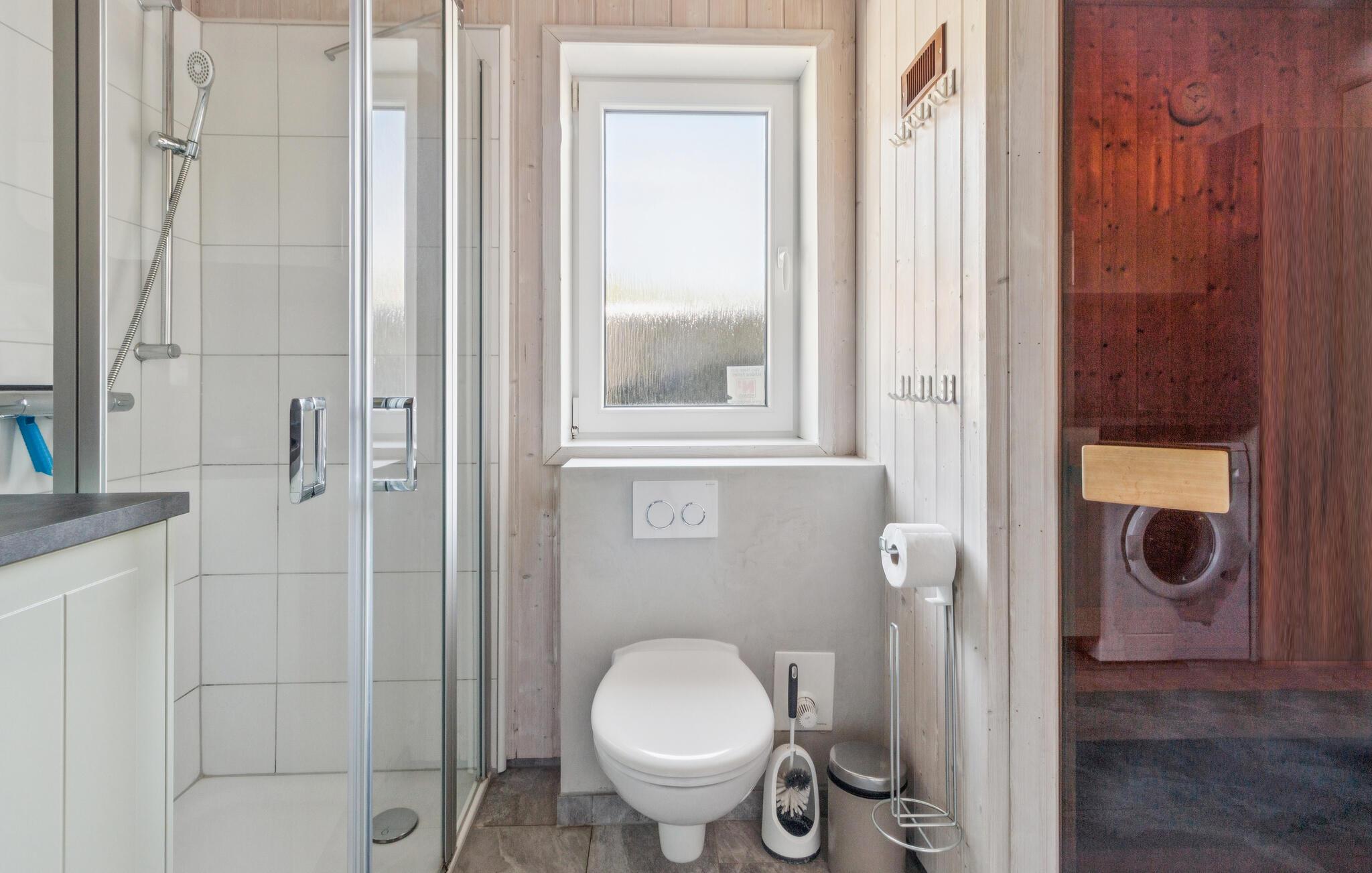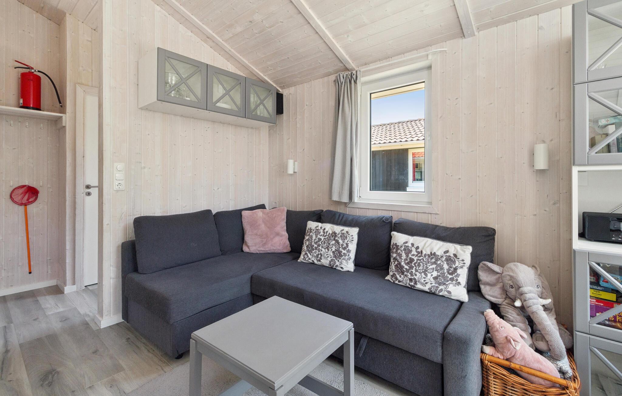 Takket være en sovesofa i oppholdsrommet kan opptil seks personer tilbringe ferien her, bare hundre meter fra den berømte, brede stranden i Travemünde-Priwall. Husets høydepunkt er det store badet, som har badstue. Den er tilgjengelig fra begge soverommene. Her kan du varme deg opp etter lange turer på stranden, spesielt på kjøligere dager, og slappe perfekt av med aromatiske infusjoner. Etterpå kan du tilbringe koselige timer foran bioetanolpeisen i stuen og bare glemme hverdagen.