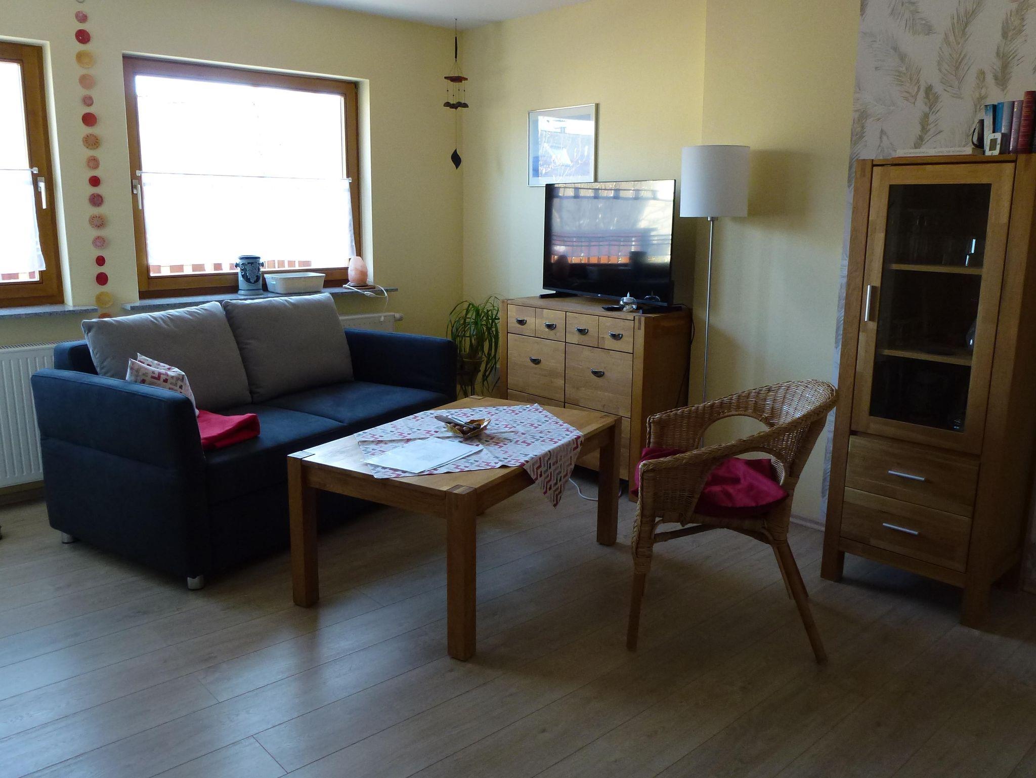 Die gemütlich eingerichtete Ferienwohnung (ca. 50 qm) bietet Platz für 2 Personen mit einem Doppelschlafzimmer, ein Wohnraum, eine komplett eingerichtete Einbauküche, Du/WC, Kabel-TV mit Radio und kostenloses WLAN.