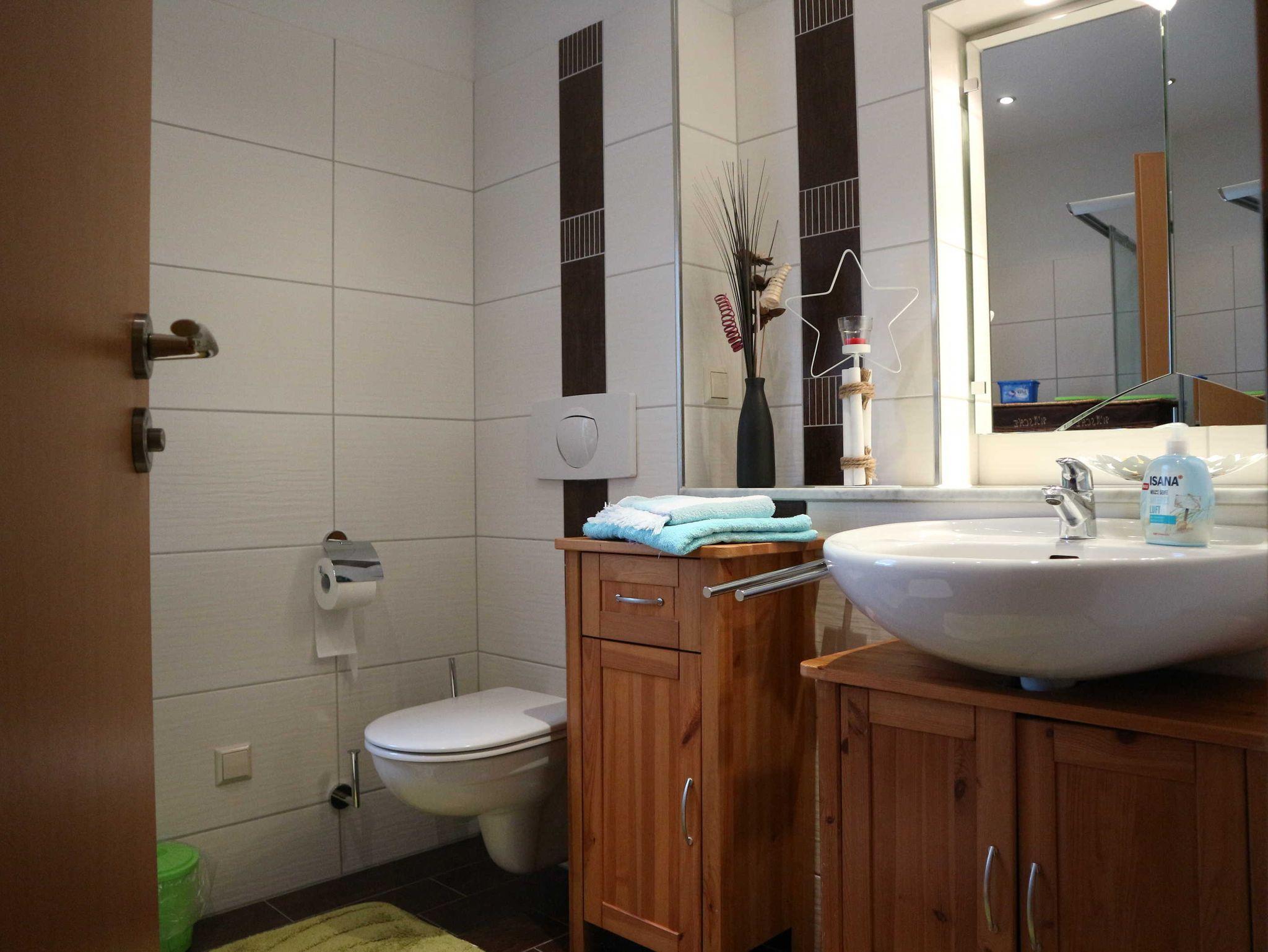 Schöne helle 44 qm Einliegerwohnung mit seperaten Eingang im idyllischen Ort Wolfshain. Das Zweiraum-Appartment verfügt über ein Schlafzimmer mit zwei Einzelbetten (zusammenschiebbar) und einem Kinderetagenbett. Im Schlafzimmer ist Platz für eine Aufbettung und/ oder Reisebettchen. Weitere Aufbettungen sind Auf Anfrage möglich. Im Wohnzimmer befindet sich eine Sitzgruppe für 6 Personen und ein TV Flachbild, Radio mit CD Player. Direkt anschließend befindet sich die Küchenzeile mit Backofen, E-Herd mit Ceranfeld, Kühl- und Gefrierschrank sowie Mikrowelle u.a. Direkt nebenan steht Ihnen ein Hauswirtschaftsraum mit u.a. Bügelbrett und -eisen als Abstellmöglichkeit zur Verfügung. Das großzügige Bad mit Fenster hat eine ebenerdige Dusche und eine Waschmaschine.
