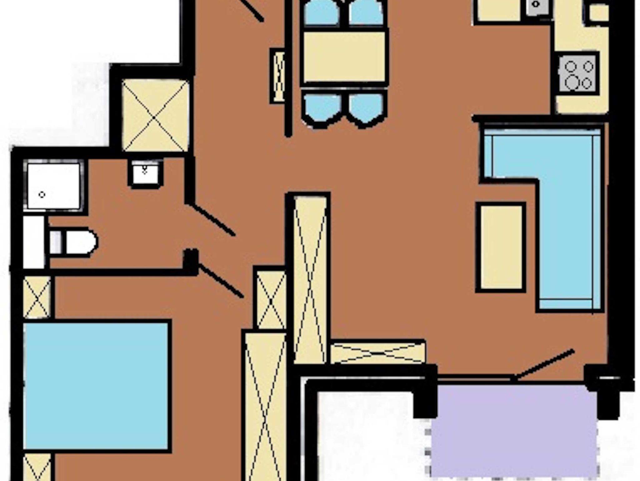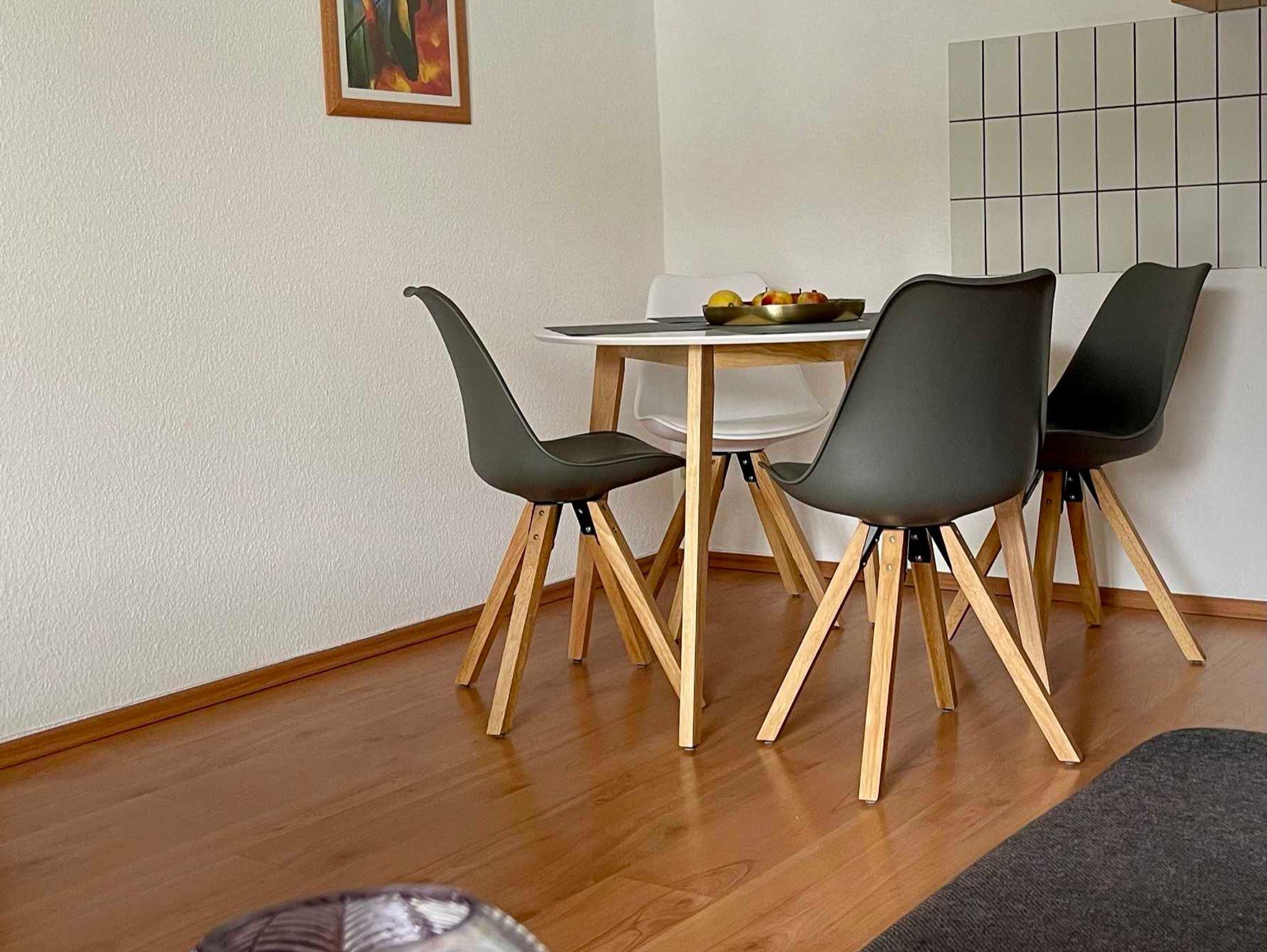 Die 46 Quadratmeter grosse Wohnung verfügt über ein Schlafzimmer und eine offene Küche mit Essbereich. Vom Essbereich gelangen Sie direkt in den Wohnbereich.