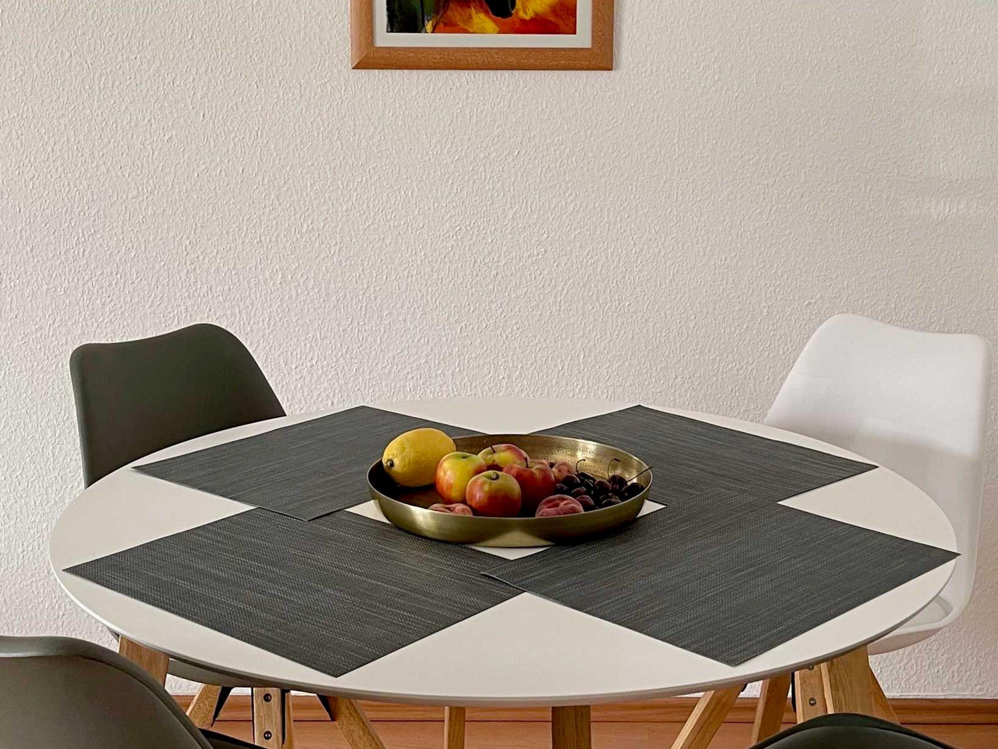Die 46 m² große Wohnung ist modern ausgestattet und verfügt über einen Wohnraum mit ausziehbarem Schlafsofa für zwei Personen (1,95 m x 1,4 m), einem Essplatz für vier Personen, einem Flachbildfernseher und einem Radio mit CD-Spieler. Das Schlafzimmer verfügt über ein Doppelbett (1,80 m Breite), einen großen Kleiderschrank und einer Kommode. Gerne stellt Ihnen der Vermieter auch kostenfrei ein Babybett zur Verfügung. Eine zum Wohnraum offene Küche mit E-Herd, Backofen, Kühlschrank mit Tiefkühlfach, Kaffeemaschine, Toaster und einem Wasserkocher lässt keine Wünsche offen. Ein Badezimmer mit Dusche, WC, Waschbecken, Föhn und Zentralheizung ist ebenfalls vorhanden. Alle Fenster sind mit Fliegengittern und die Terrassentüren sind jeweils mit einer Insektenschutztür versehen. Die Ferienwohnung hat einen Kabelanschluss und verfügt im gesamten Objekt über WLAN. Auch einige Gesellschaftsspiele warten hier schon auf Sie.