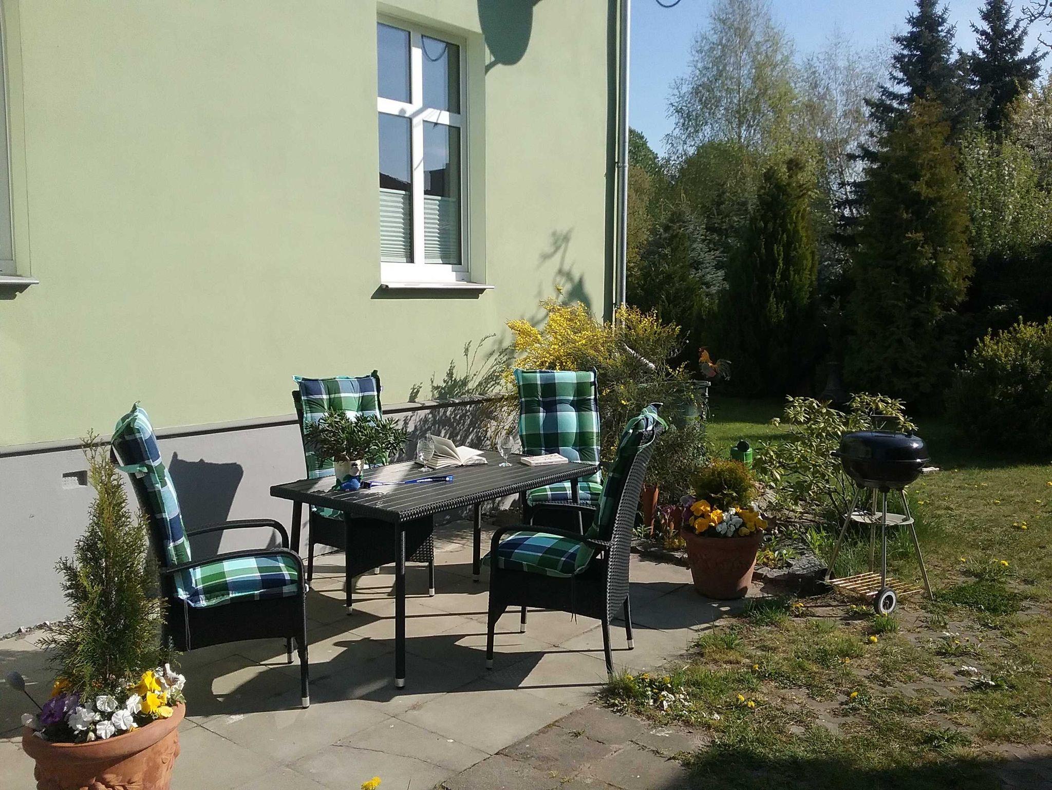 für lange Sommerabende ein. Da es sich um ein abgeschlossenes mit einem Zaun umgebenes Grundstück handelt, sind Kinder und auch ihre vierbeinigen Freunde in guter Sicherheit. Unseren Gästen steht ein kostenloser Parkplatz und ein Carport direkt am Haus zur Verfügung.