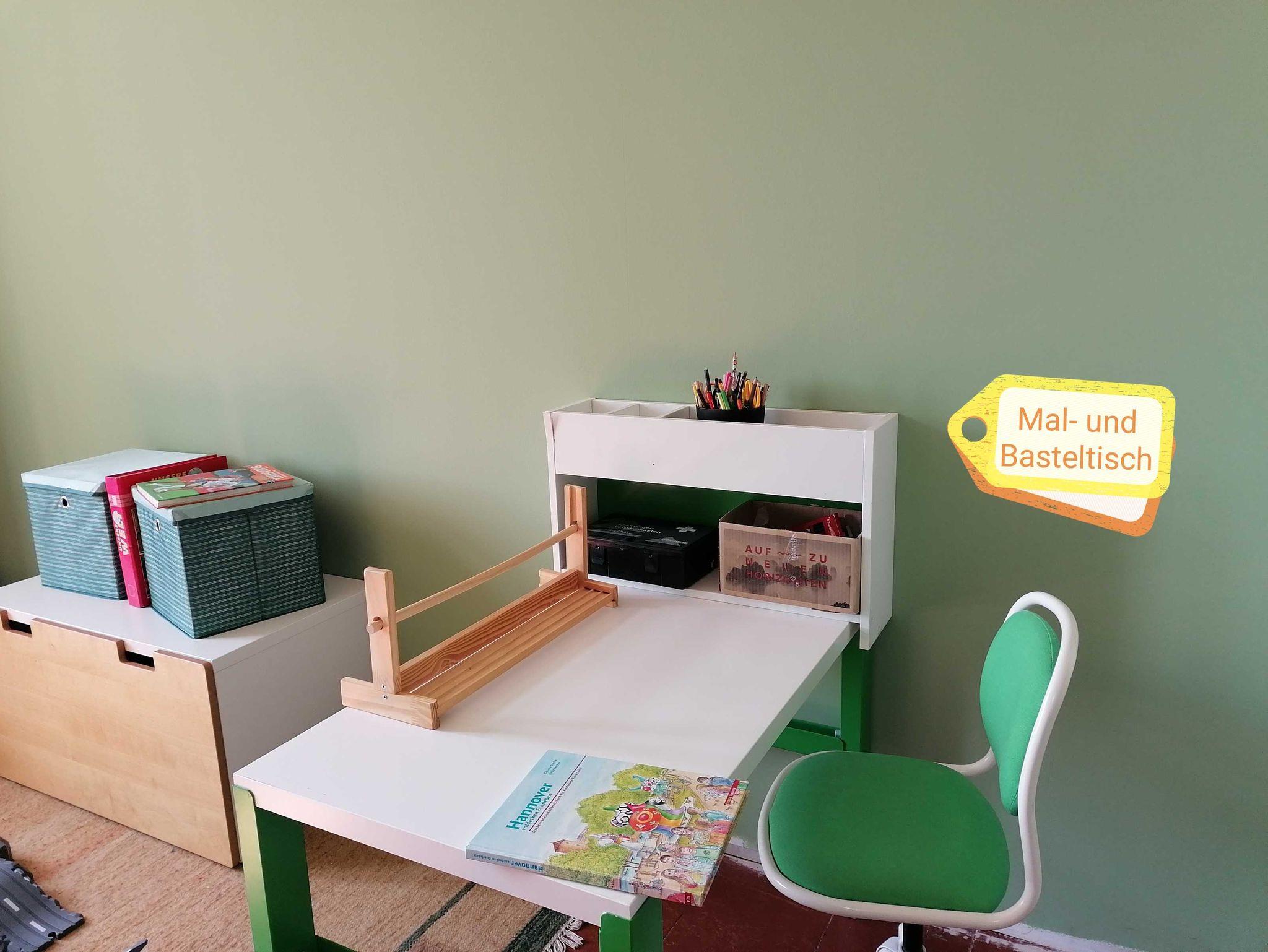 Auf 76 m2 bietet sie eine komplett ausgestattete Küche mit Spülmaschine, ein geräumiges Bad und einen geschmackvoll eingerichteten Essraum sowie einen kombinierten Wohn/Schlafraum mit Doppelbett und ein zusätzliches Schlafzimmer mit Doppelstockbett, Kinder- und Zusatzbett. Freies WLAN und der Internet- Smart-TV ergänzen die Einrichtung. Für unsere kleinen Gäste stehen Hochstuhl, Bauspielzeug, Gesellschaftsspiele und Bücher (geeignet für die Alterspanne 0 bis ca. 10 Jahre) zur Verfügung.