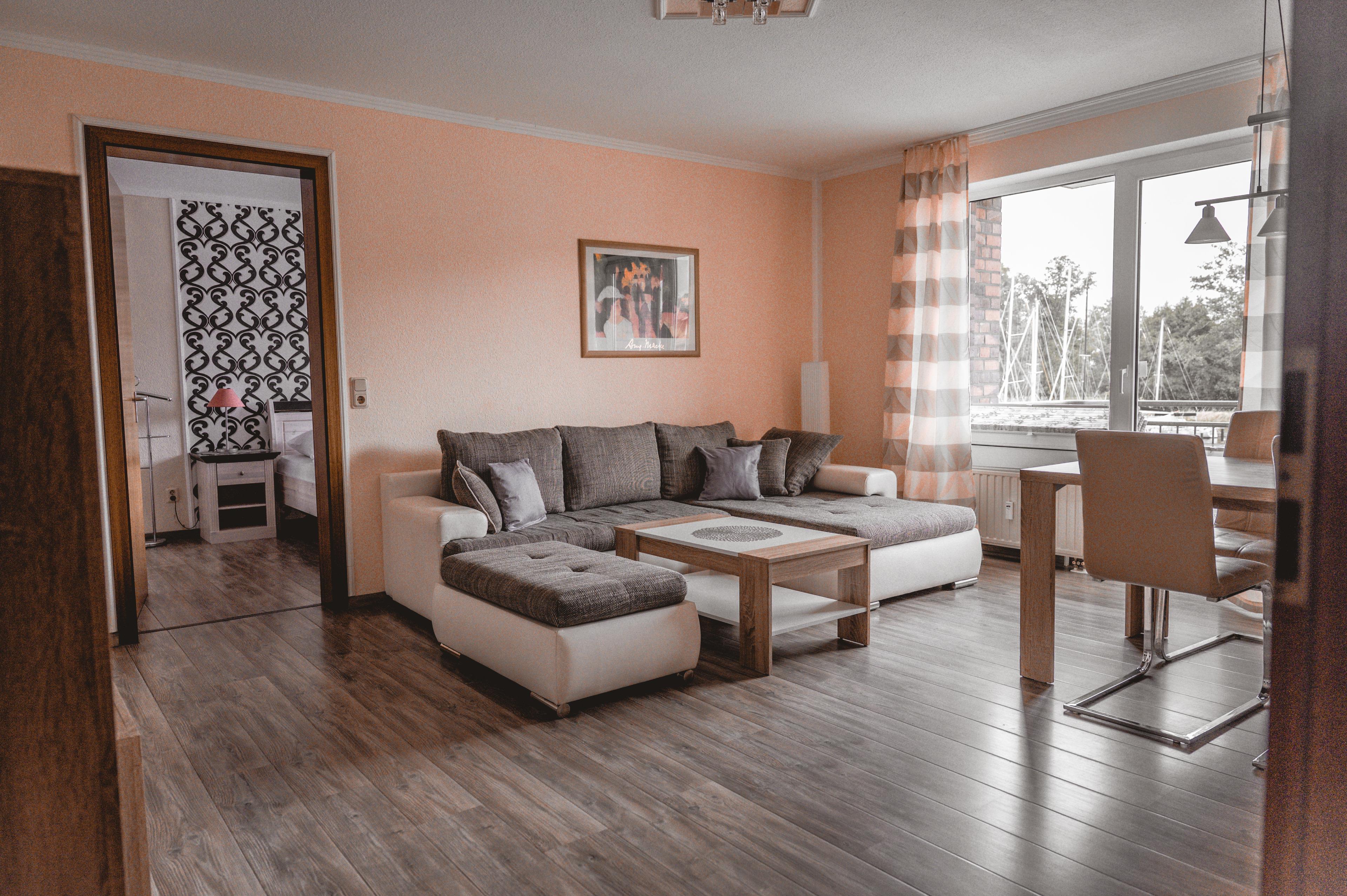 Bei der Ferienwohnung Oberlicht handelt es sich um eine gut eingerichtete, maritim geprägte Nichtraucherwohnung, die sich auf 61 Quadratmetern erstreckt. Aus jedem Fenster und auch von den nord-westlich ausgerichteten Balkonen aus blicken Sie direkt auf die Hafenanlagen der Marina. Auf den beiden Balkonen stehen Ihnen Gartenstühle, ein Tisch und ein Sonnenschirm zur Verfügung.