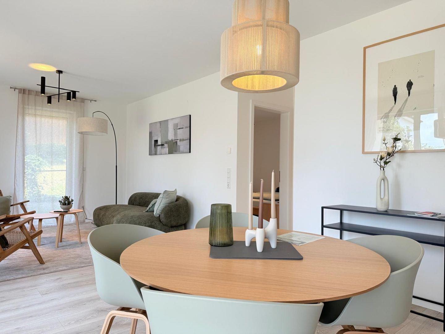 Die Suite Harmony in Uhldingen-Mühlhofen bietet auf 83 m² ein modernes und komfortables Wohnambiente für bis zu vier Personen. Die im Jahr 2025 erbaute Suite befindet sich im Parterre eines zeitgemäßen Gebäudes und richtet sich an Gäste, die Wert auf hochwertige Ausstattung, Privatsphäre und naturnahe Erholung legen. Besonders Familien, Paare und kleine Gruppen finden hier eine ansprechende Unterkunft, in der auch ein Haustier (maximal eines) willkommen ist. Jugendgruppen sind nicht gestattet.