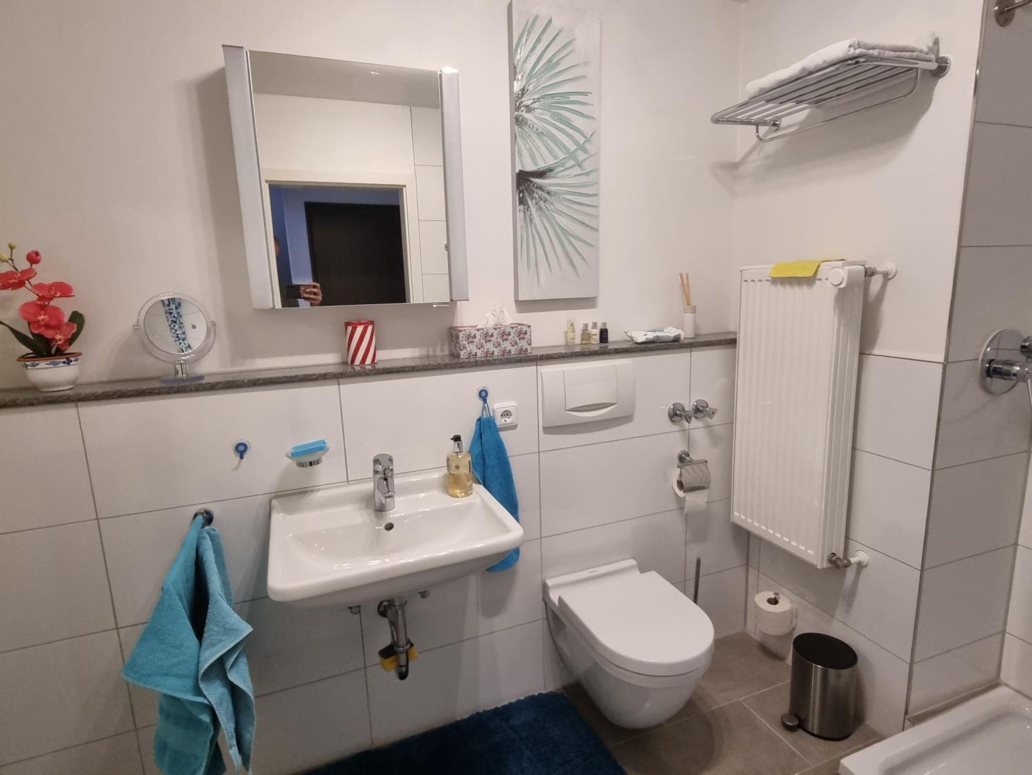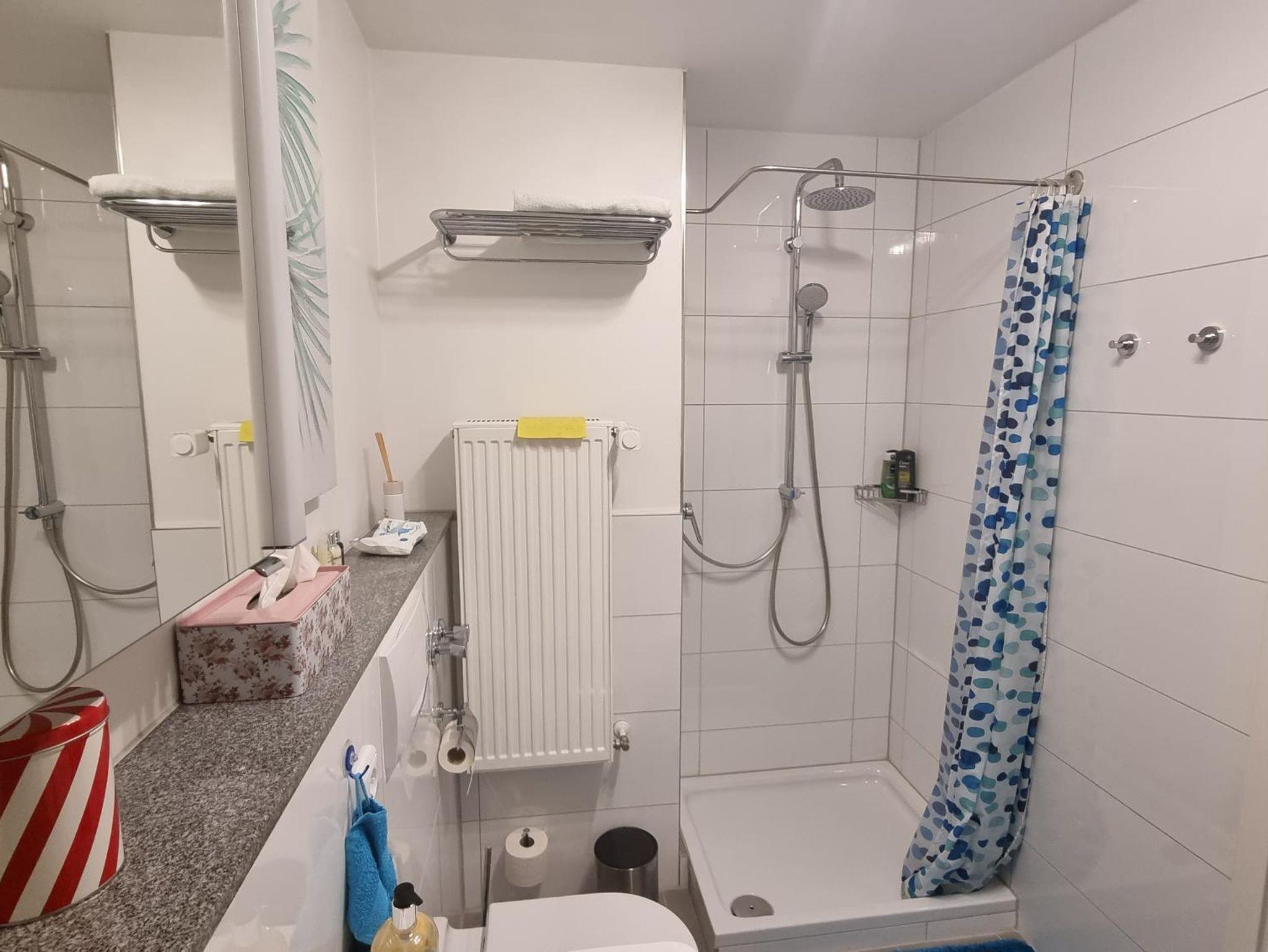 Das Badezimmer ist mit einer tollen Regendusche ausgestattet, die für ein erfrischendes Duscherlebnis sorgt.