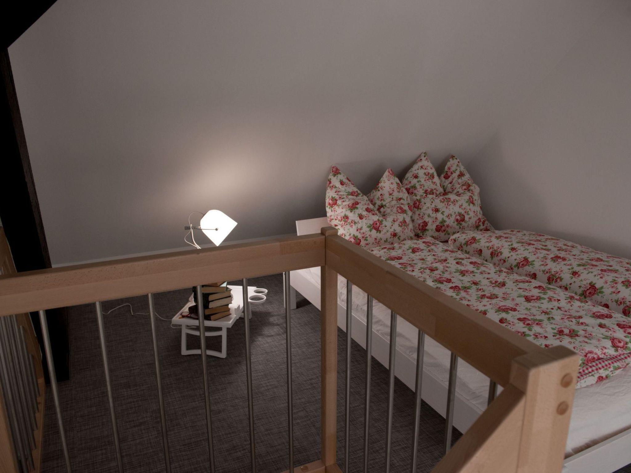 Inside, a modern and lovingly furnished ambience awaits you on 69 m² (DIN), spread over three floors. The fully equipped kitchen-living room invites you to cook and linger together. With a ceramic hob, oven, dishwasher, kettle and a coffee pod machine, everything is provided for self-catering. There is a modern shower room with WC on the mezzanine floor. The open-plan upper floor, which is accessed via a staircase (please note that this cannot be closed off by a door), houses a queen-size bed and two sofa beds.
