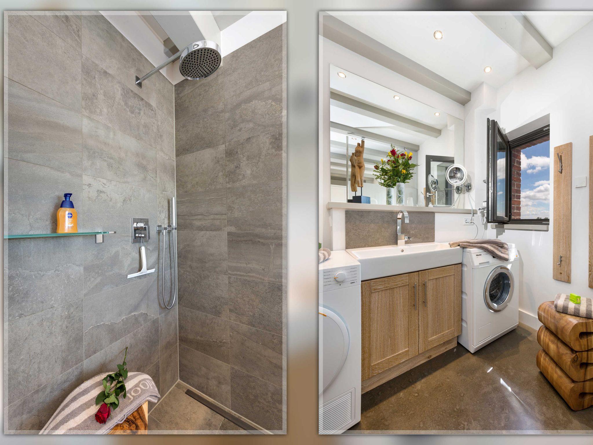 2 Bäder mit schwellenlosem Duscheinstieg und Rainshower-Kopfbrause, Sauna,