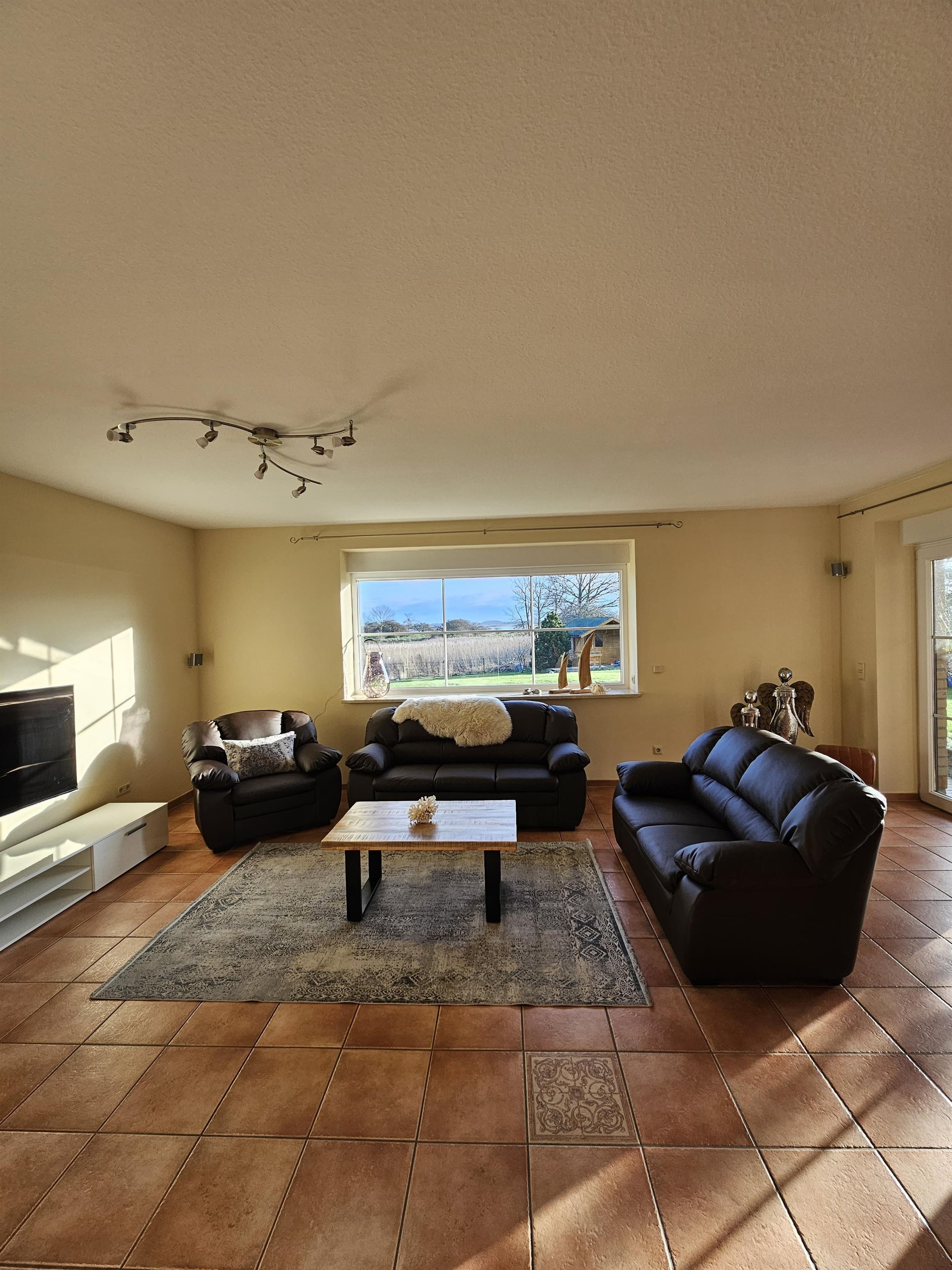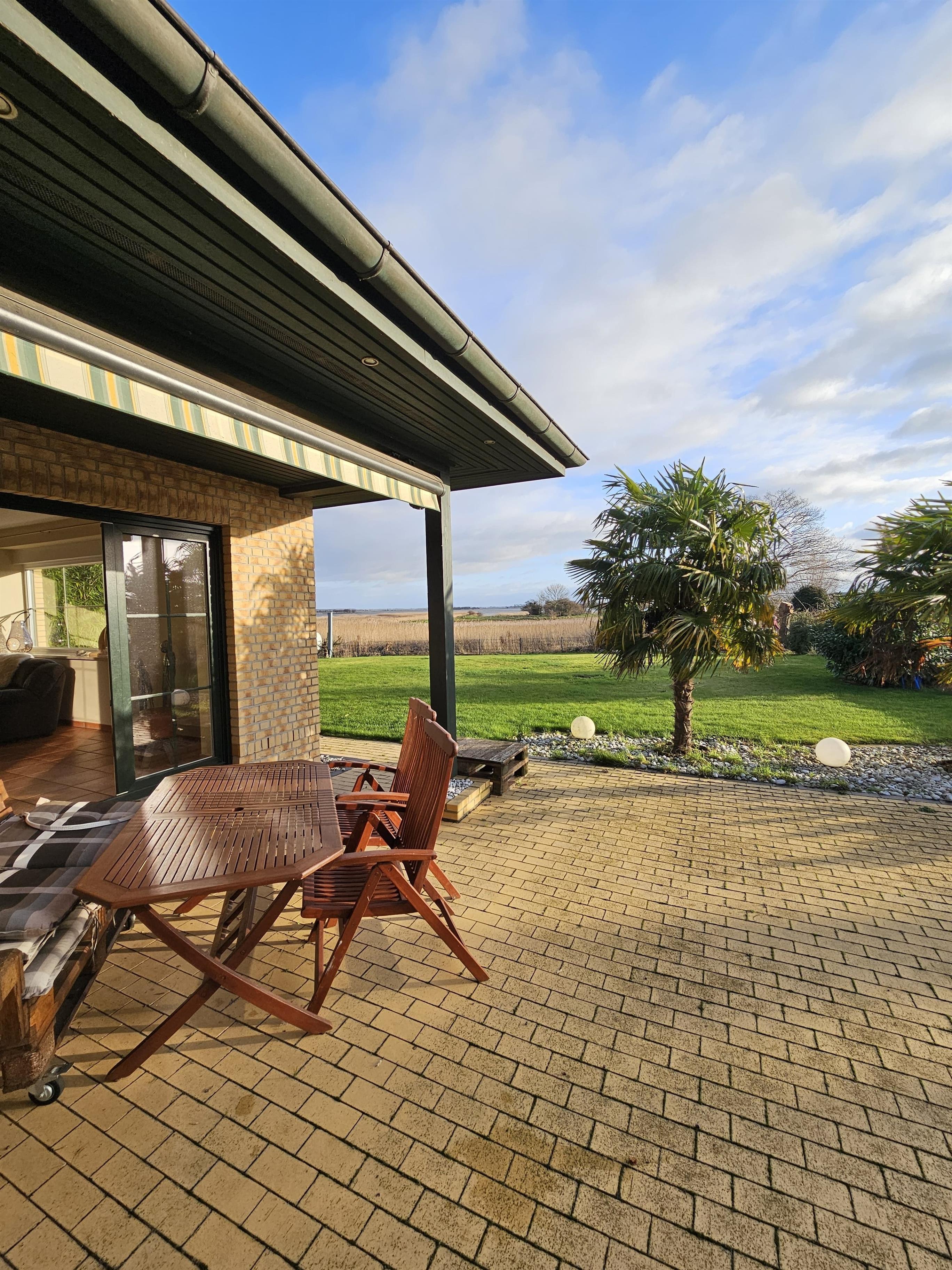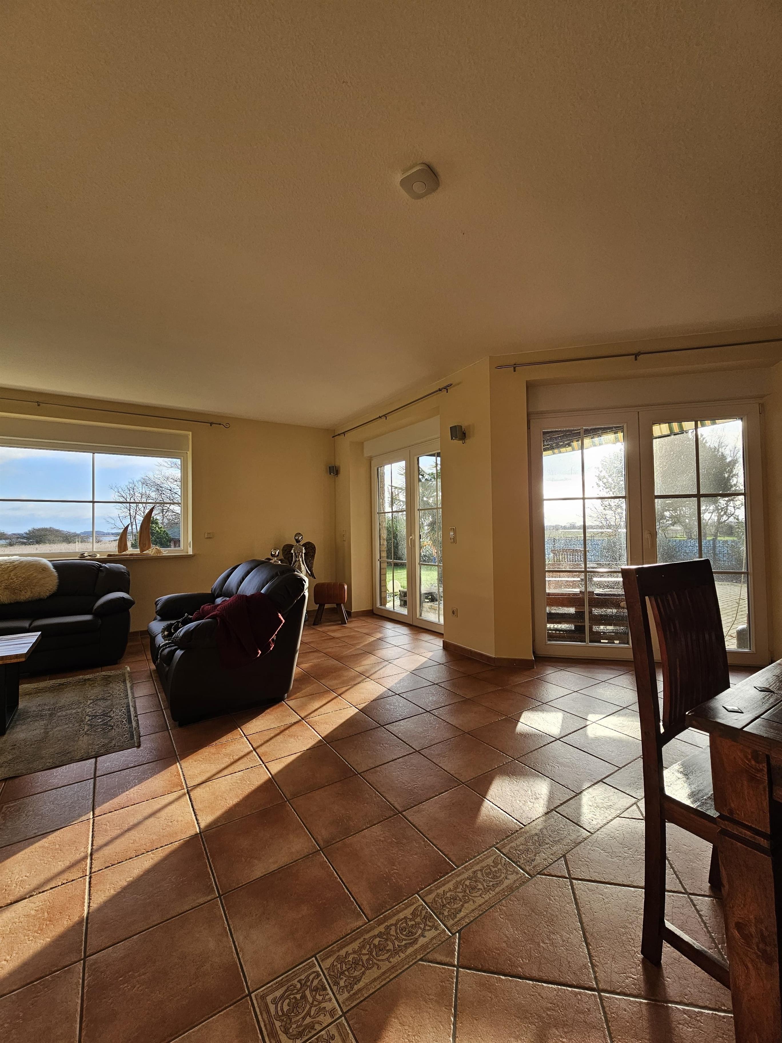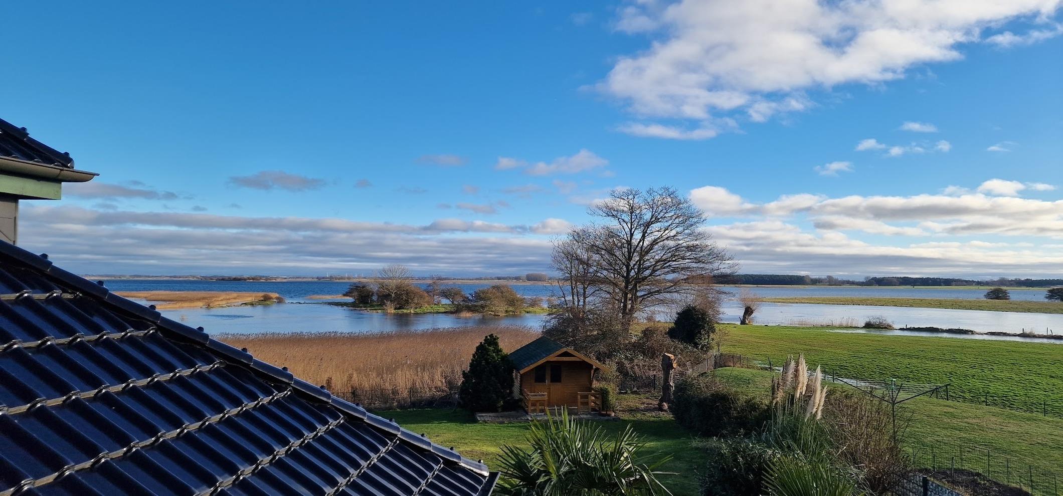 Komplett ausgestattet auf 140m² im Erdgeschoss für bis zu 6 Personen, 1100 m² großes eingezäuntes Grundstück, in unmittelbarer Nähe zum Boddengewässer und freien Seeblick.
