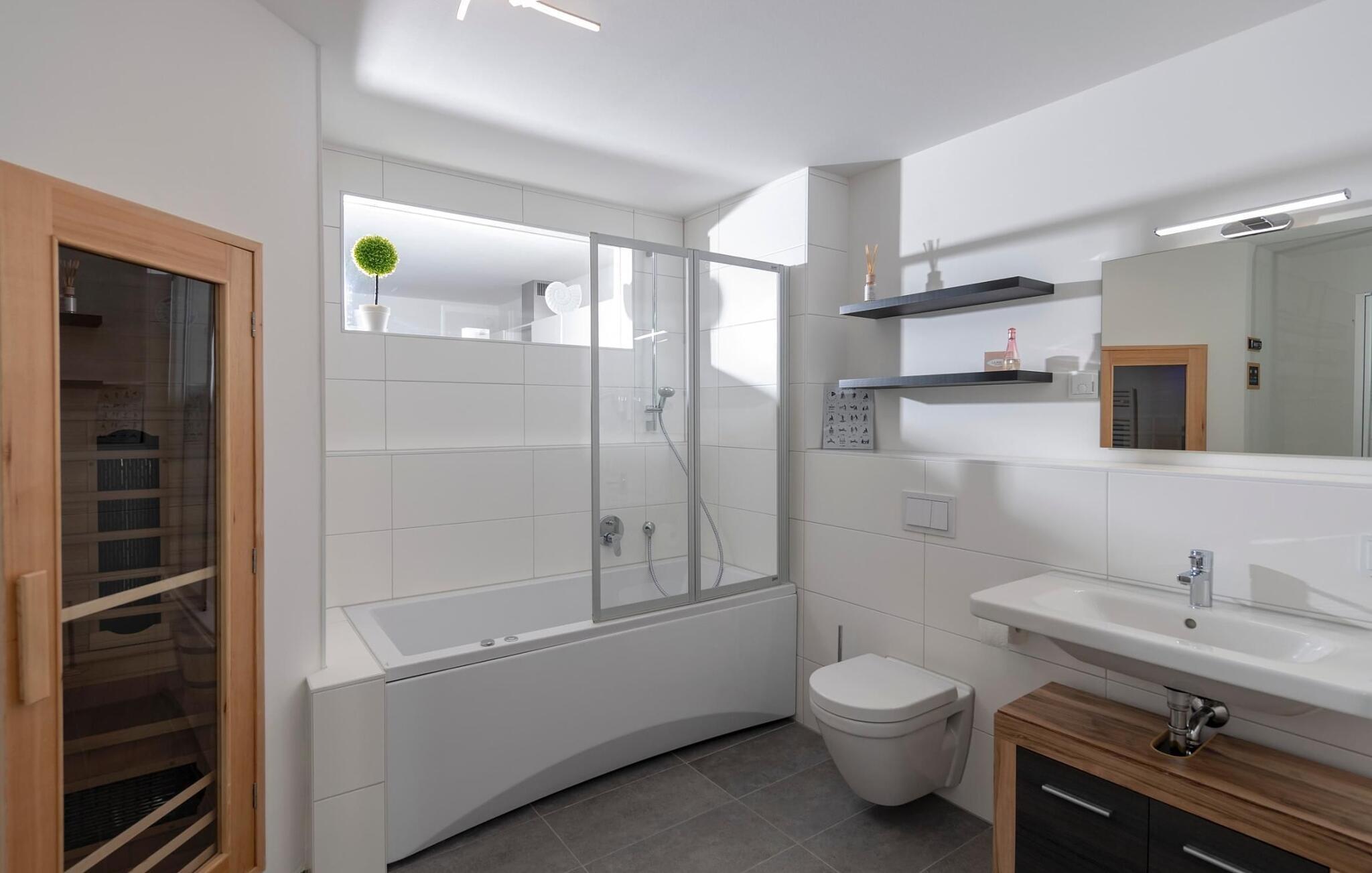 Gulvvarme, boblebad og badstue sørger for komfort når som helst på året.