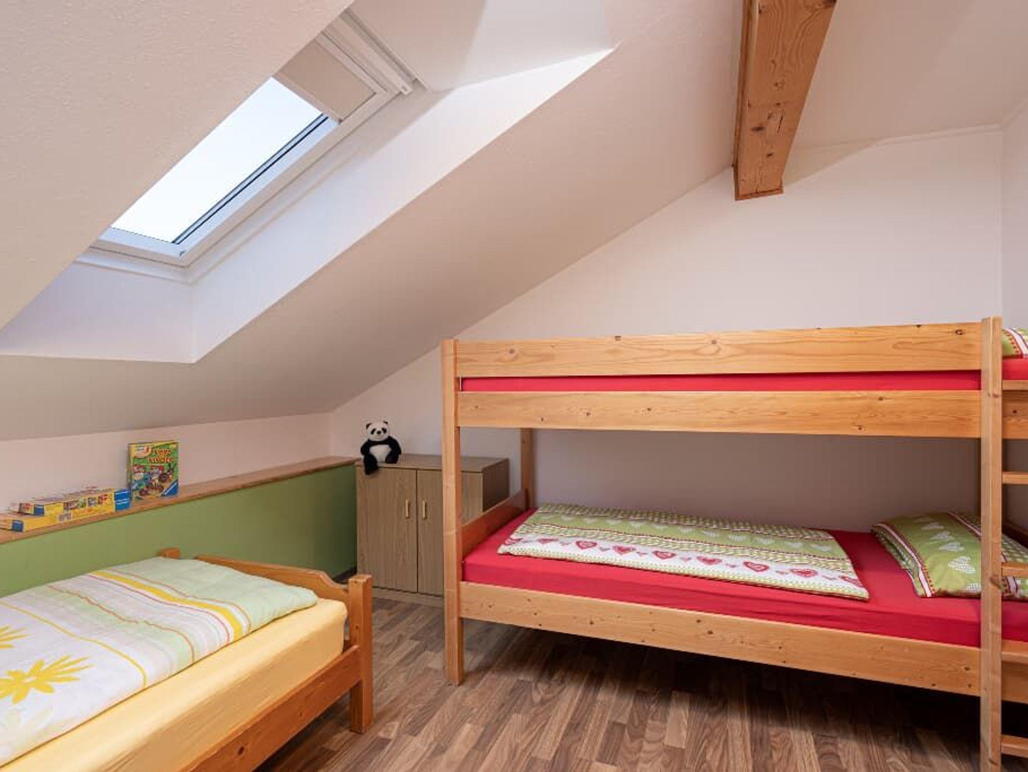 2 Personen mit Doppelbett und ein Kinderzimmer für 3 Personen mit Etagenbett und Einzelbett.