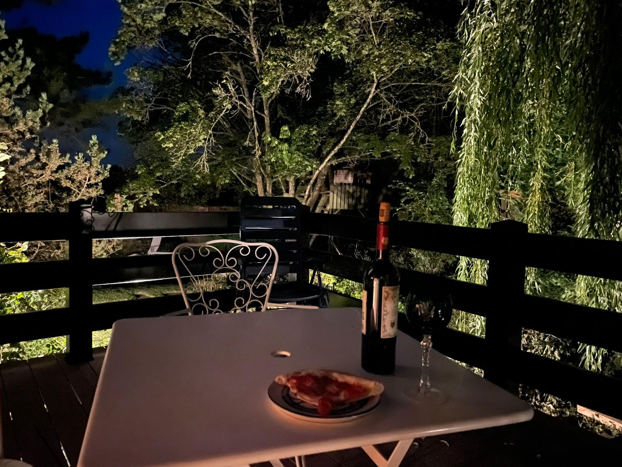 Das Highlight der Wohnung ist die große, erhöht liegende Holzterrasse inklusive Geländer außen herum, welche sich in unseren üppigen, weitläufigen Garten hinein erstreckt. Hier sind auch wir in unserer Freizeit anzutreffen. Unser grüner Rückzugsort wurde 2025 vom Landesbund für Vogelschutz als Vogelfreundlicher Garten ausgezeichnet. Geschützt von Birke, Kiefer und der üppigen Weide lässt es sich wunderbar abschalten. (Elektrisch ausfahrbare Marquise vorhanden).