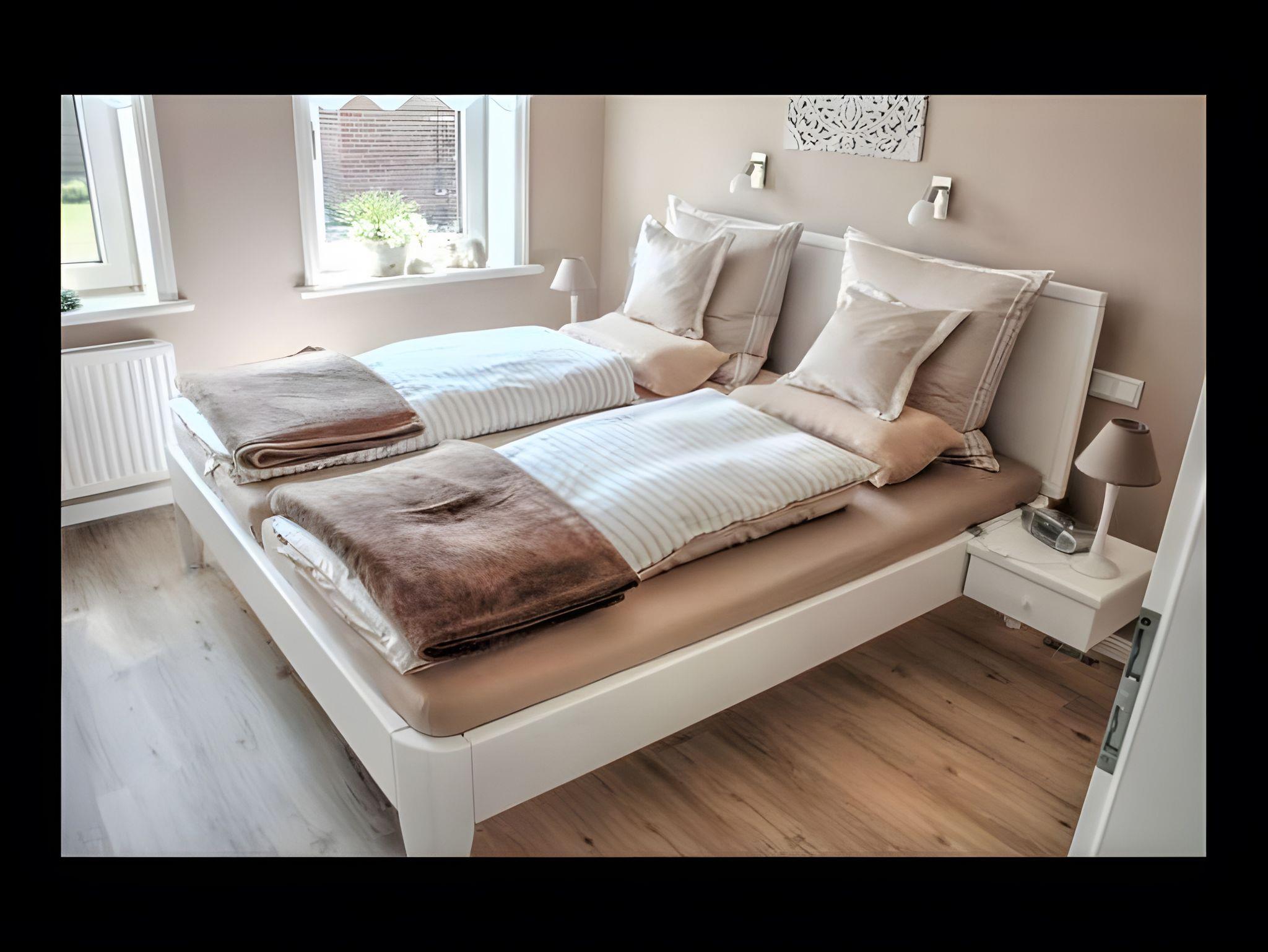 Die Ferienwohnung Nanny in Uphusum bietet auf 68 m² Platz für bis zu 4 Gäste. Es gibt 2 Schlafzimmer – eines mit Doppelbett, das andere mit 2 Einzelbetten. Das Bad ist mit Dusche und Waschmaschine ausgestattet. In der privaten, gut ausgestatteten Küche finden Sie Backofen, Cerankochfeld und Kühlschrank. Der kombinierte Wohn- und Essbereich bietet hochwertige Möbel und Fußbodenheizung. Zu den Annehmlichkeiten zählen stufenloser Zugang, WLAN, TV, Balkon, Haartrockner, Handtuchwärmer, Hocker und Duschprodukte. Die Wohnung wurde 2013 renoviert. Ein zusätzliches Kinderbett kann bei Bedarf bereitgestellt werden.