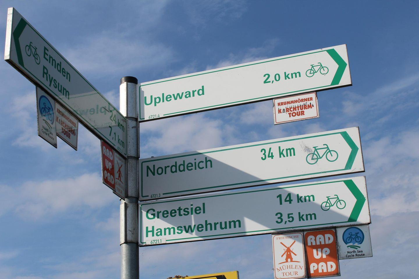 • Upleward ist eines der 18 Warfendörfer, die zusammen mit Greetsiel die Krummhörn bilden. Der Ortskern besticht durch kleine, urige Einfamilienhäuser und große Bauernhöfe, welche um eine gotische Kirche gruppiert sind. Besonders sehenswert sind die großartigen Schmiedekunstzäune aus Metall des kanadischen Künstlers Guiseppe Lund.
