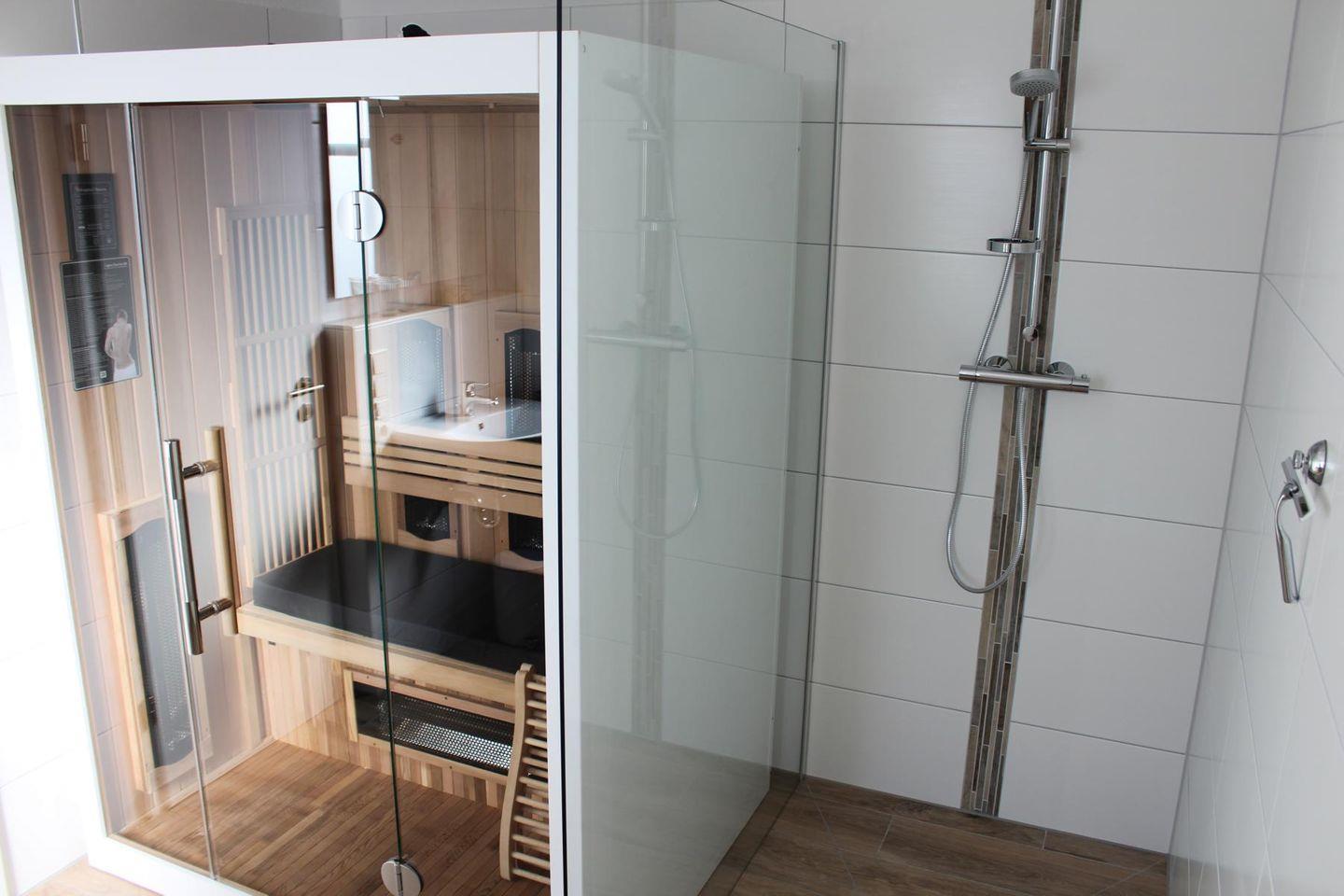 • hochwertige Infrarotkabine für 2 Personen mit Glasfront, wählbarer Farbbeleuchtung und Bluetooth-Lautsprecher
