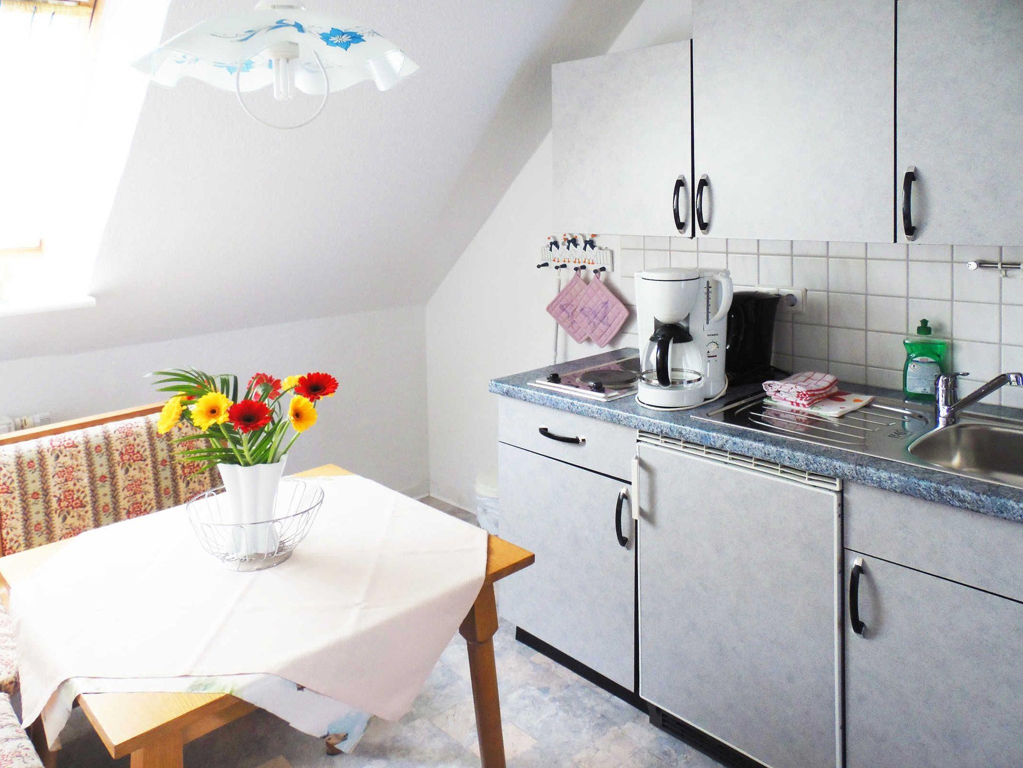 Küche mit Sitzecke und Radio