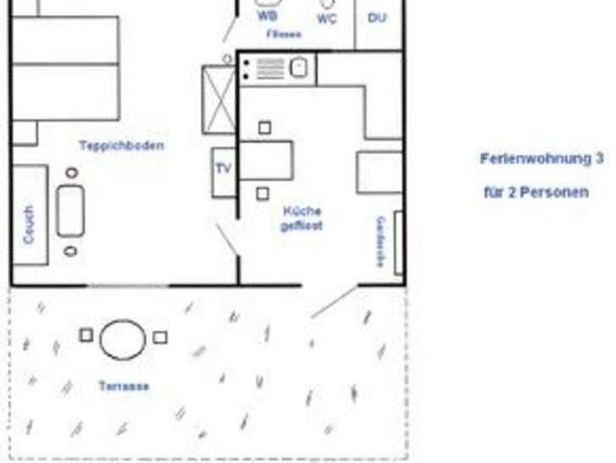 1 komb. Wohn- u. Schlafzimmer bis 2 Personen, Küche, Du/WC, Sat/TV/Radio, Garten, Terrasse mit Sitzecke, Grill, Parterre, sep. Eingang, Bettwäsche und Handtücher pro Person 12,00 Euro oder selbst mitbringen, Gaststätten, Einkaufsmöglichkeiten (Aldi, Netto) und Bäcker 2 min., Nichtraucherwohnung, Parkplatz vor dem Haus, Garage mietbar, Strom und Wasser nach Verbrauch bei Abreise (Zähler sind vorhanden)
