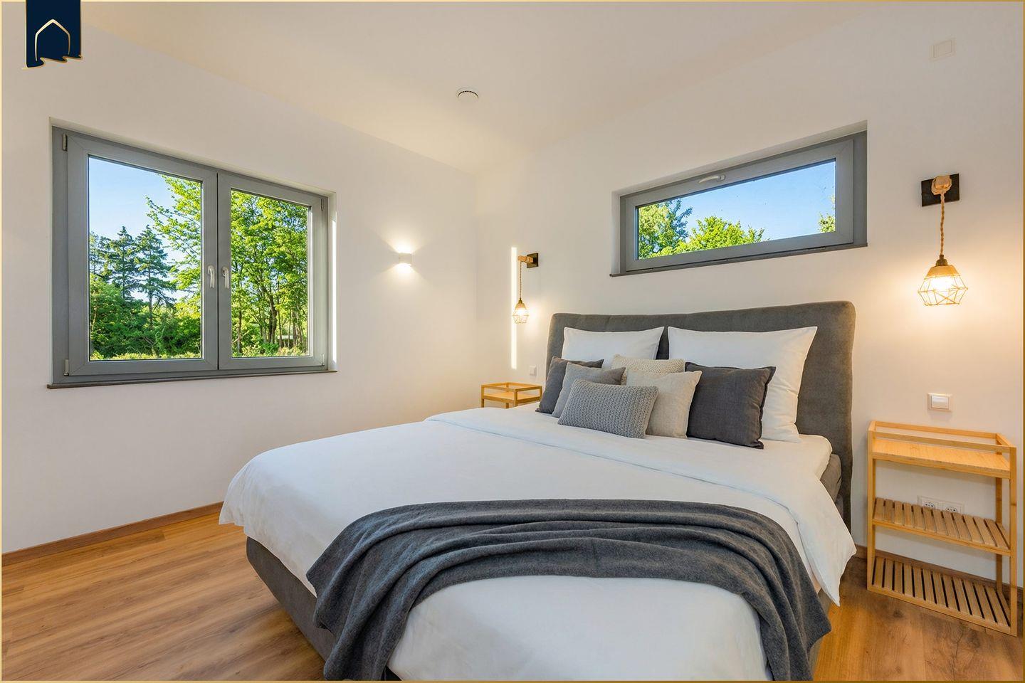 Ein gepflegter Garten mit einladenden Sonnenliegen sowie eine möblierte Terrasse schaffen den perfekten Ort zum Abschalten und Genießen.. Für entspannte Grillabende steht ein Grillplatz zur Verfügung. Der überdachte Balkon eröffnet einen weiten Blick über die ländliche Umgebung und gewährt wunderschöne Ausblicke in die Natur.