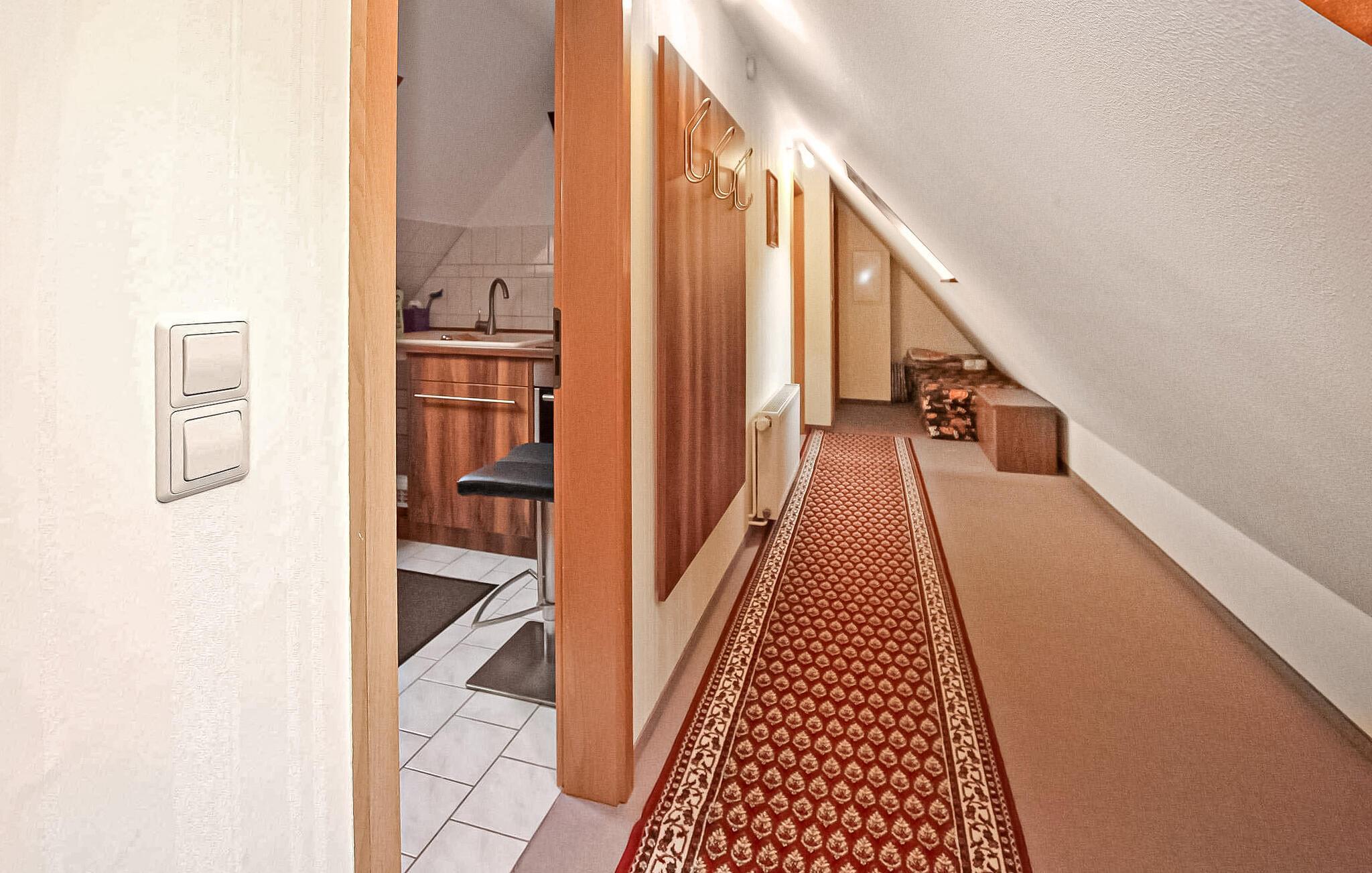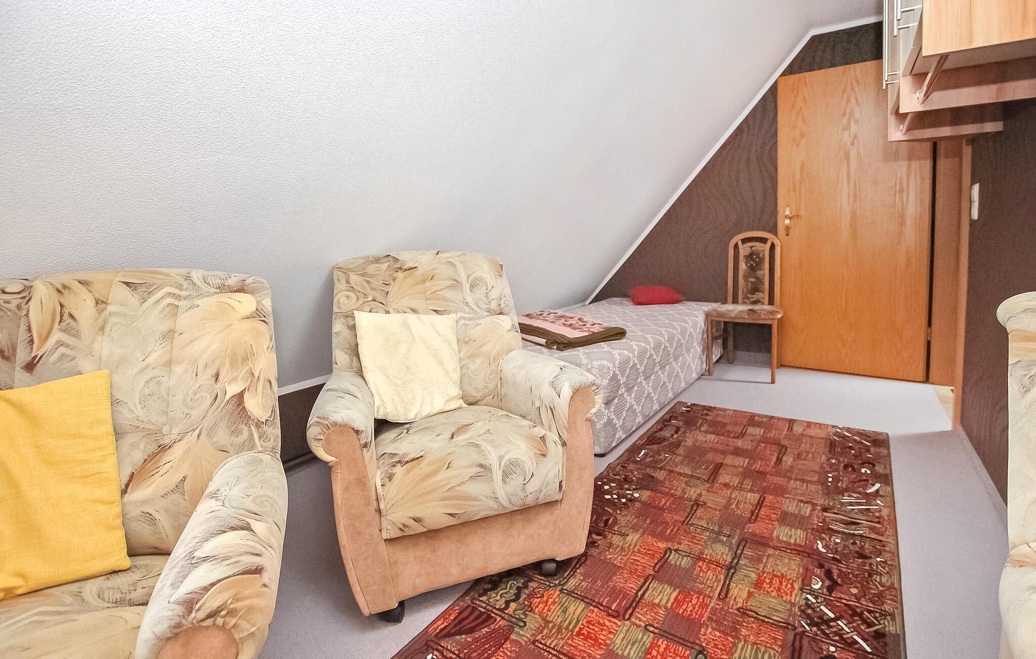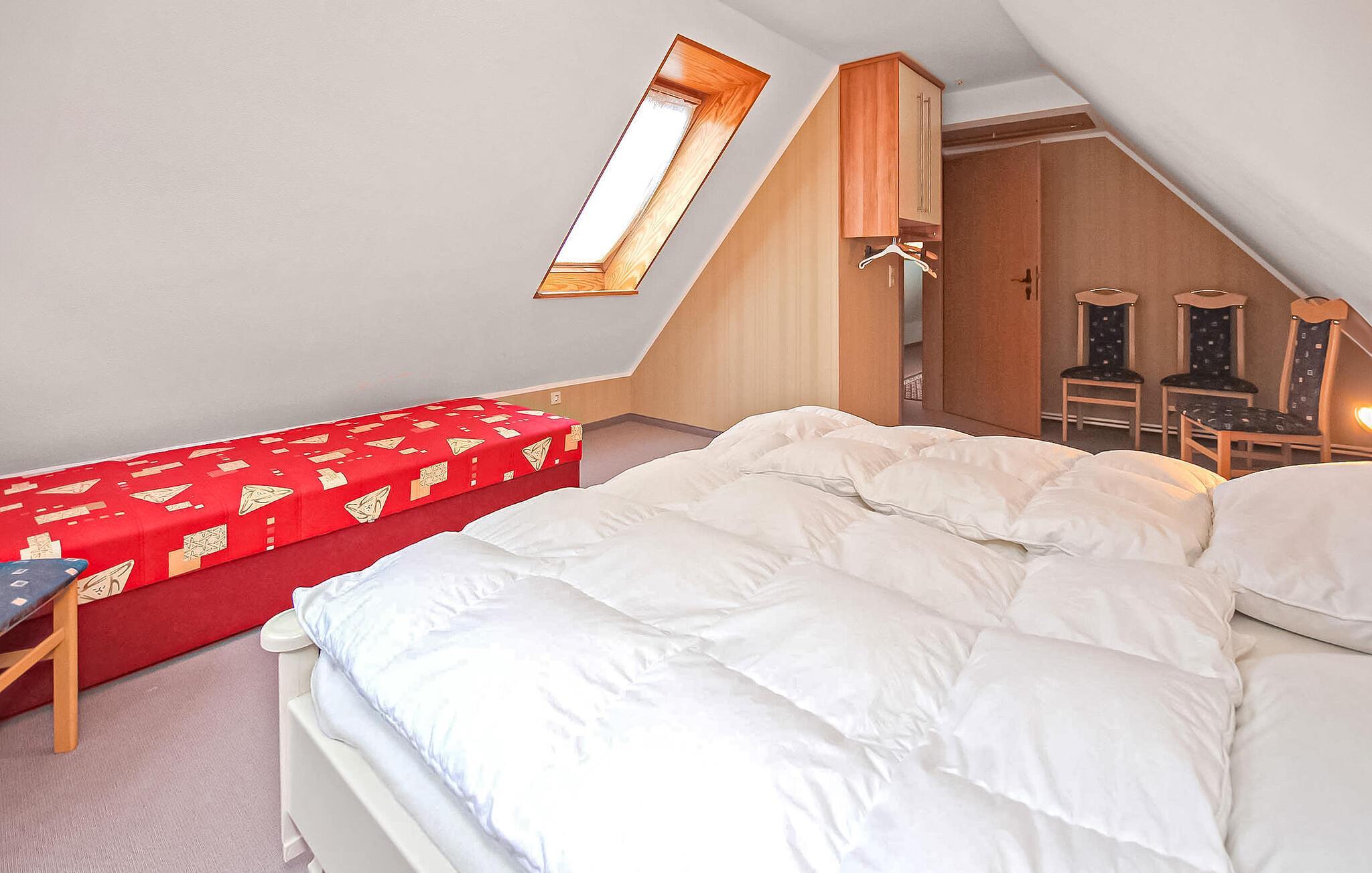 To ferieleiligheter for opptil 4 personer med hver sin inngang og utsikt over innsjøen ligger direkte ved innsjøen Userin på eierens ca. 2700 m² store inngjerdede boligeiendom i et uthus i første etasje og i andre etasje. Badeplassen ligger ca. 100 meter unna.