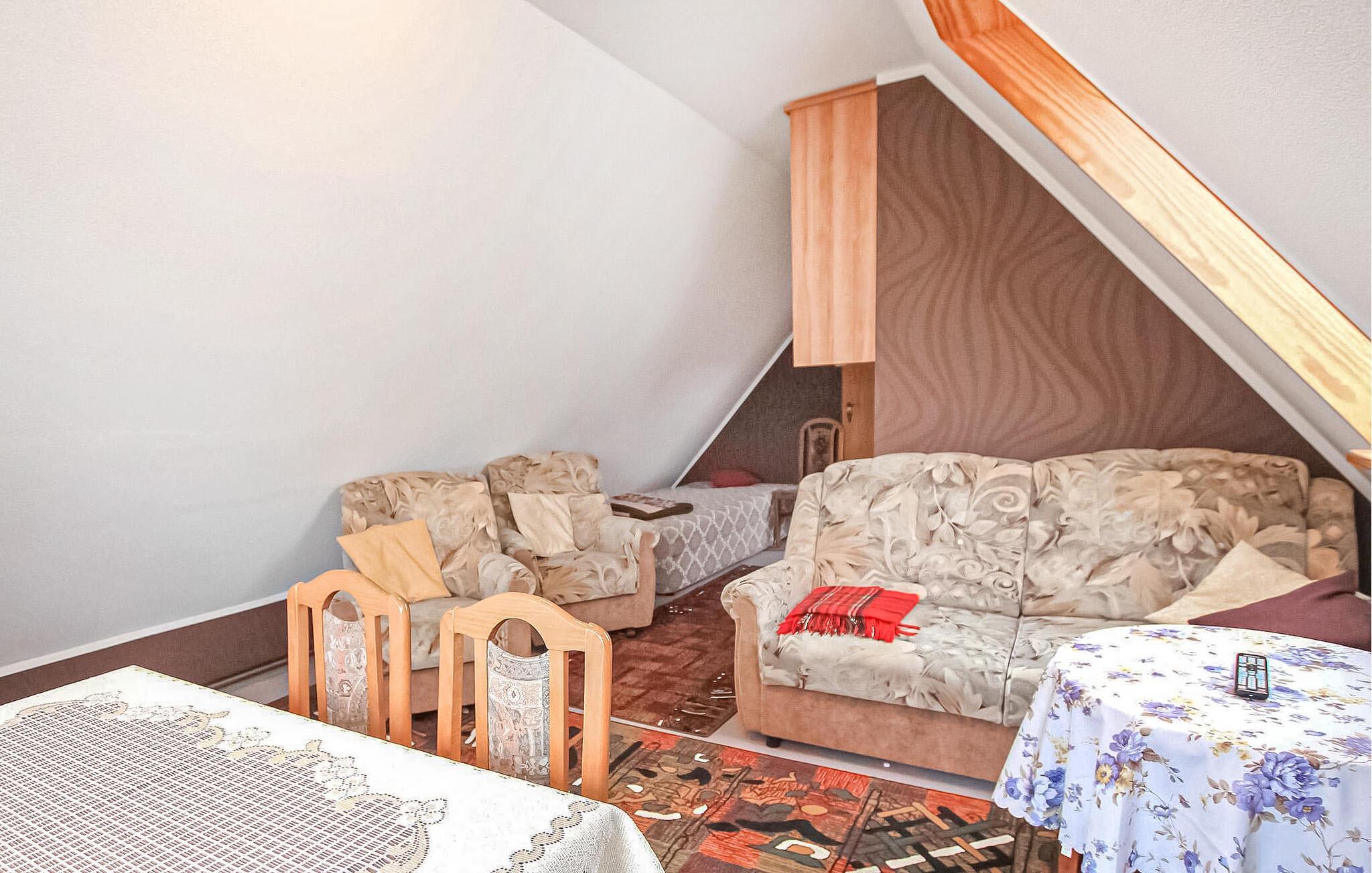Denne ferieleiligheten i øverste etasje har en stue (polstrede møbler, en solseng, spisebord, flatskjerm-TV, radio, internettforbindelse, utsikt over innsjøen), et separat kjøkken (elektrisk komfyr med stekeovn, kjøleskap, diverse små kjøkkenapparater), et soverom (1 dobbeltseng, 1 polstret solseng), et bad (dusj, WC, hårføner), en romslig gang og insektsnett på vinduene.