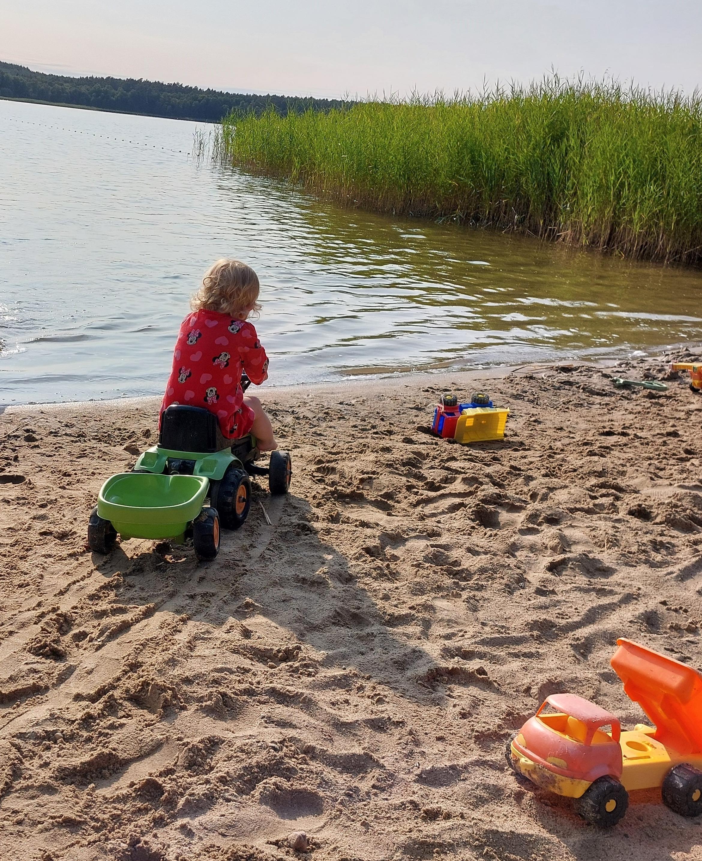 Unser Garten grenzt direkt an den Müritz Nationalpark und unser Haus ist ca. 150 m vom Useriner See entfernt. Der wunderschöne See lädt mit Badesteg, Wasserrutsche und Sandstrand zum Baden, Schwimmen, Buddeln ein. Auf der Liegewiese lässt es sich derweil gut entspannen.