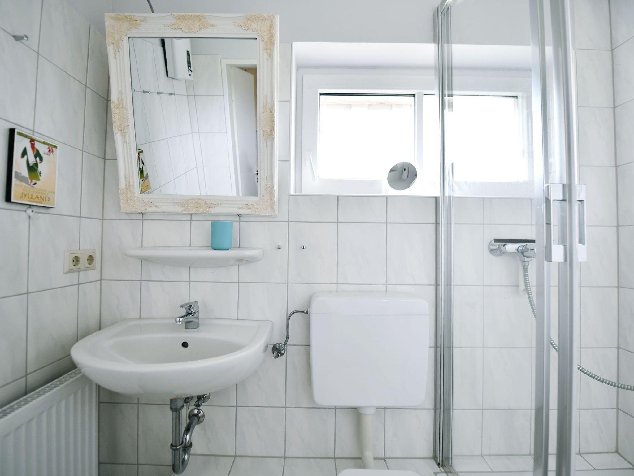 Zwei Schlafzimmer (eins davon im Spitzbogen), ein Wohnzimmer mit Ess- und Küchenbereich sowie ein Duschbad mit Toilette erwarten Sie.