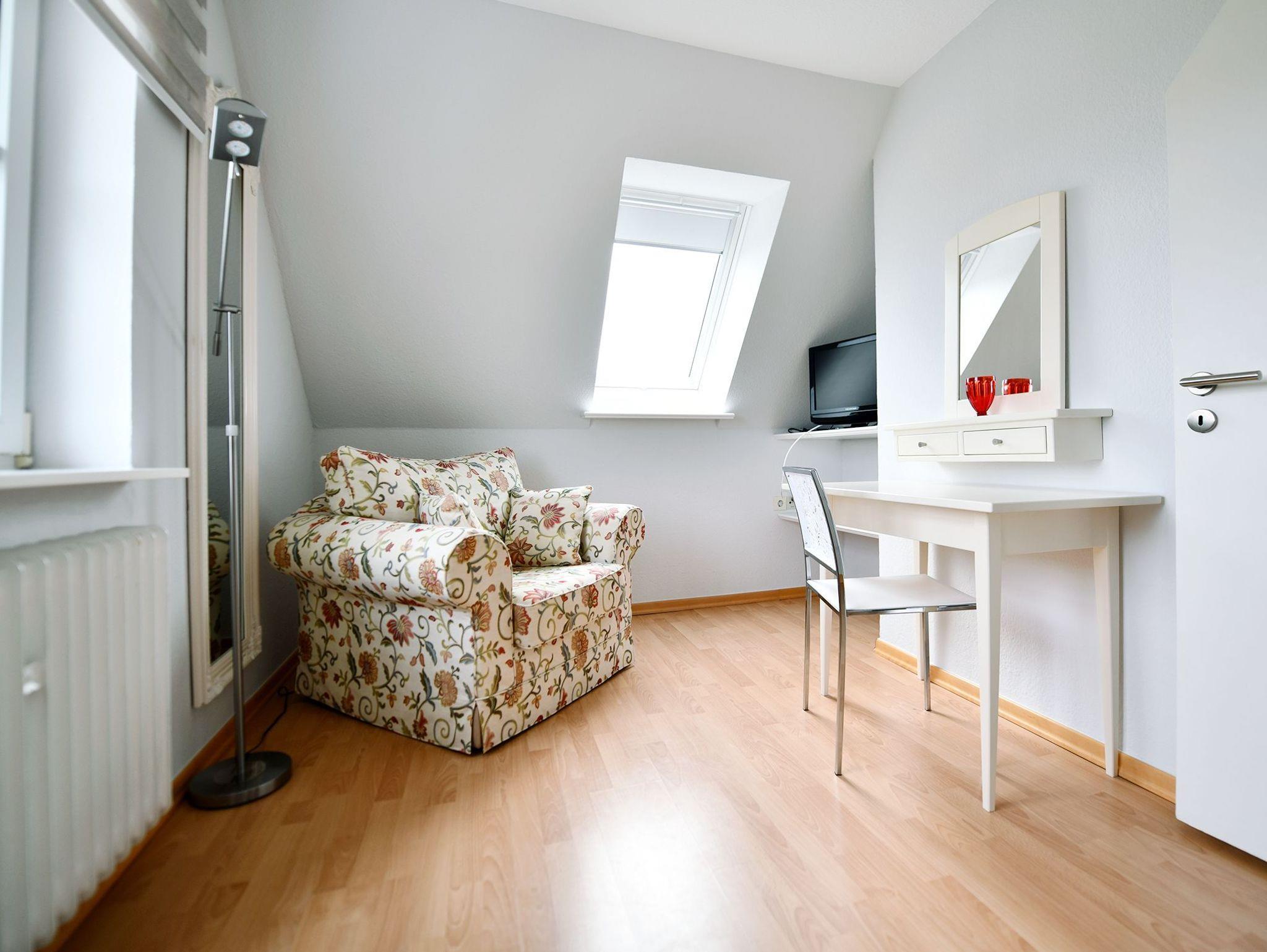 Diese Obergeschosswohnung mit sonnigem Balkon bietet Platz für vier Personen.