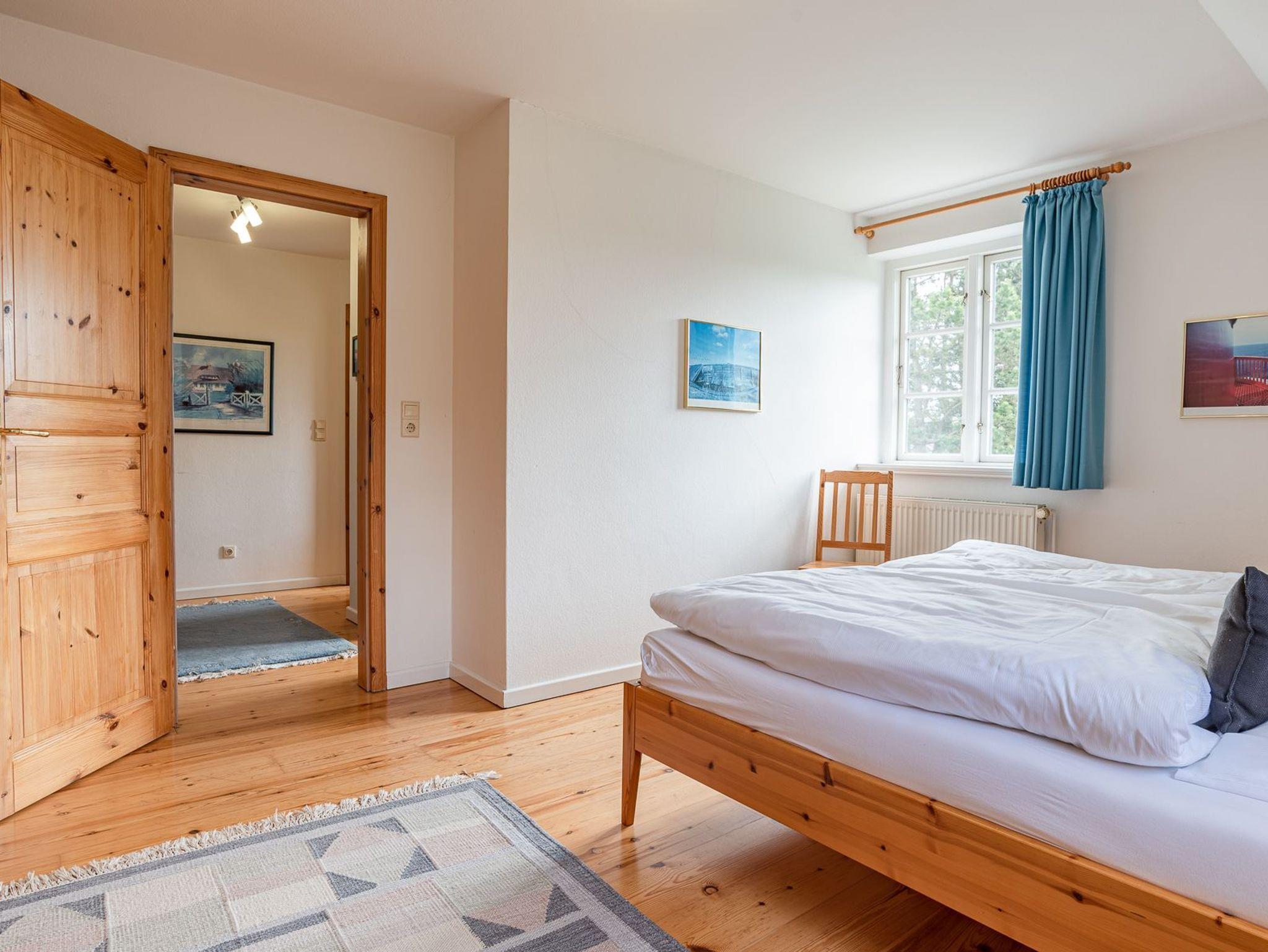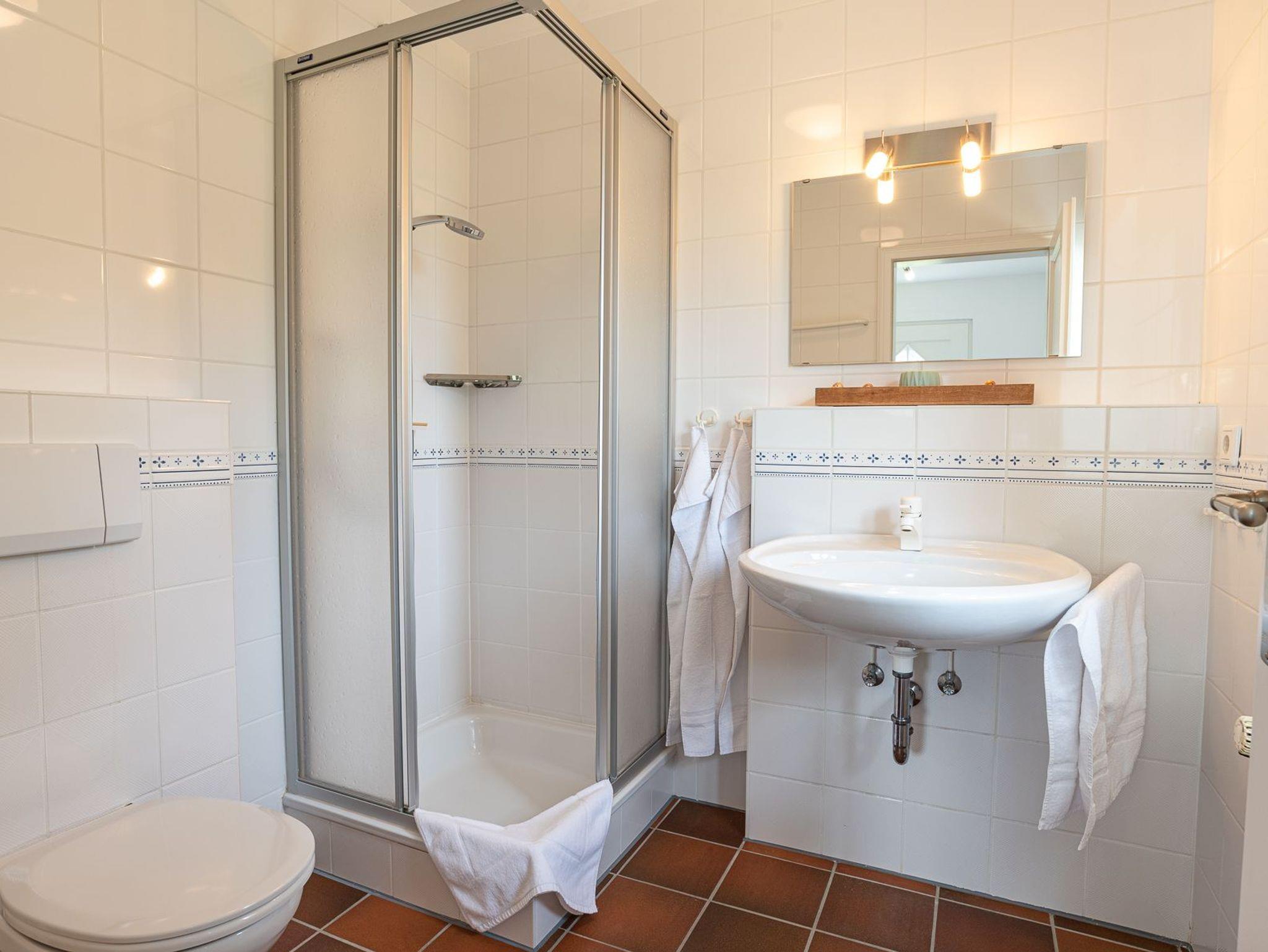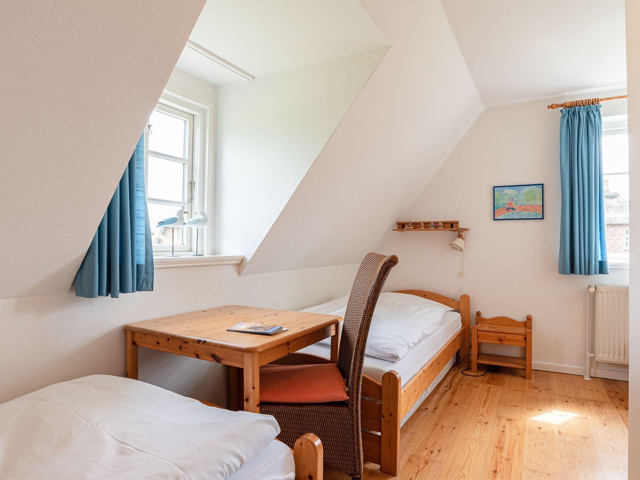 Durch die Seitentür gelangen Sie in den Vorflur in dem sich die Garderobe befindet und von dem man ins erste Duschbad gelangt. Weiter gelangt man in den großzügigen Wohn- und Essbereich, in dem sich auch der Zugang zur Terrasse und der Kaminofen befinden. Über die Treppe gelangen Sie in das 1. Obergeschoss mit zwei Schlafzimmern und dem zweiten Duschbad. Ein Schlafzimmer davon ist mit zwei Einzelbetten (hintereinander) und eins mit einem Doppelbett ausgestattet. Das dritte Schlafzimmer unter dem Dach ist mit einem Doppelbett ausgestattet.