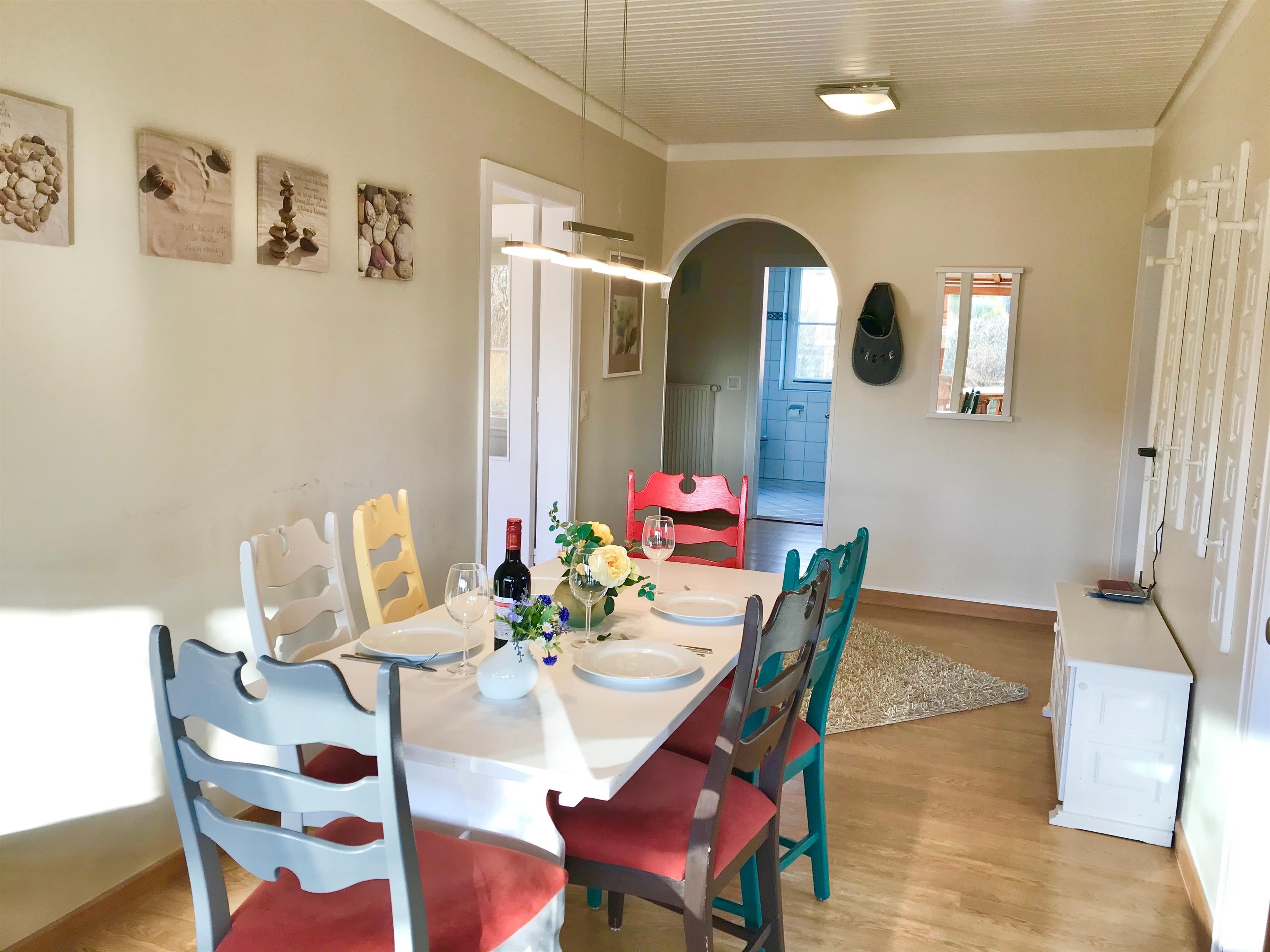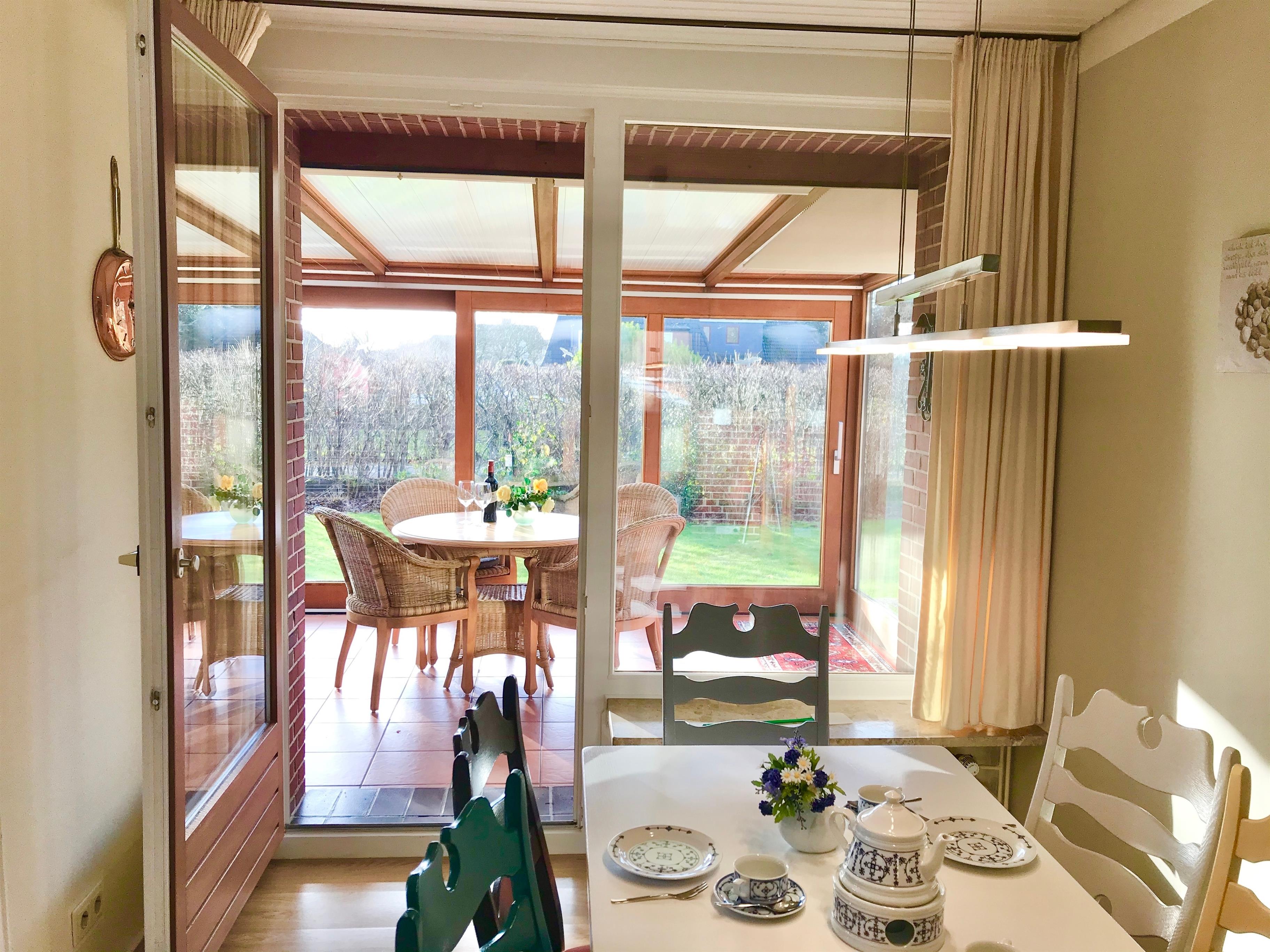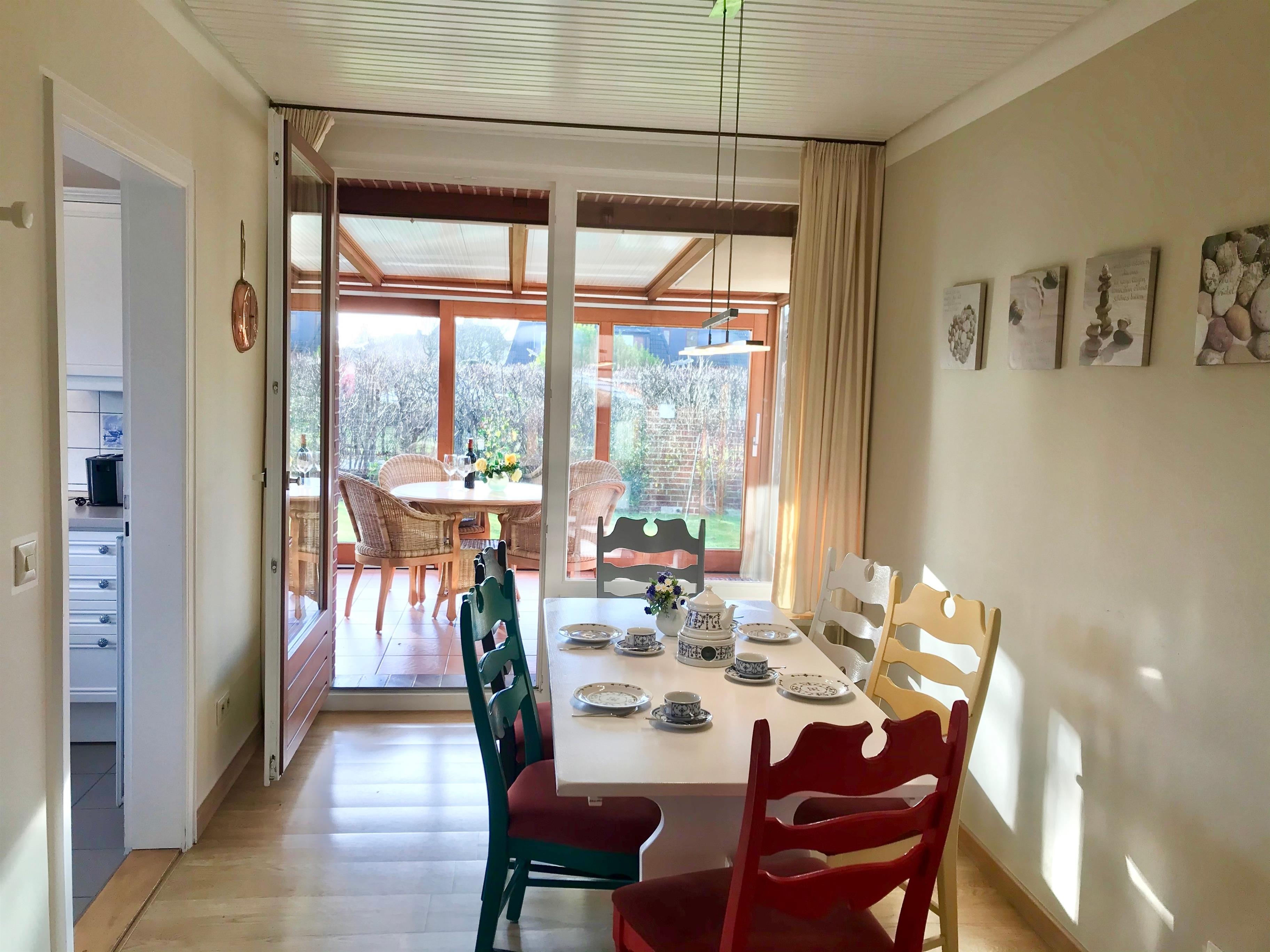 Die Wohnung im Erdgeschoß ist optimal für 4 - 6 Personen geeignet. Besonders herauszuheben ist der wunderschöne Wintergarten. Der große Garten bietet ausreichend Platz zum Sonnen, erholen und zum Spielen. Eine Waschmaschine , Trockner und Wäscheleinen im Garten steht den Gästen der beiden Wohnungen gemeinschaftlich zur Verfügung. Die Wohnung liegt nur wenige Meter vom wunderschönen Utersumer Strand entfernt. Hier können Sie sich auch sportlich mit serfen betätigen. Fußläufig vom Haus Heike befindet sich im Dorf ein Edekamarkt, ein Bäcker und Fahrradverleih sowie mehrere Restaurants und Cafés. Auf keinen Fall sollten Sie sich den berühmten und unvergesslichen Sonnenuntergang am Utersumer Strand entgehen lassen.