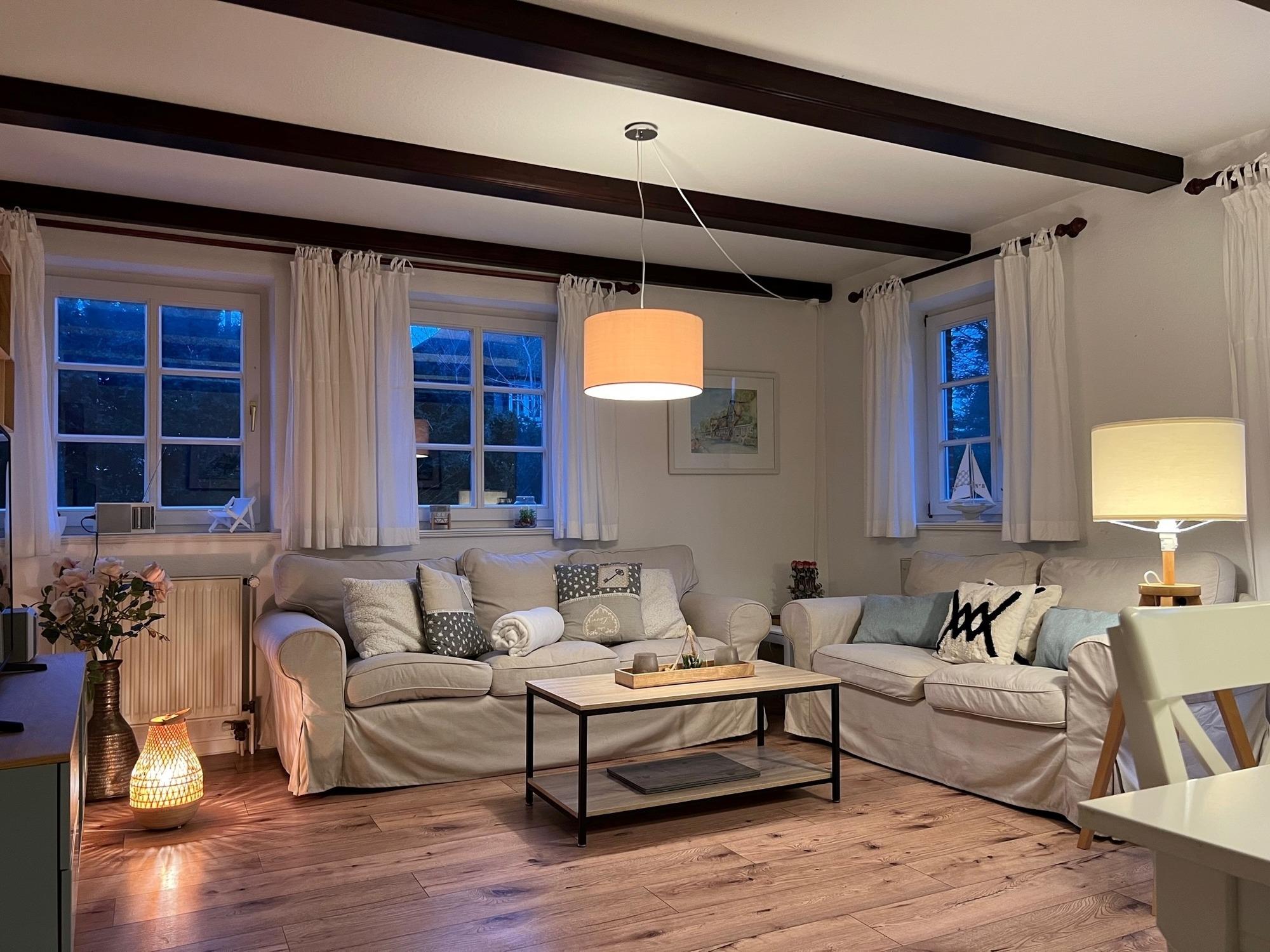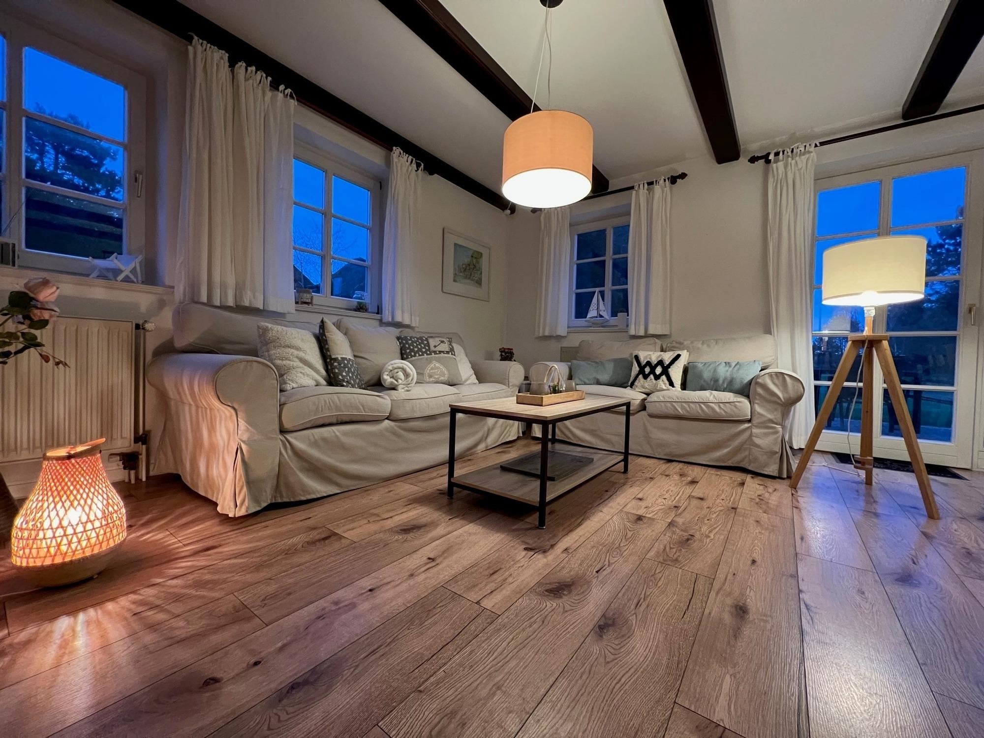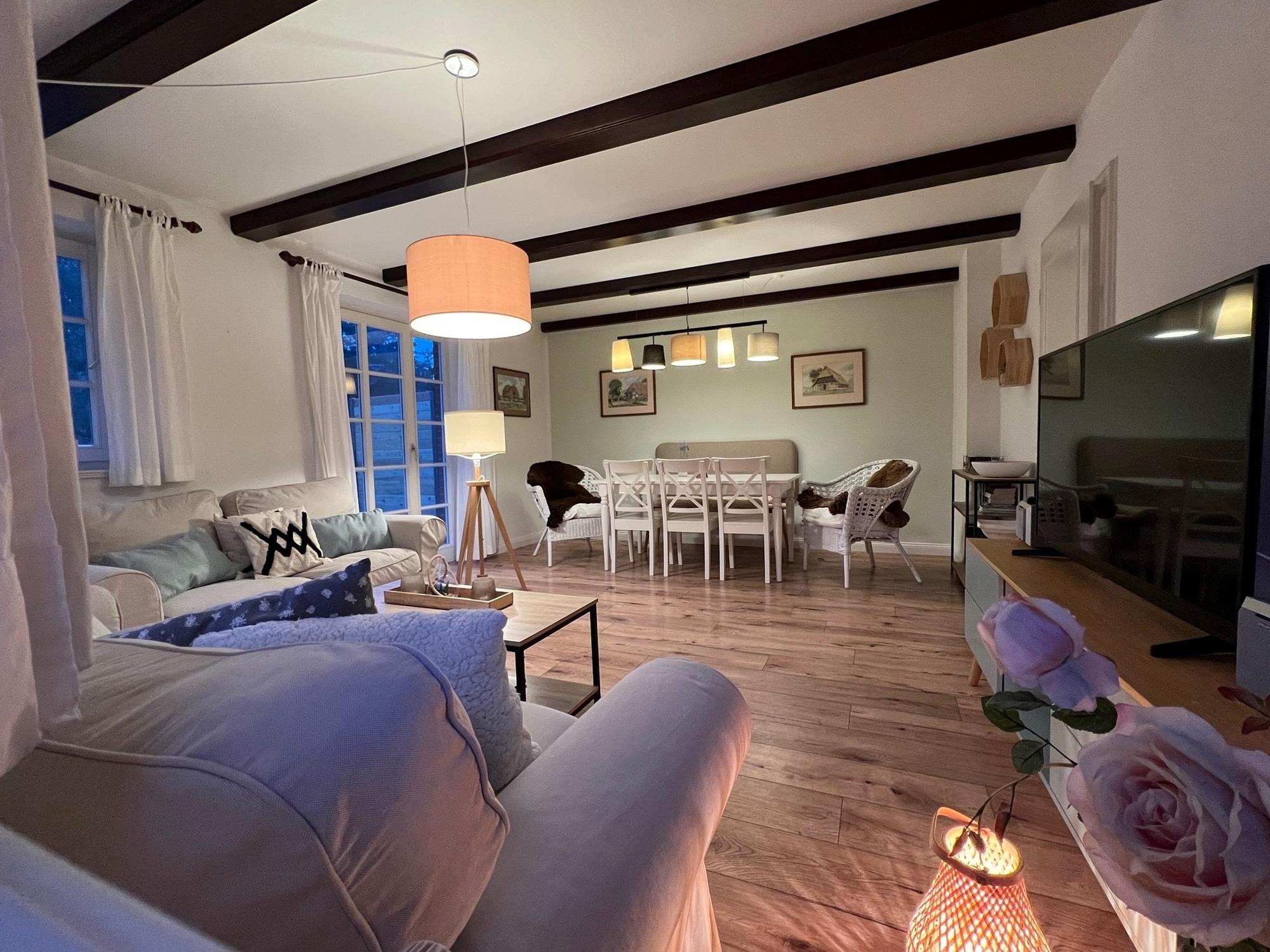 Die 2022 renovierte Doppelhaushälfte Backbord verfügt über 2 Schlafzimmer und 2 Bäder und bietet somit komfortabel Platz für bis zu 4 Personen und max. 2 Hunde.