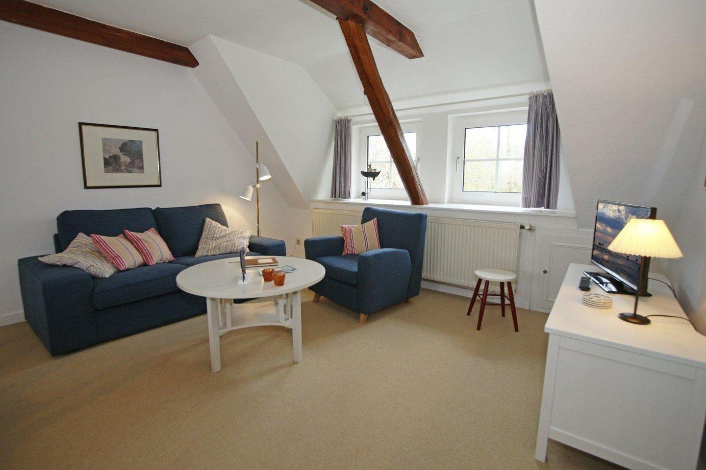 Sitzecke mit Sofa und Sessel und Flachbildschirm, W-lan kostenlos.Doppelbett, Duschbad mit Außenfenster,Wohnküche mit Geschirrspülmaschine.